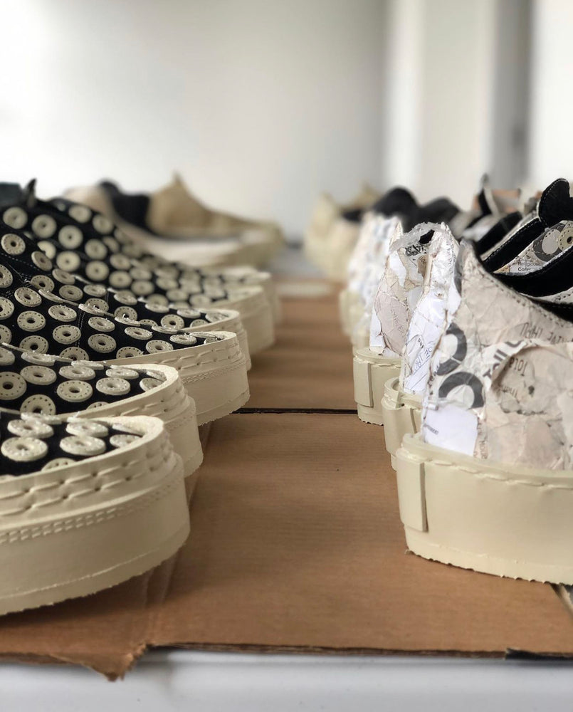 I wanted to break away from just doing leather shoes, experiment with materials like with the "apparition' translucent leather and textures more like for the "trash" shoes. You don’t have to look too far to find many different possibilities. Right now I’m working with my friend Bailey Goldberg on doing some shoes out of Peruvian wool that are a continuation on this exploration of materials. I think it is important though to keep working with the more traditional materials, they are more wearable and functional for everyday life.