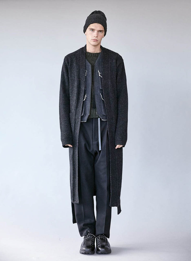As with most of the collections created by the duo, there is a nod to streetwear. Within this selection, an oversized parka with equally oversized pockets and drawstrings which alter its silhouette. Made from a backed wool knit, lifts it from the street to a higher platform.