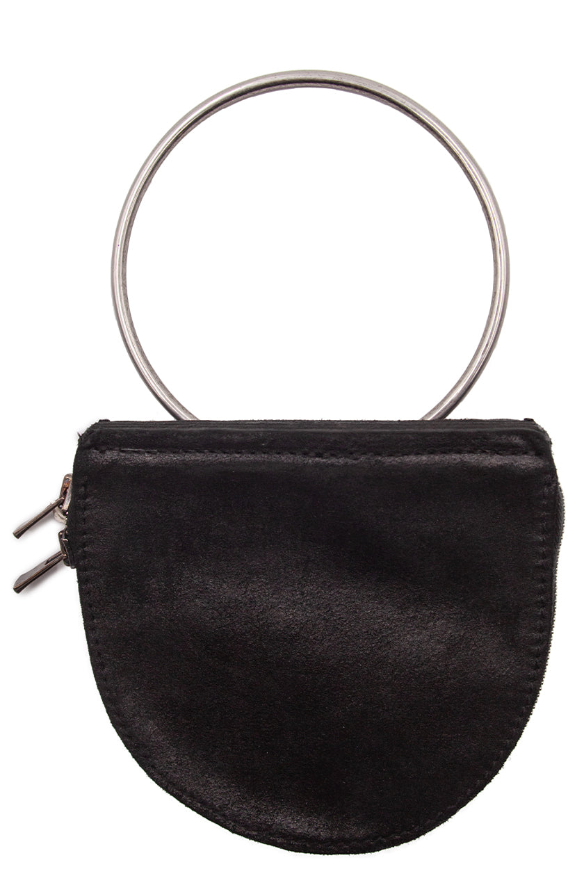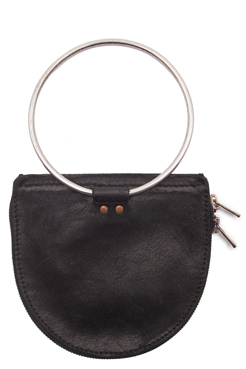 Handbag in vegetable tanned horse leather. Leather half moon design with a round steel handle. Double zip closure. Unlined.