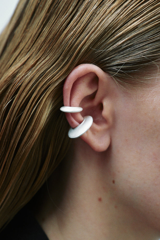OLIO E ACETO is a design studio founded by Yezi Zhou, fashion design graduation in 2014, Instituto Marangoni in Milan and Ke Li, jewellery design graduation in June 2015, China Art Academy in Hangzhou. The duo is dedicated to collecting memories within touchable forms. OLIO E ACETO has a simple yet organic design, clean lines searching for emotions and stories through hands and materials. All OLIO E ACETO objects are hand made from sterling silver. It is about the companionship between people and objects. The matte white surface is the blank canvas to be filled by the wearer. Depends on how they are treated over time, each piece would subtly evolve in different results. It would oxidize if exposed to moisture, light or air, but if you wear it every day, it will just be polished brightly.