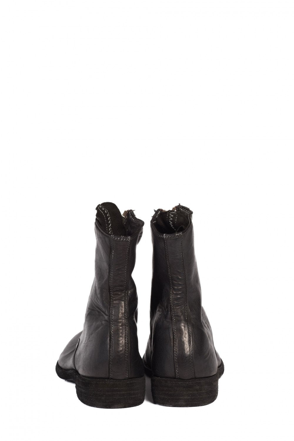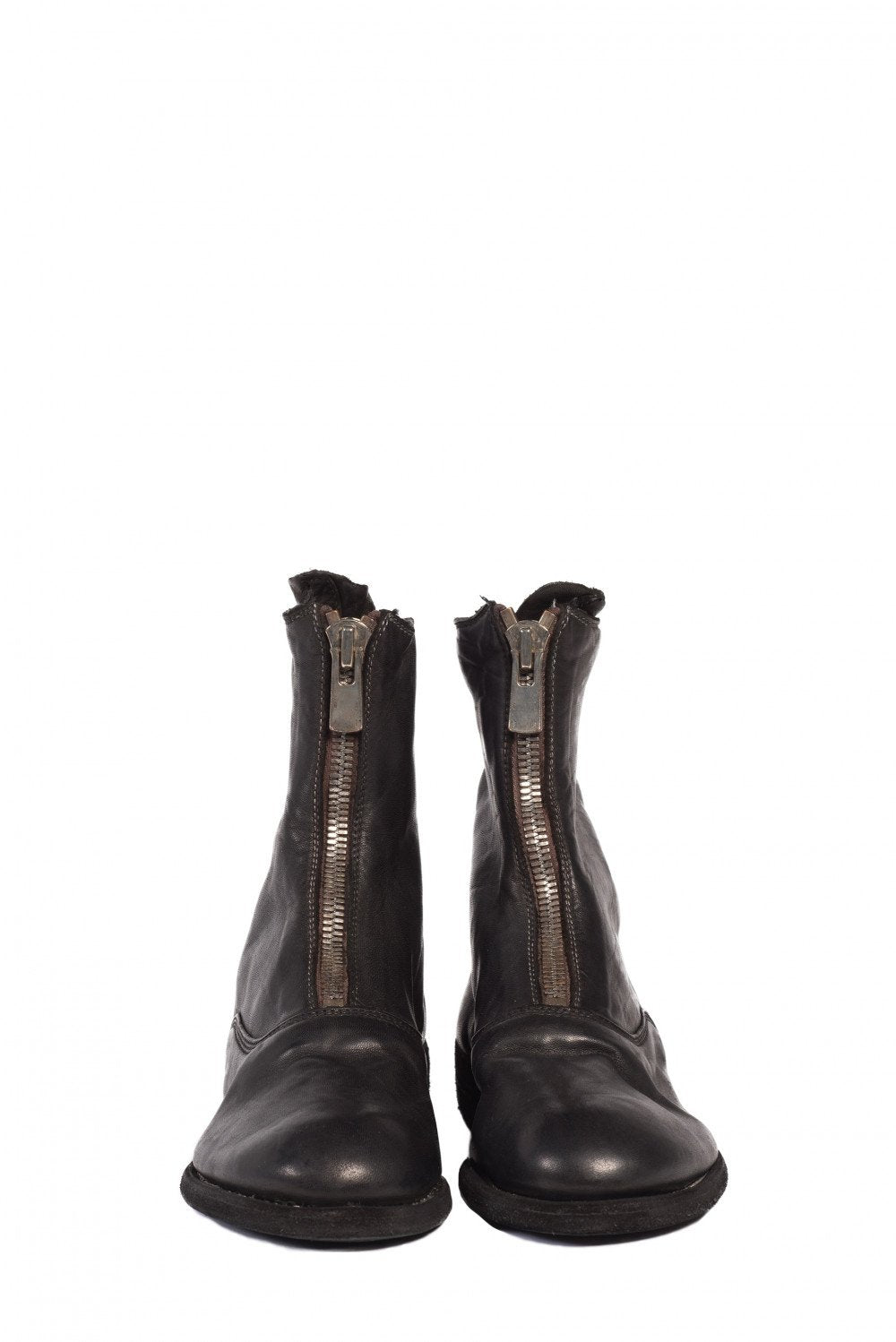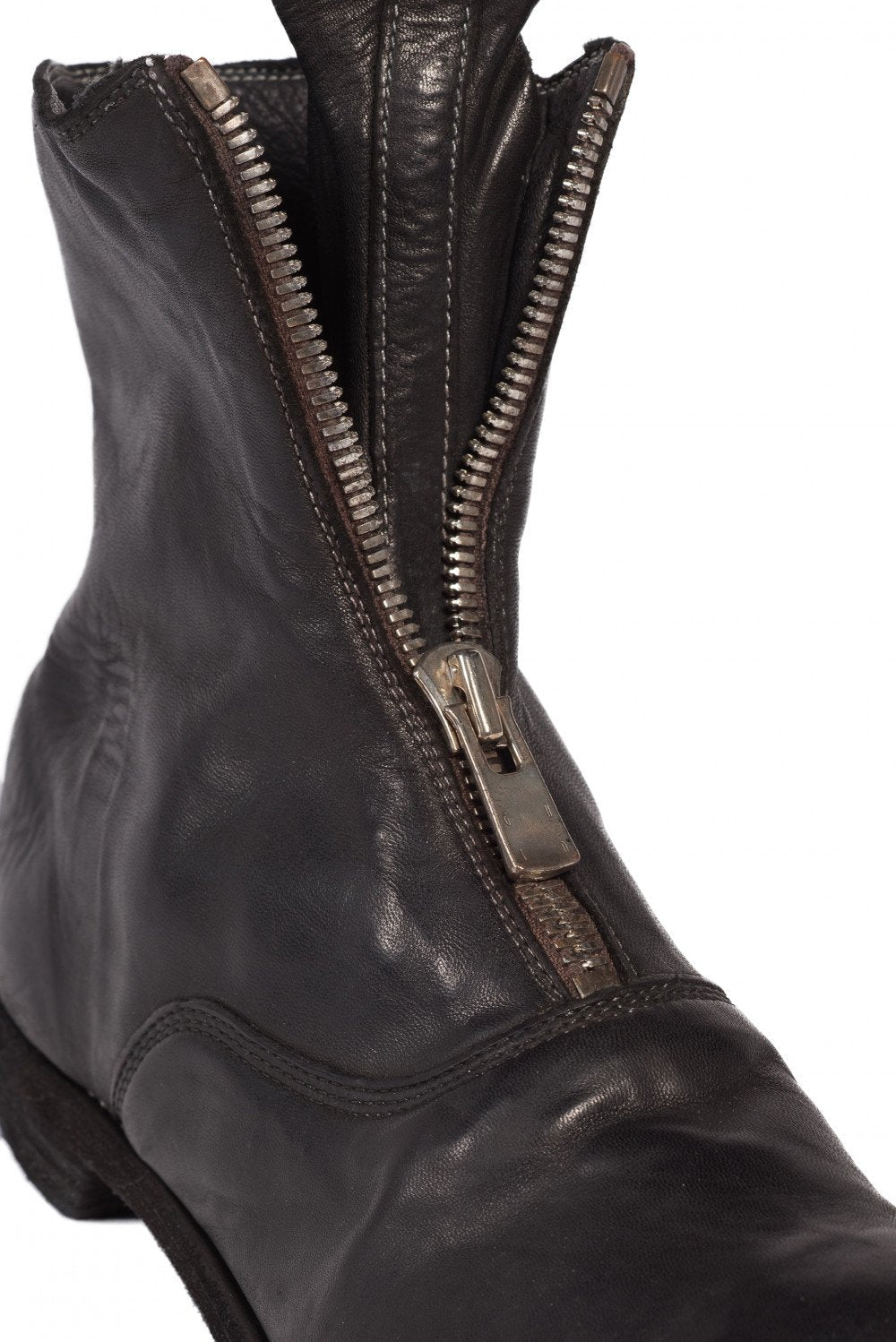 Guidi 210 front zip boot in black. Front zip closure. Tonal stacked leather heel and sole. Antiqued silver-tone hardware. Tonal treaded rubber Vibram outsoles included