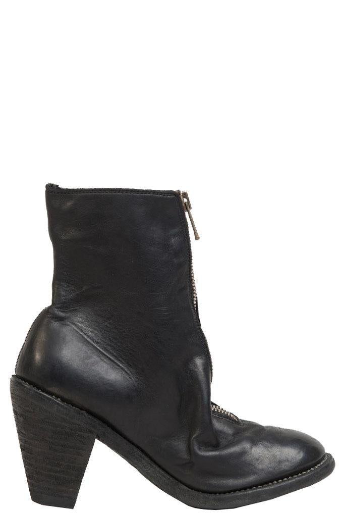 Classic Guidi Style. Front zip ankle boot in Guidi horse leather with high heel.