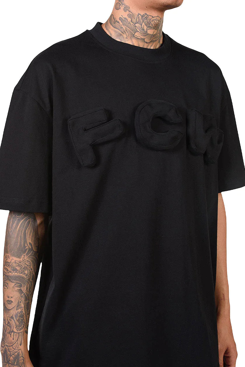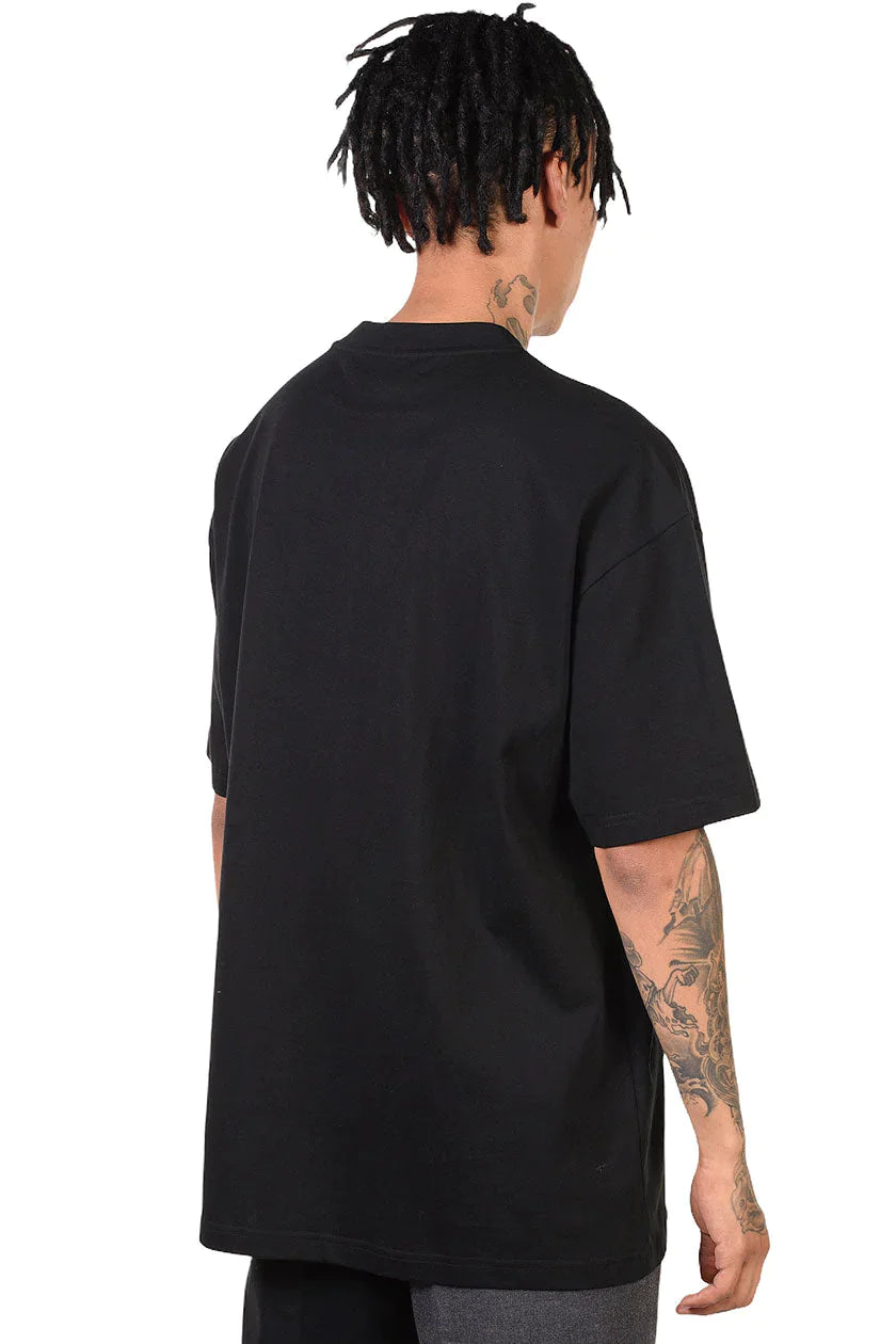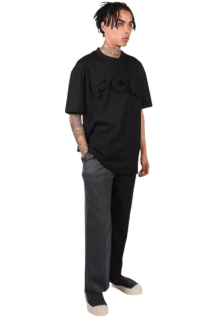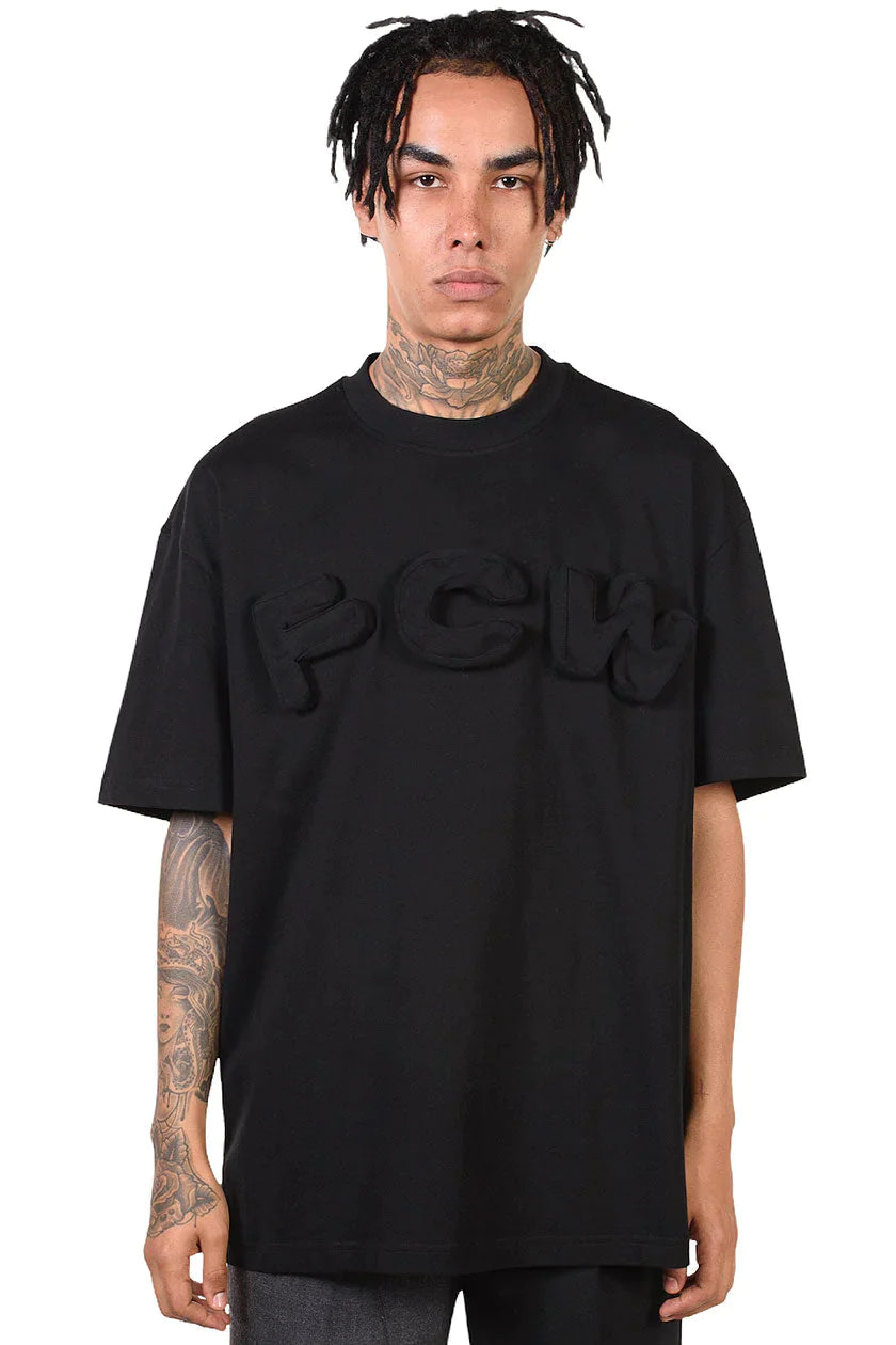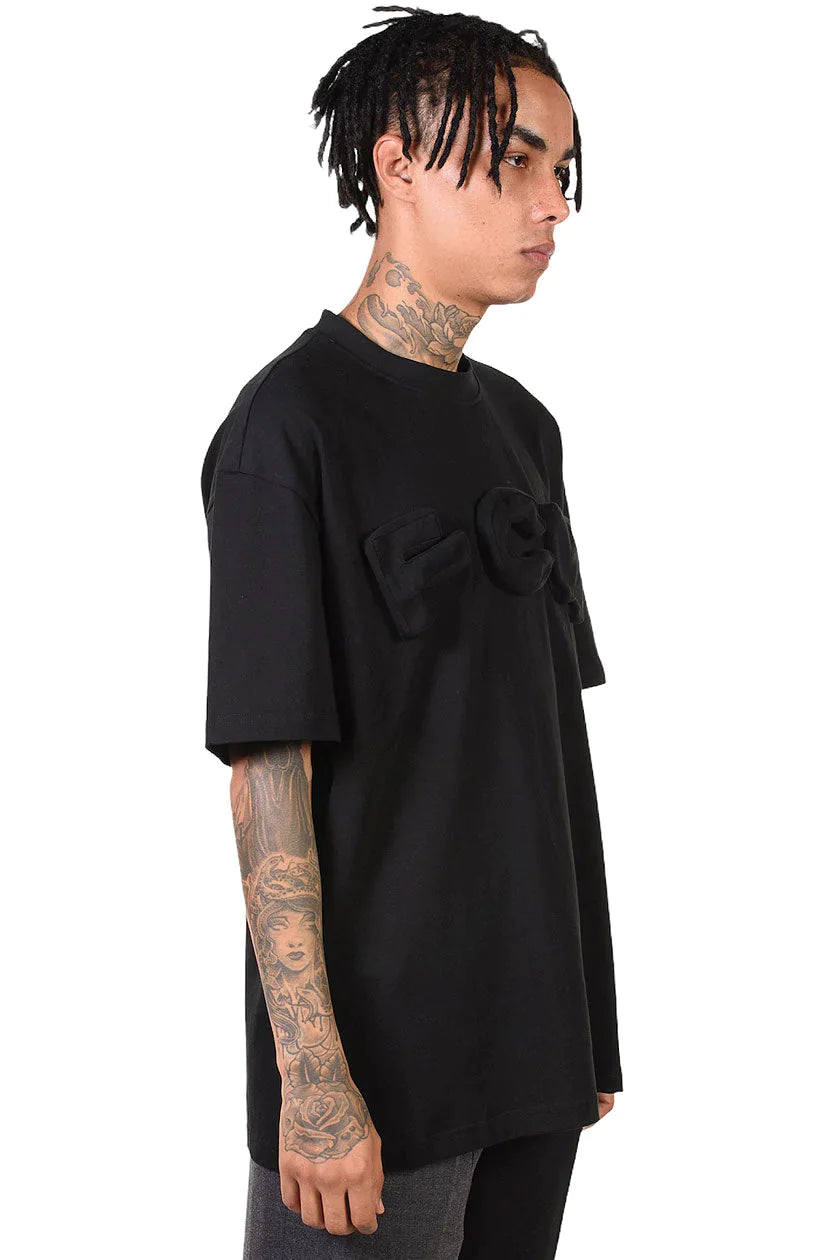 Cotton crew neck jersey t-shirt in black with 3D logo at chest.