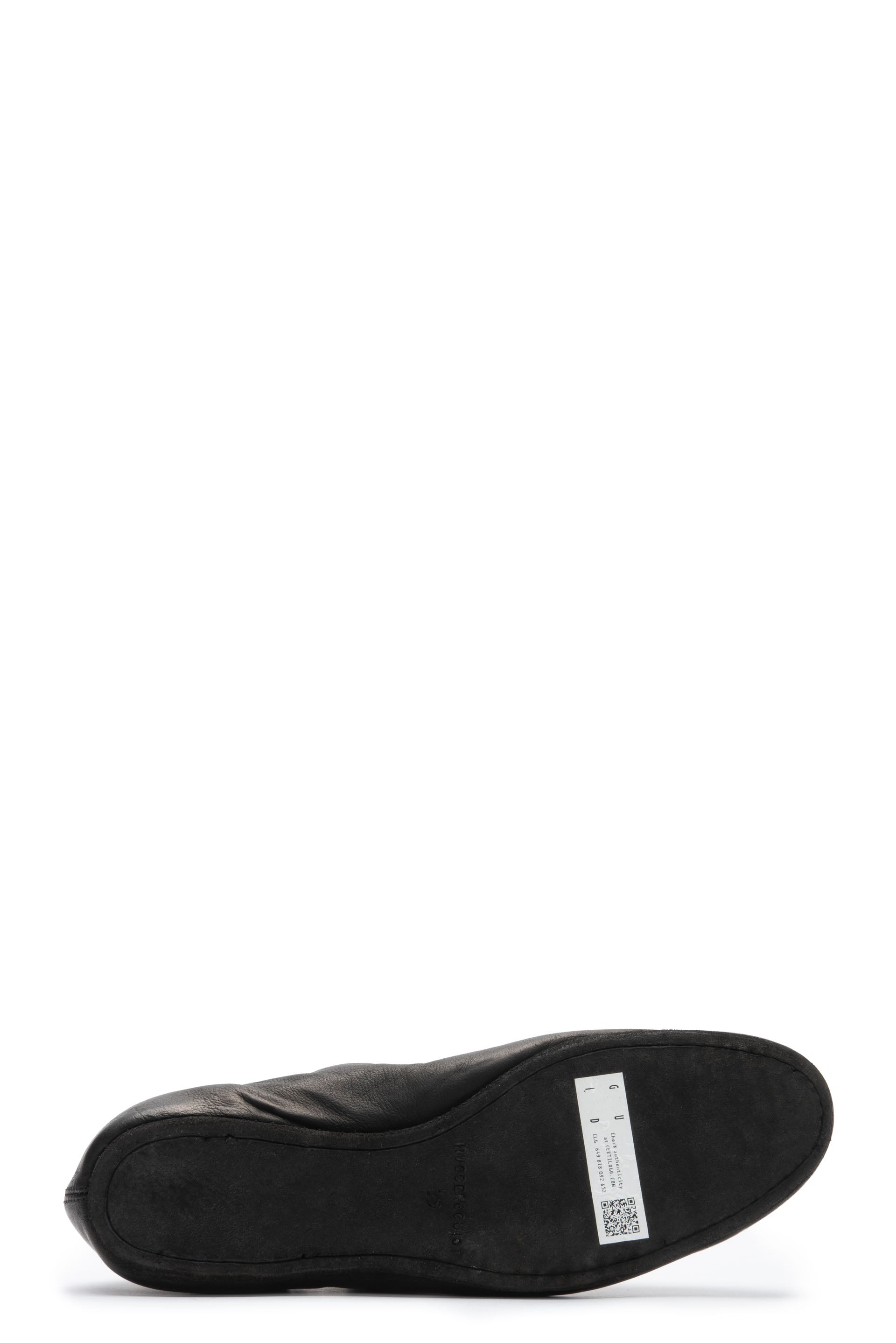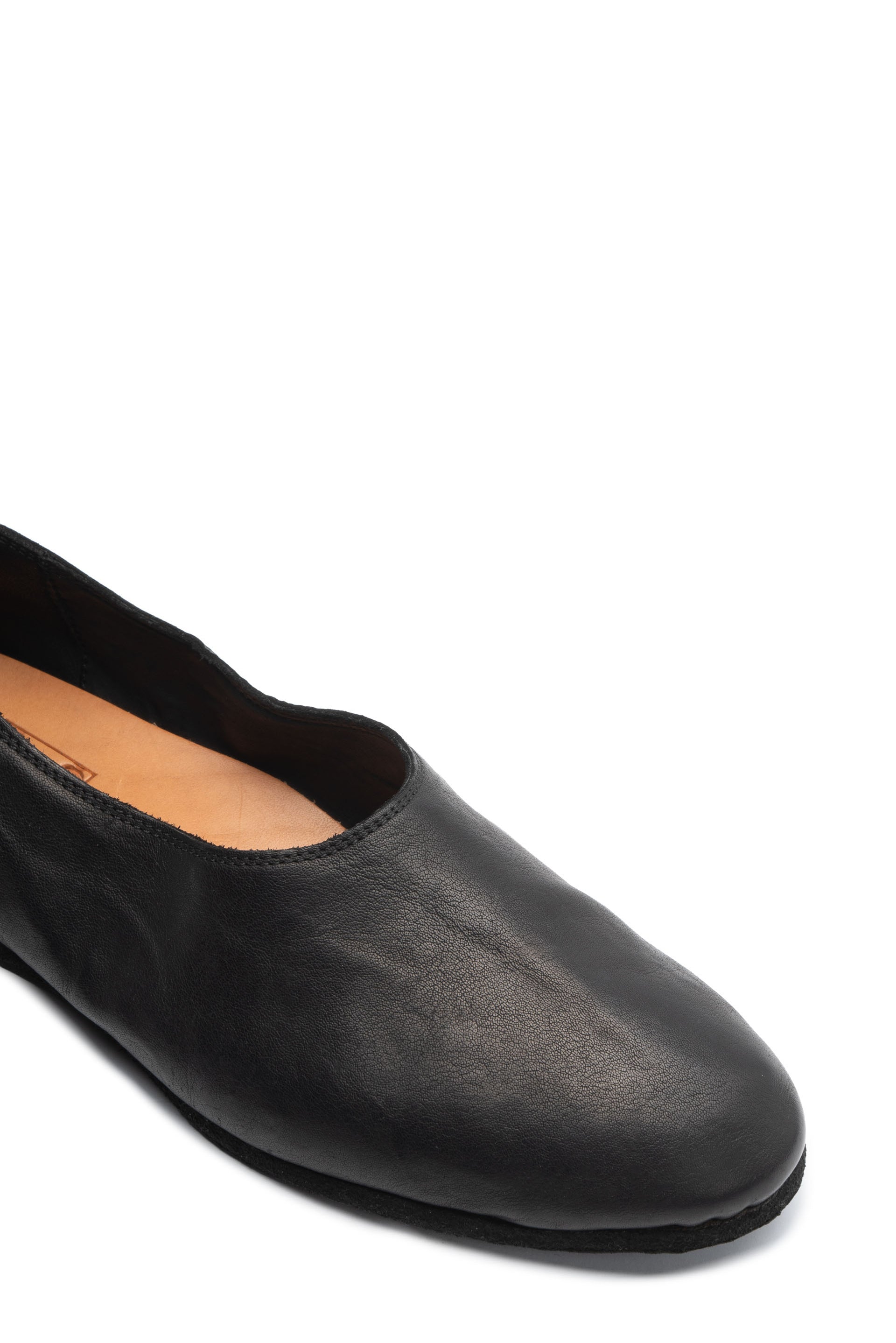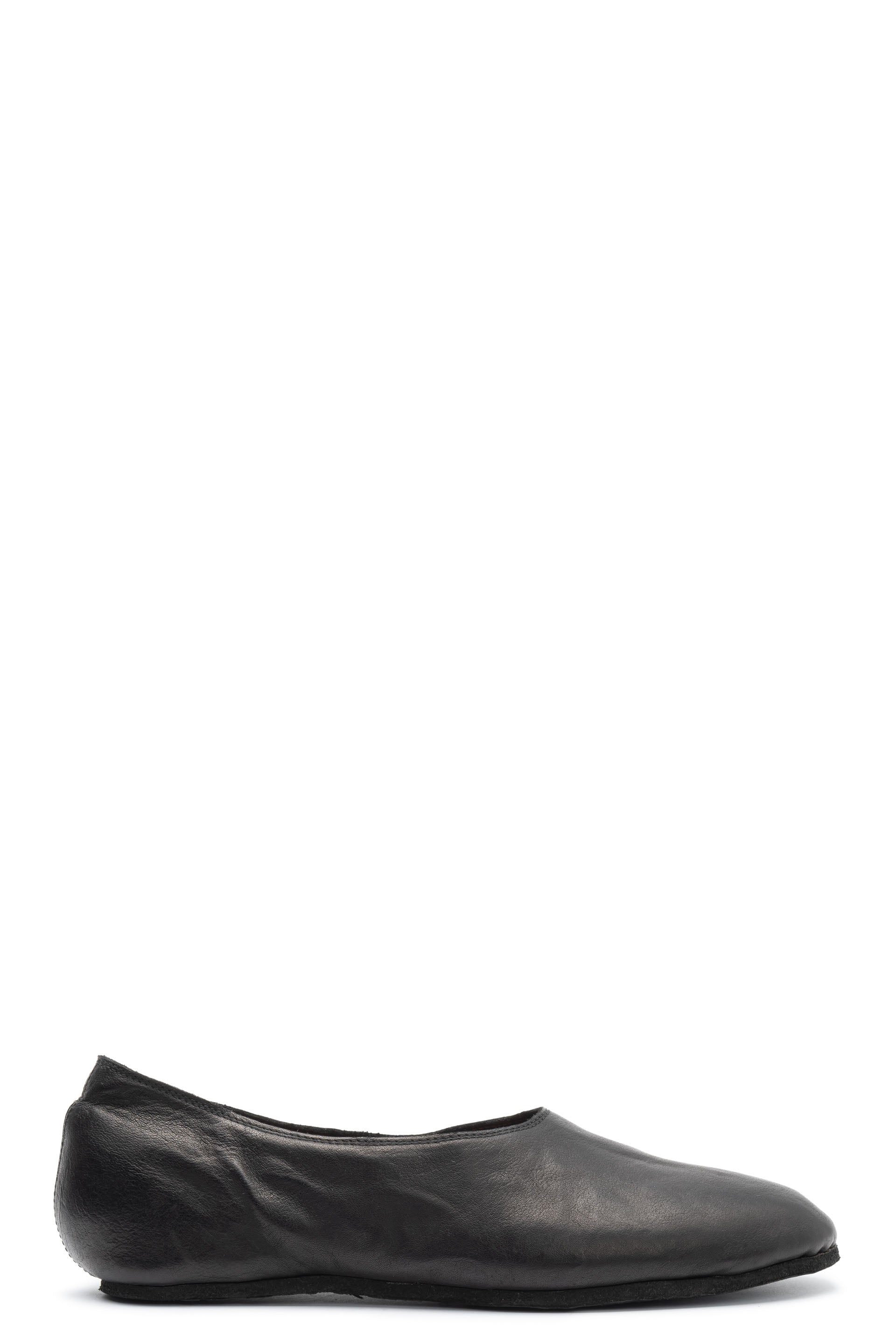 626R Ballerina shoes from Guidi. Black kangaroo leather tonal stitching. Round toe. Slip on style. Branded insole. Flat sole.