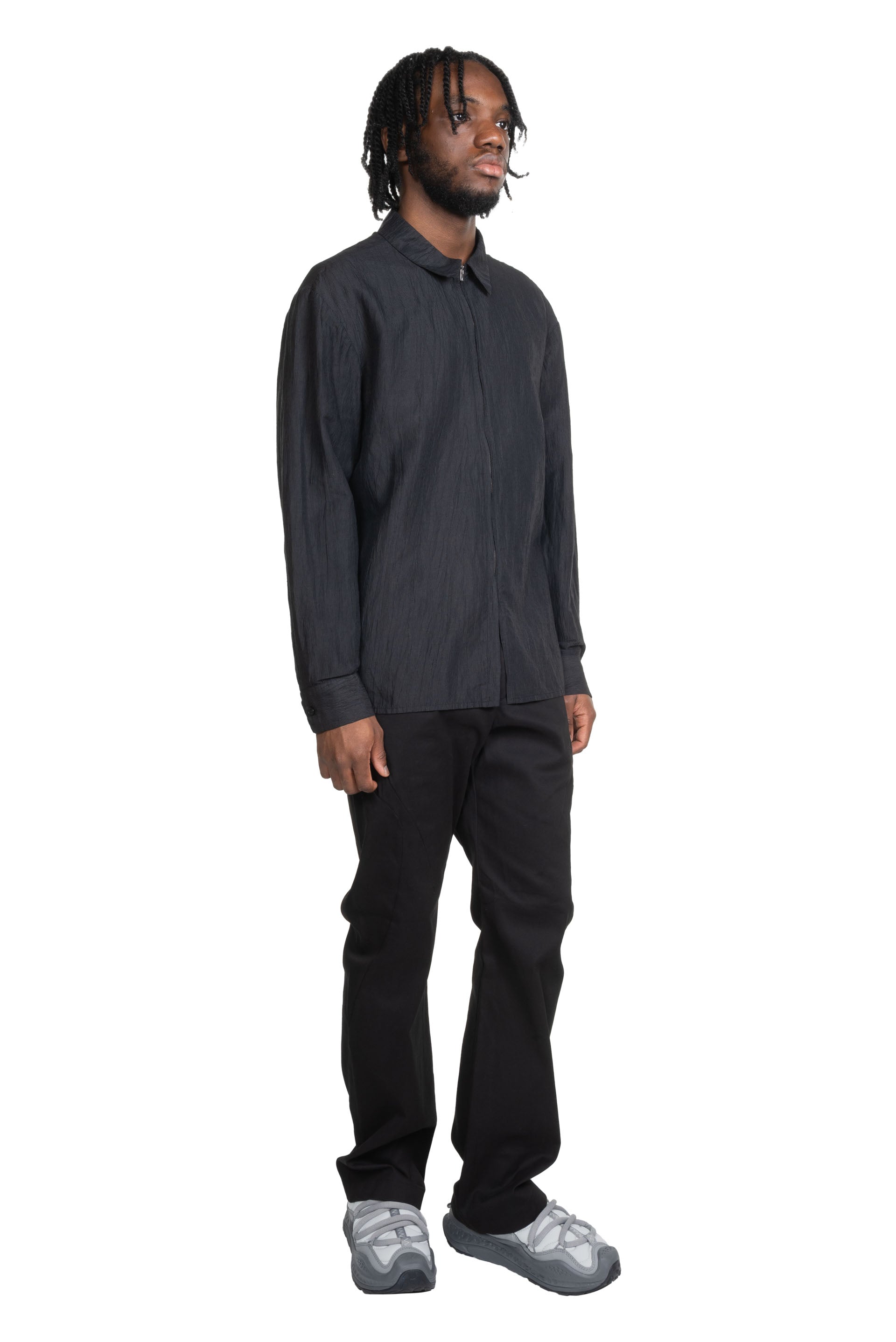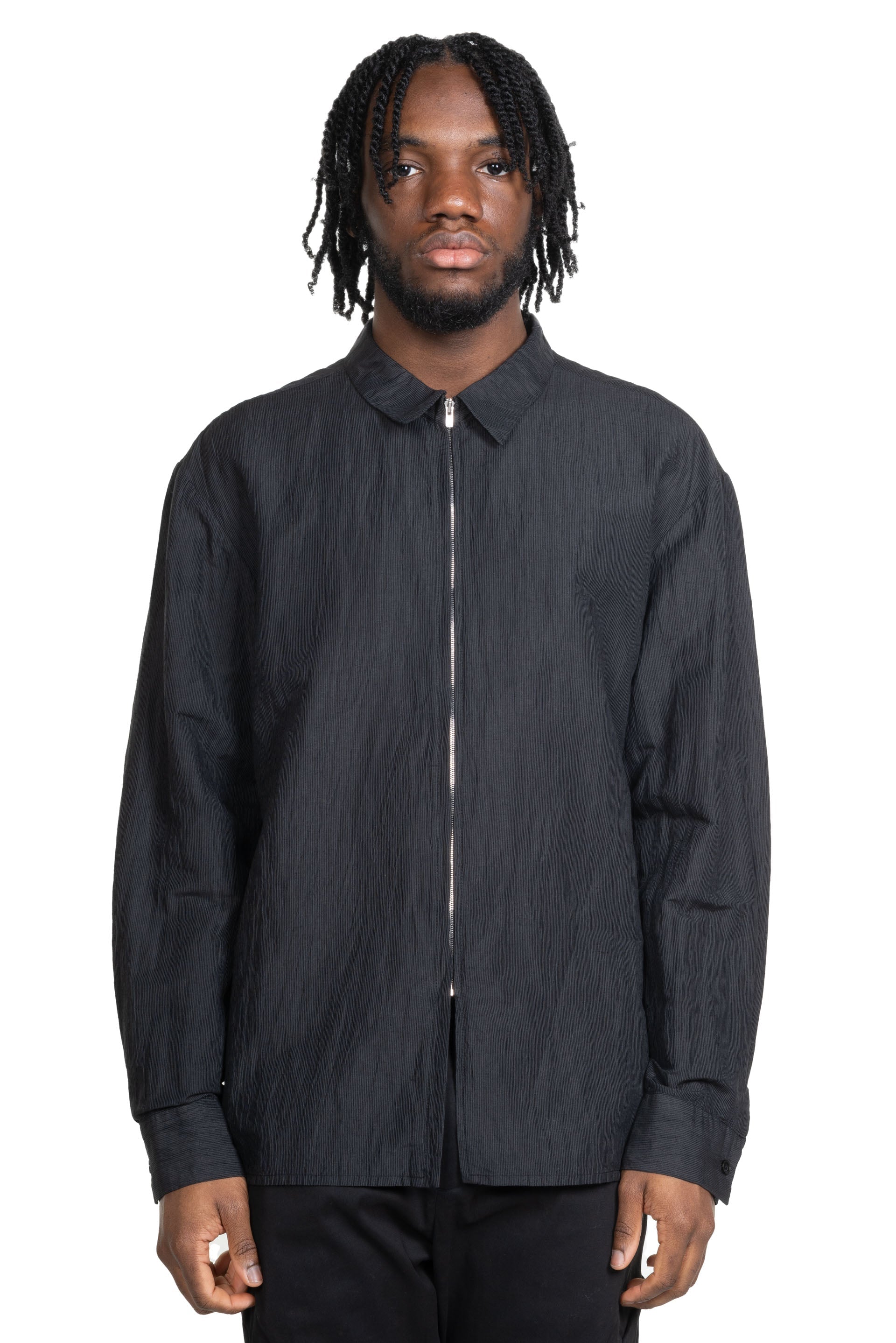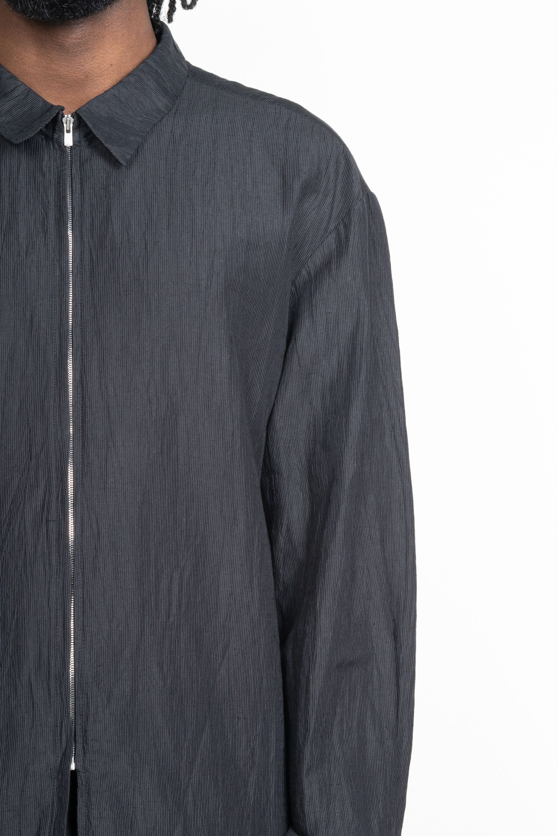 POST ARCHIVE FACTION (PAF) Linen zip-up shirt. Natural silhouette and lightweight comfort. Oversized fit. Soft touch with lightweight fabric. Wrinkle made with TATEJIWA processing. Fabric from Japan. Machine washable and easy to maintain the product. YKK EXCELLA® zipper. Logo engraved buttons.