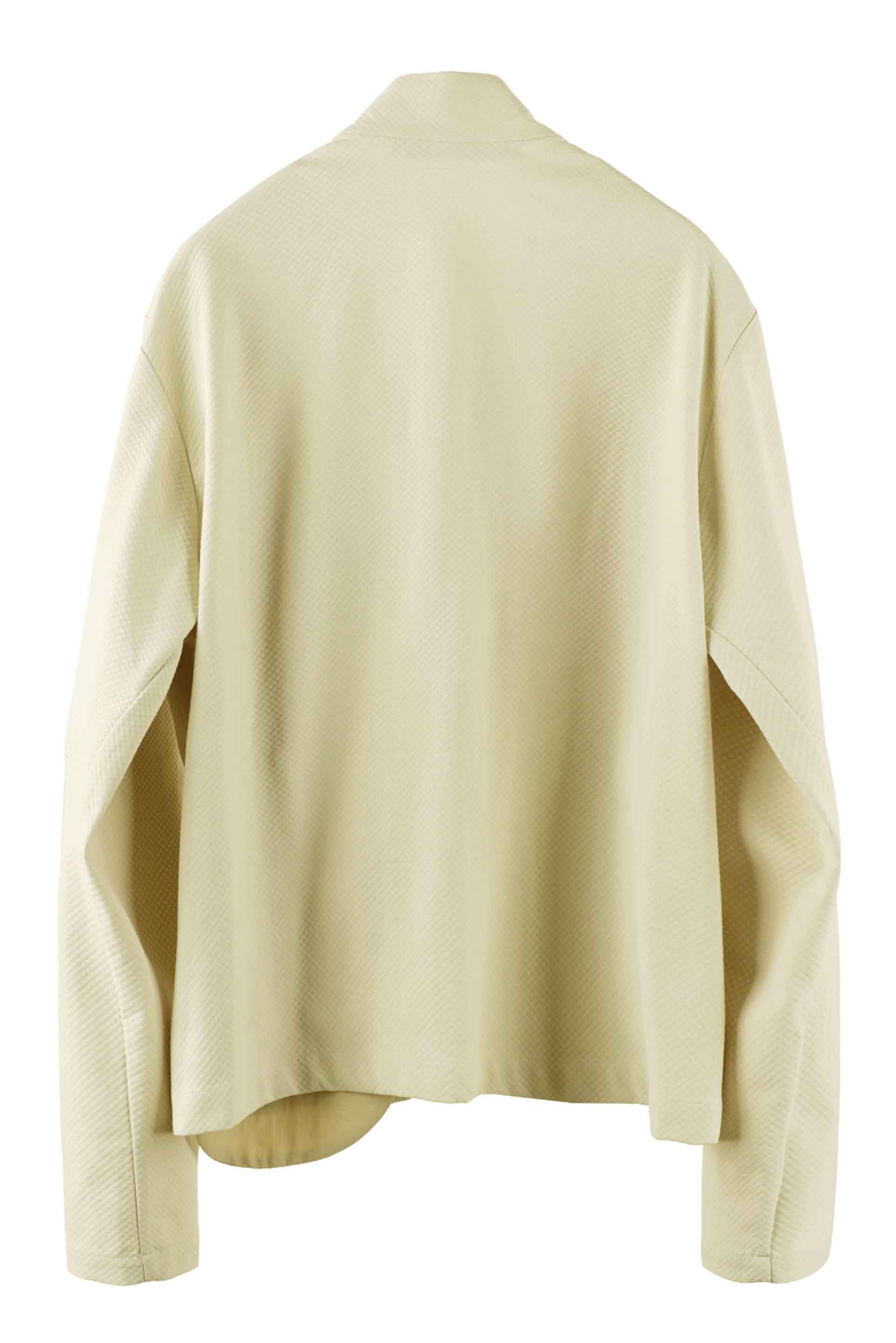 Zip-up track jacket. Asymmetrical hemline created through pocket detailing. Slim fit. Crafted from Japanese fabric woven in a bias check pattern using TEXBRID yarn. Exceptionally lightweight and breathable, ideal for summer wear. YKK EXCELLA® two way zipper. YKK CONCEAL® closure. SAB puller.