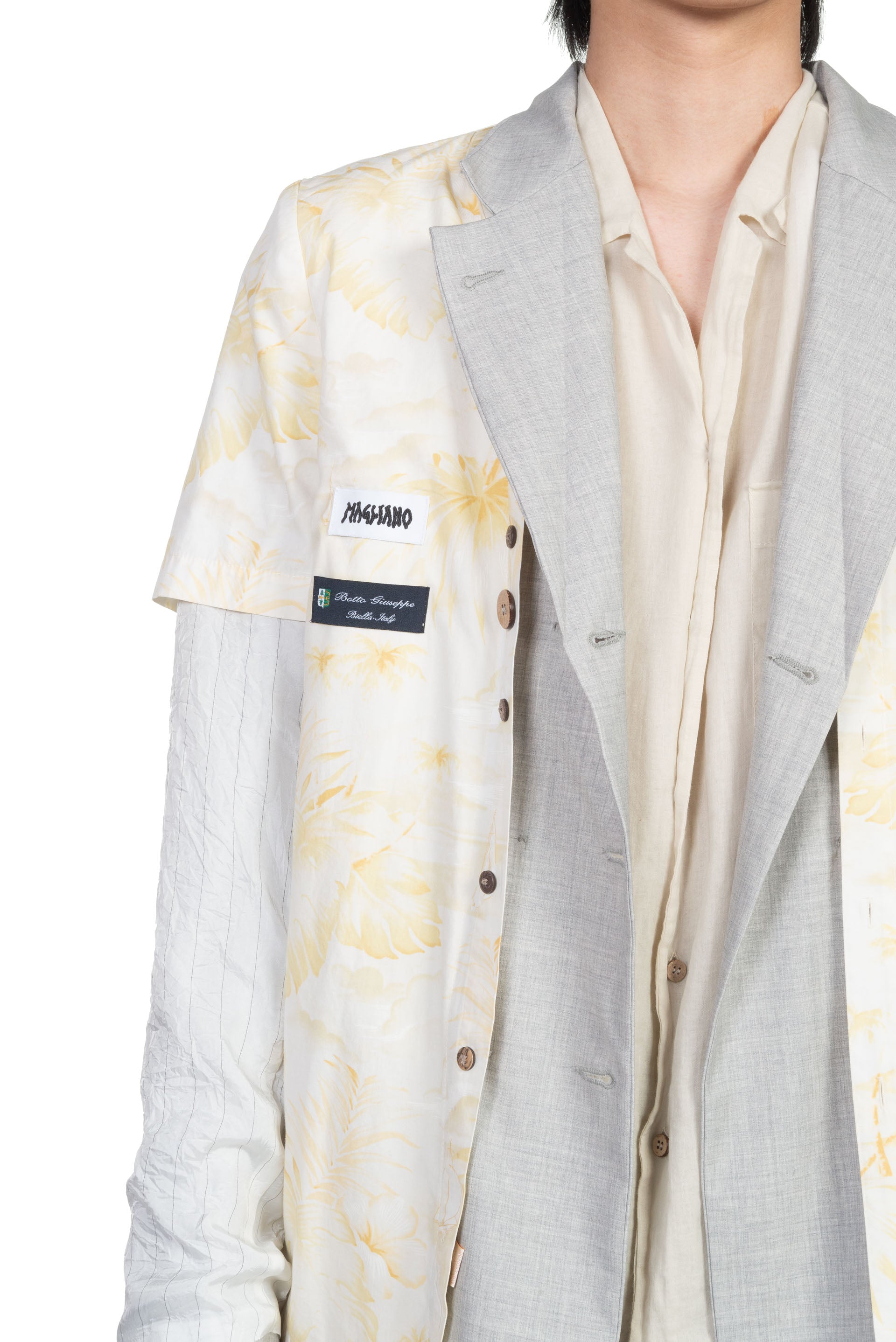 Double breasted jacket. Button closure at front. Side Pockets. Inside pockets. Magliano twist. Reversibile featuring an inner Hawaiian print shirt. Hawaiian shirts are hand-selected by the Magliano team and have been re-worked to create this product. Possible variations and imperfections between each item make it unique to the wearer.