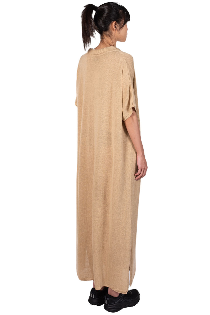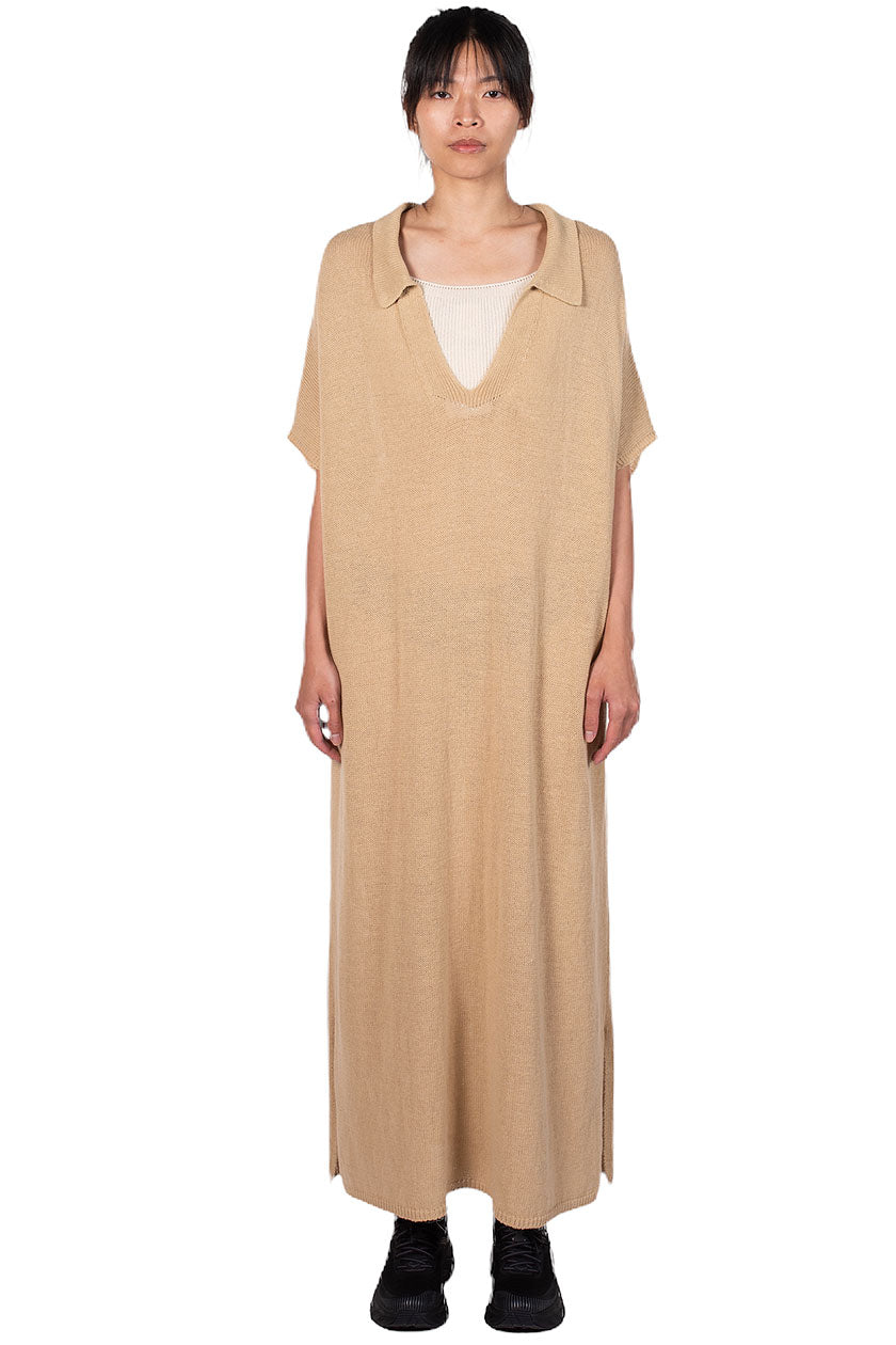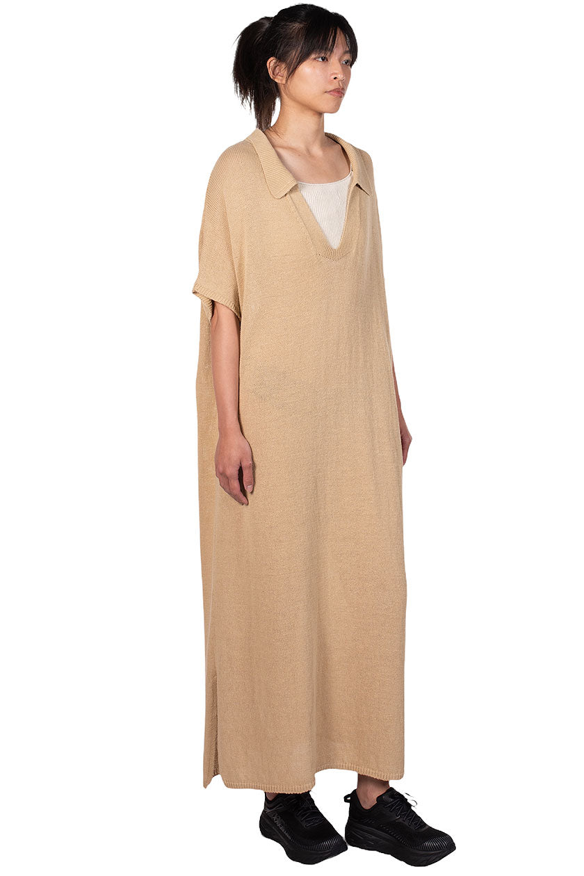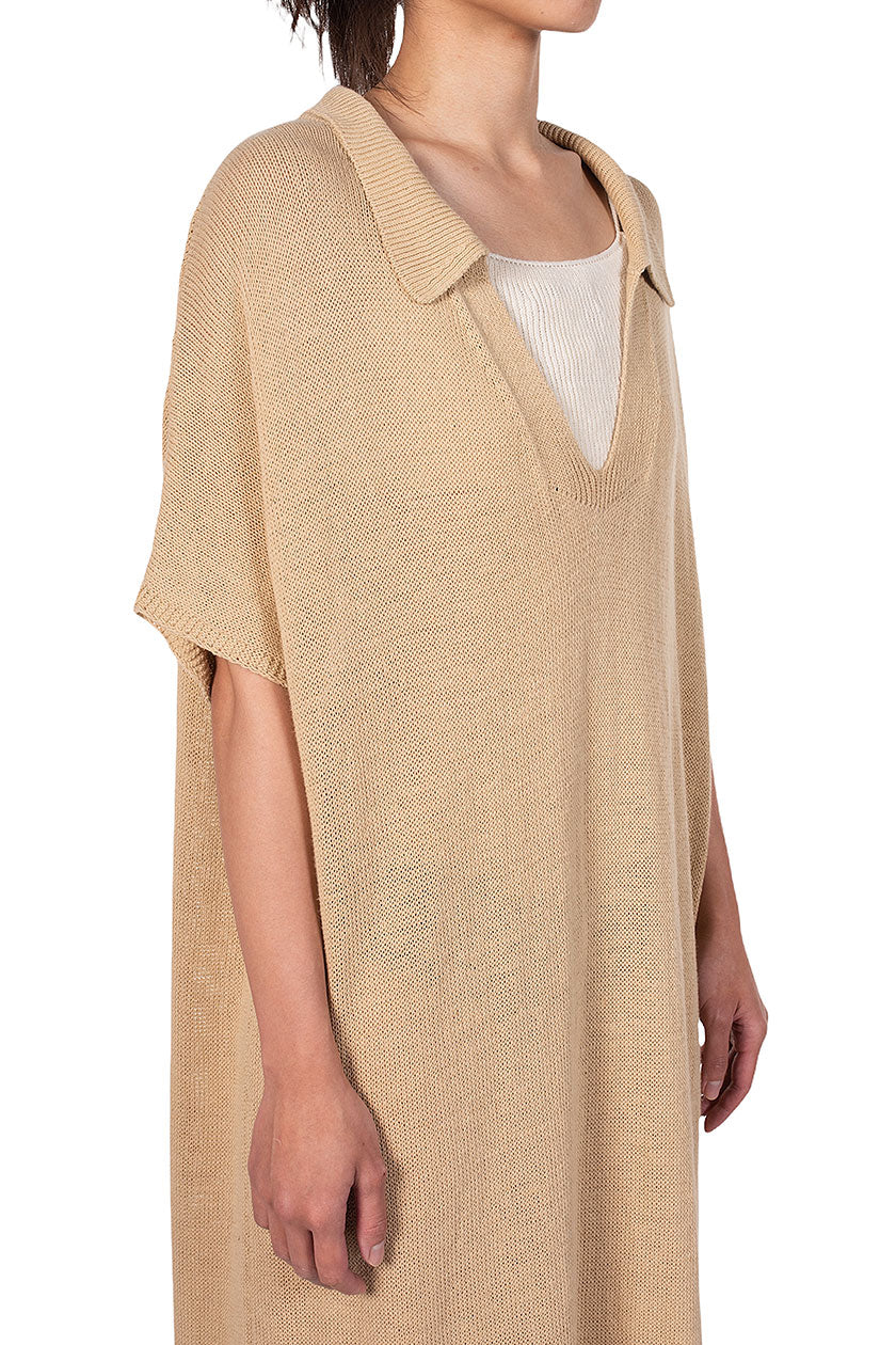 Monica Cordera’s collections are composed of limited edition garments with minimalist designs that seek purity and simplicity, timeless earthy tones in recycled linen and cotton as seen with the Amber Knit Linen Dress.