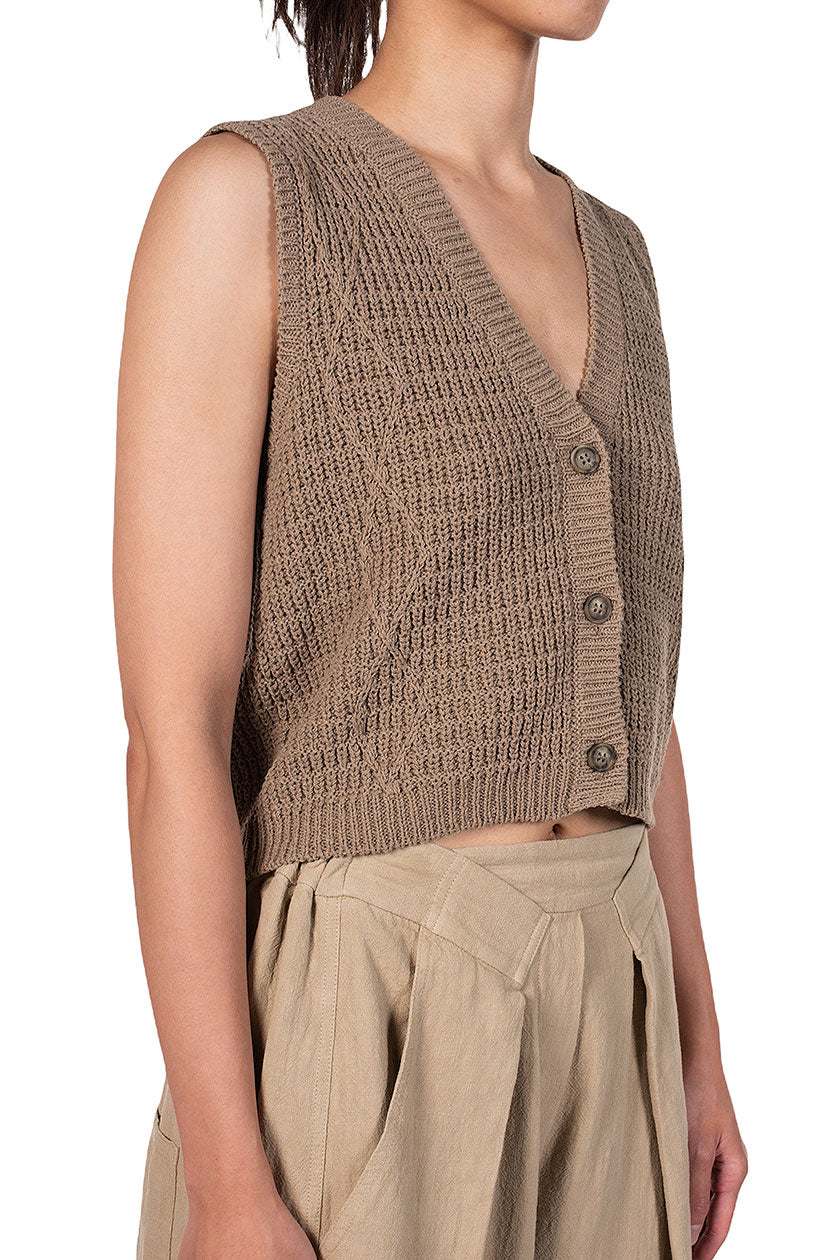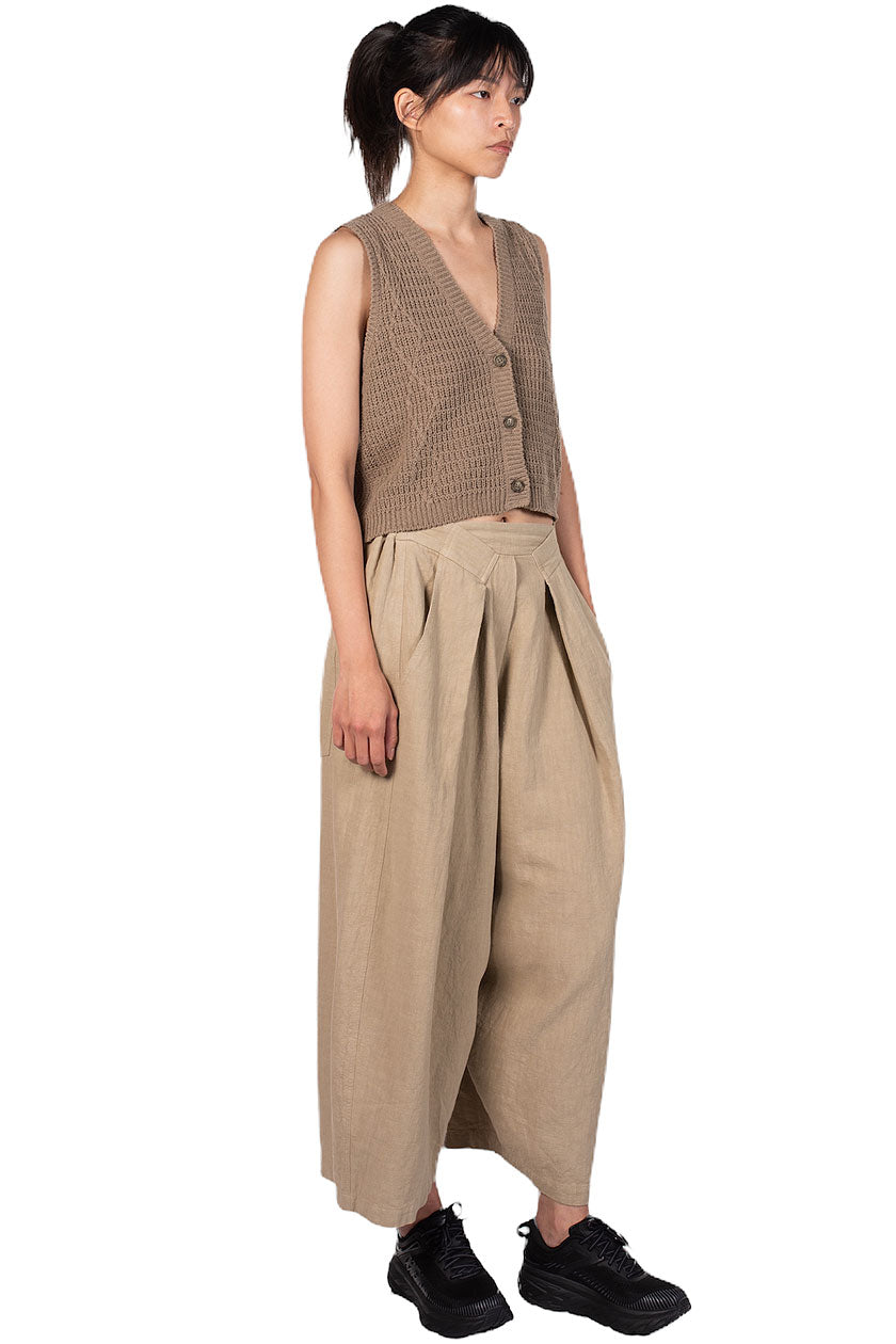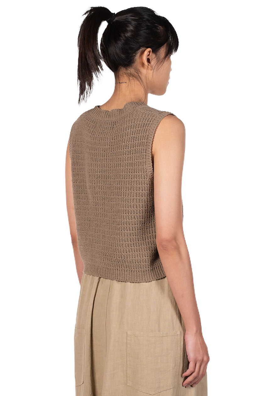 Monica Cordera’s collections are composed of limited edition garments with minimalist designs that seek purity and simplicity, timeless earthy tones in recycled linen and cotton as seen with the Amber Knit Linen Top