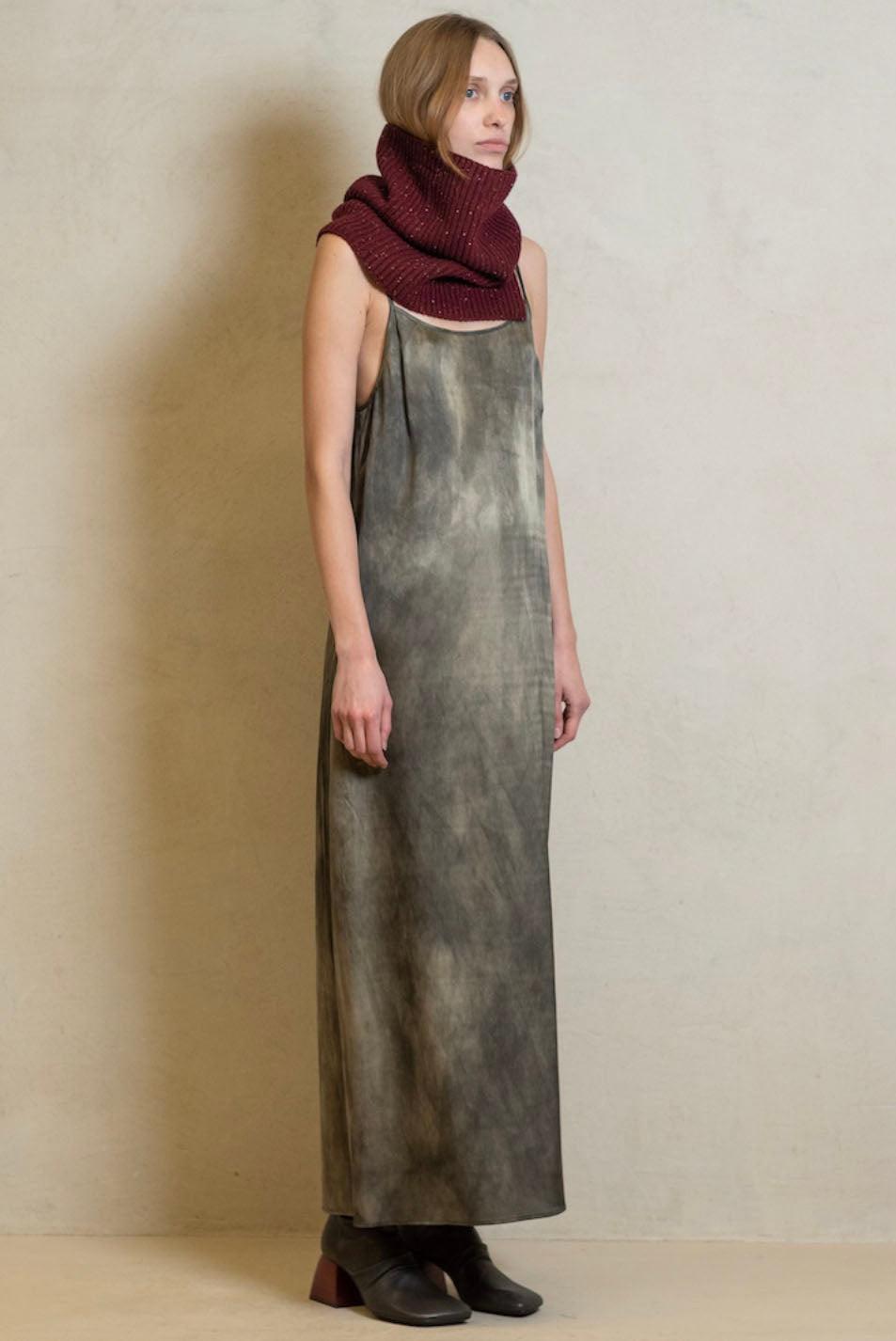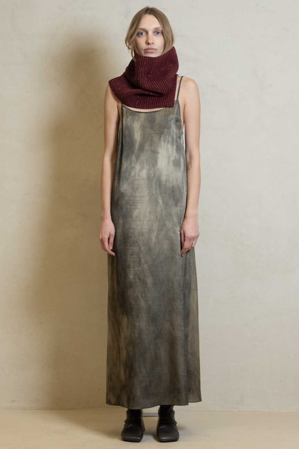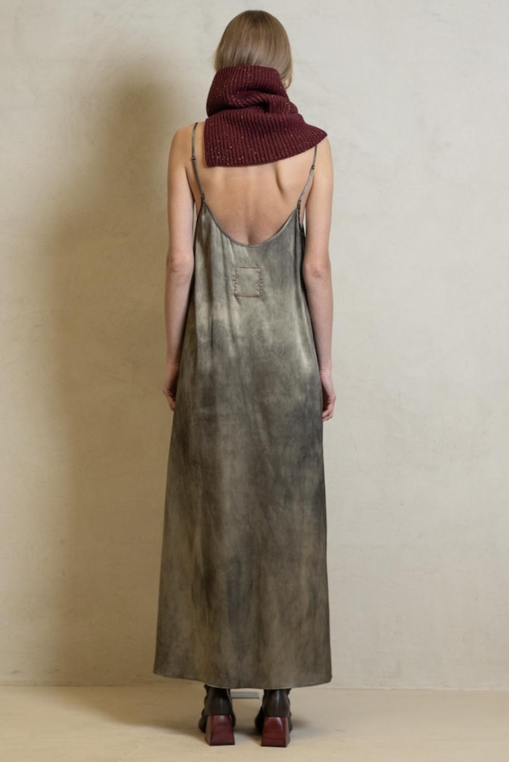 UMA WANG slip dress. Sleeveless. Long fit. Lightweight. Soft Cupro and viscose fabric. Seasonal dye.