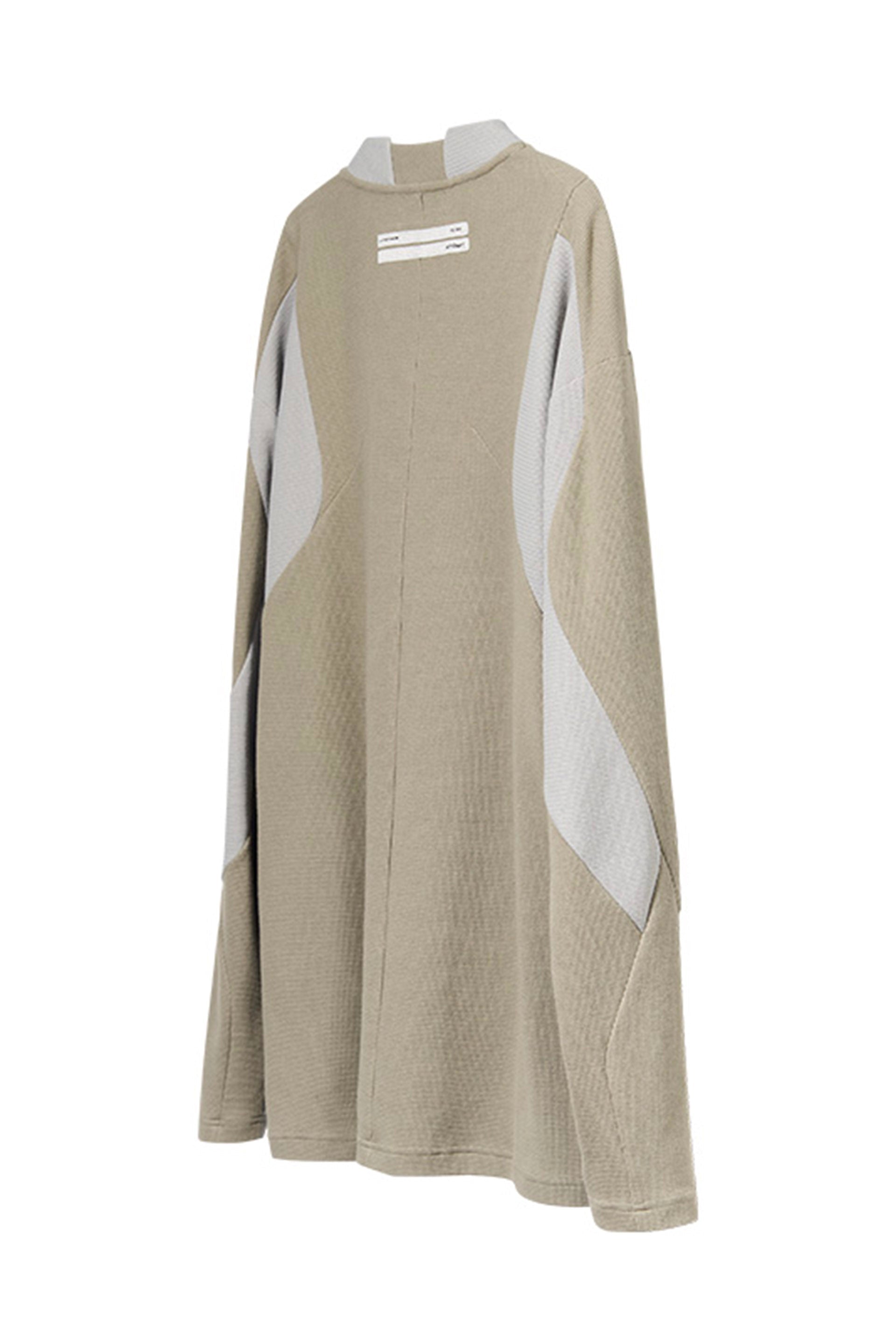 Long sleeves. Round collar. Butterfly collar. Invisible zip at collar. Details at back. Patchwork throughout.