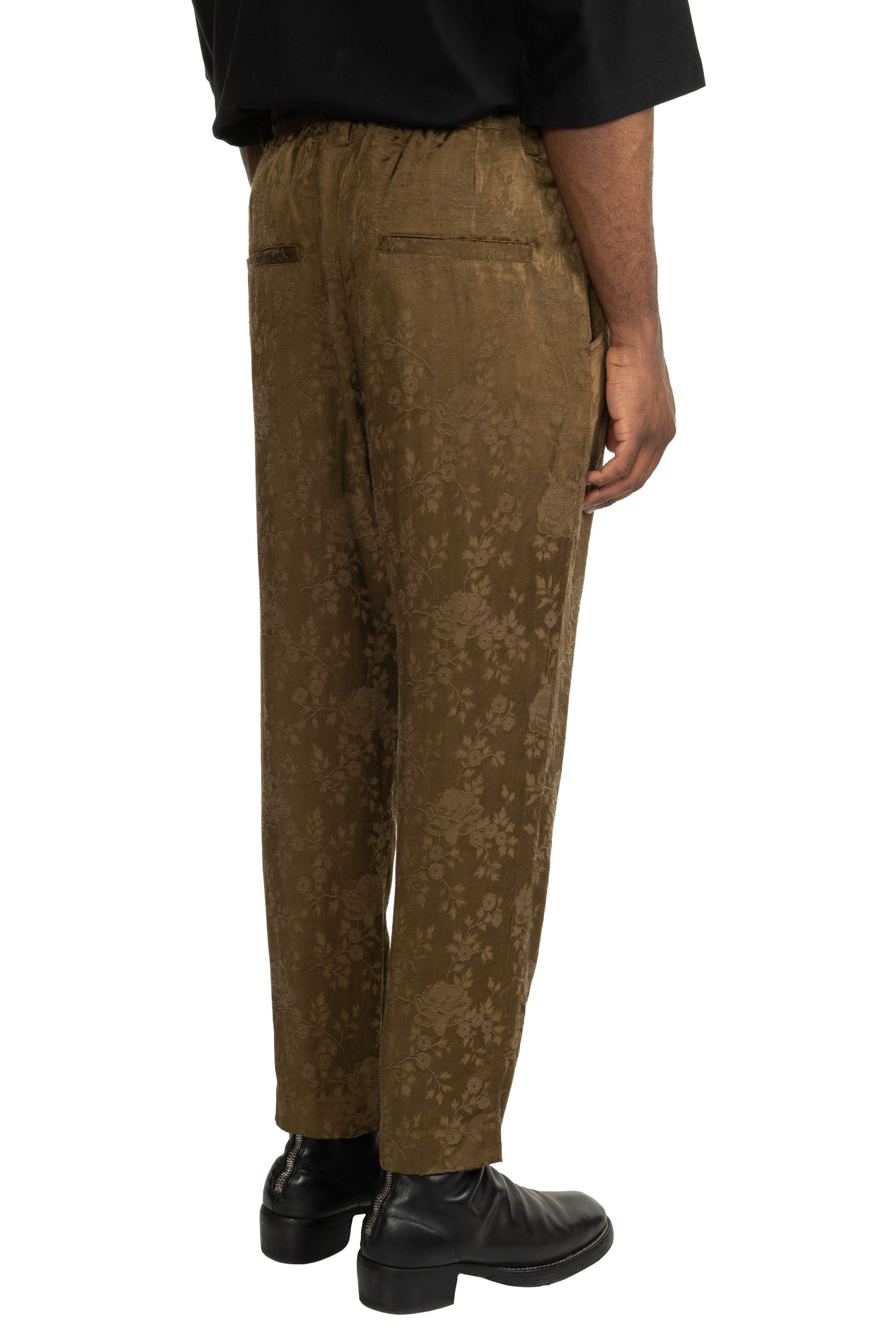 Lounge pants constructed in a lightweight and fluid rayon-linen blend. Side pockets, flat-felled seam stitching at front. Seasonal tortoise shell hardware. Floral jacquard embellishment adorns the garment throughout.