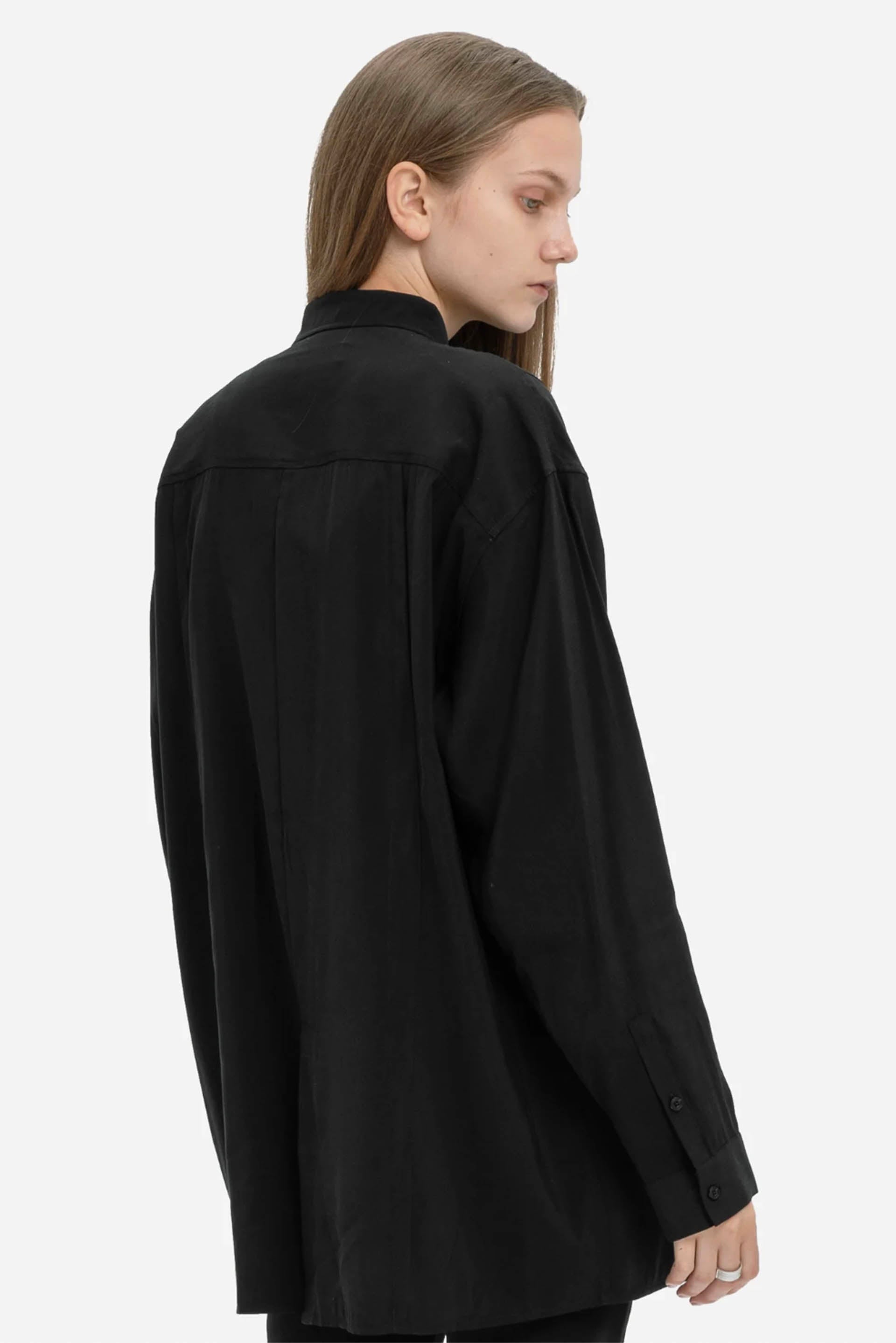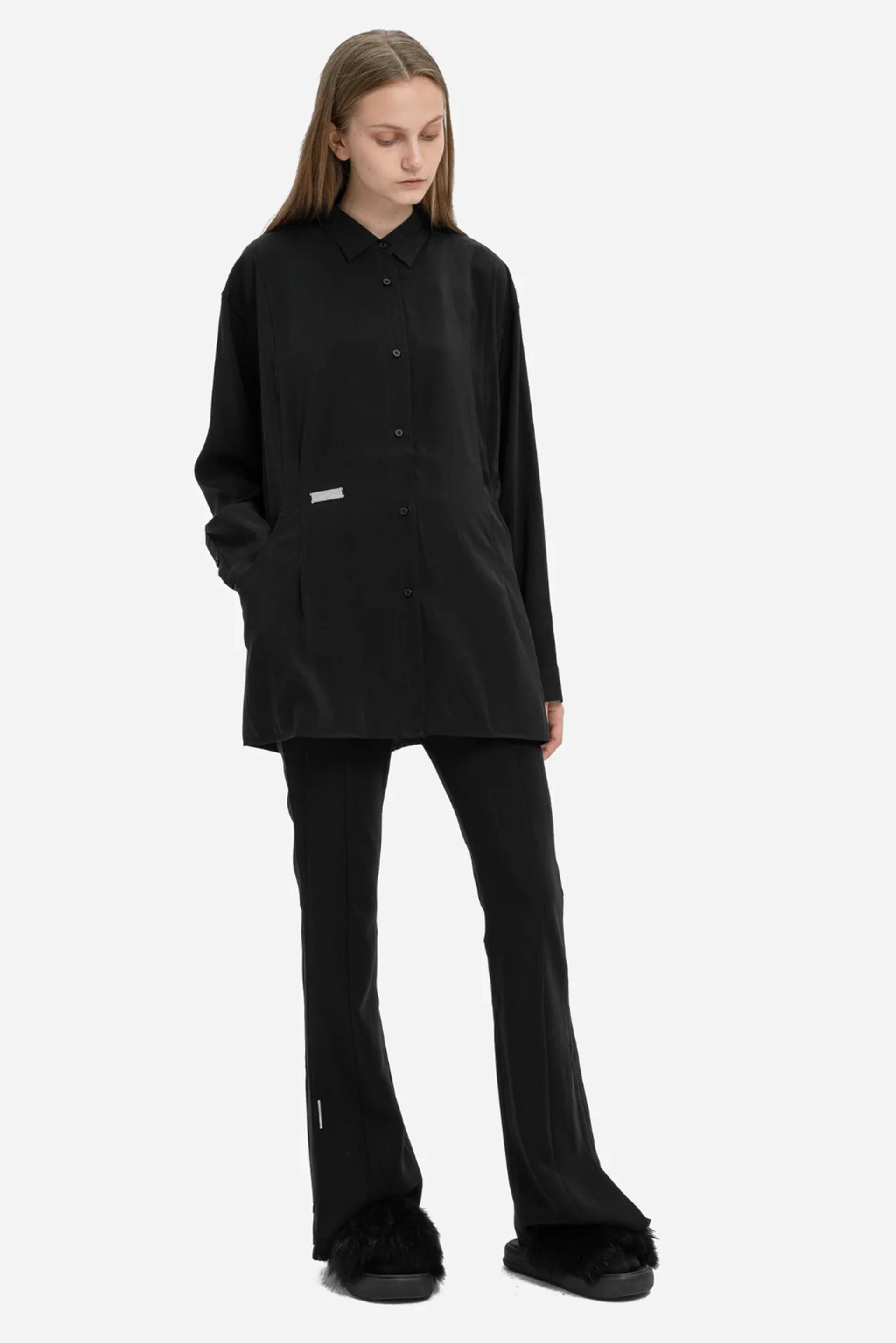 C2H4 concept ranges from hypothetical space scientists producing sport and streetwear-inspired designs creating an intergalactic underground culture. Using her studio as a laboratory, Chen’s meticulously elevates wardrobe cornerstones as seen with the Arc Cutting Ripple Shirt Black.