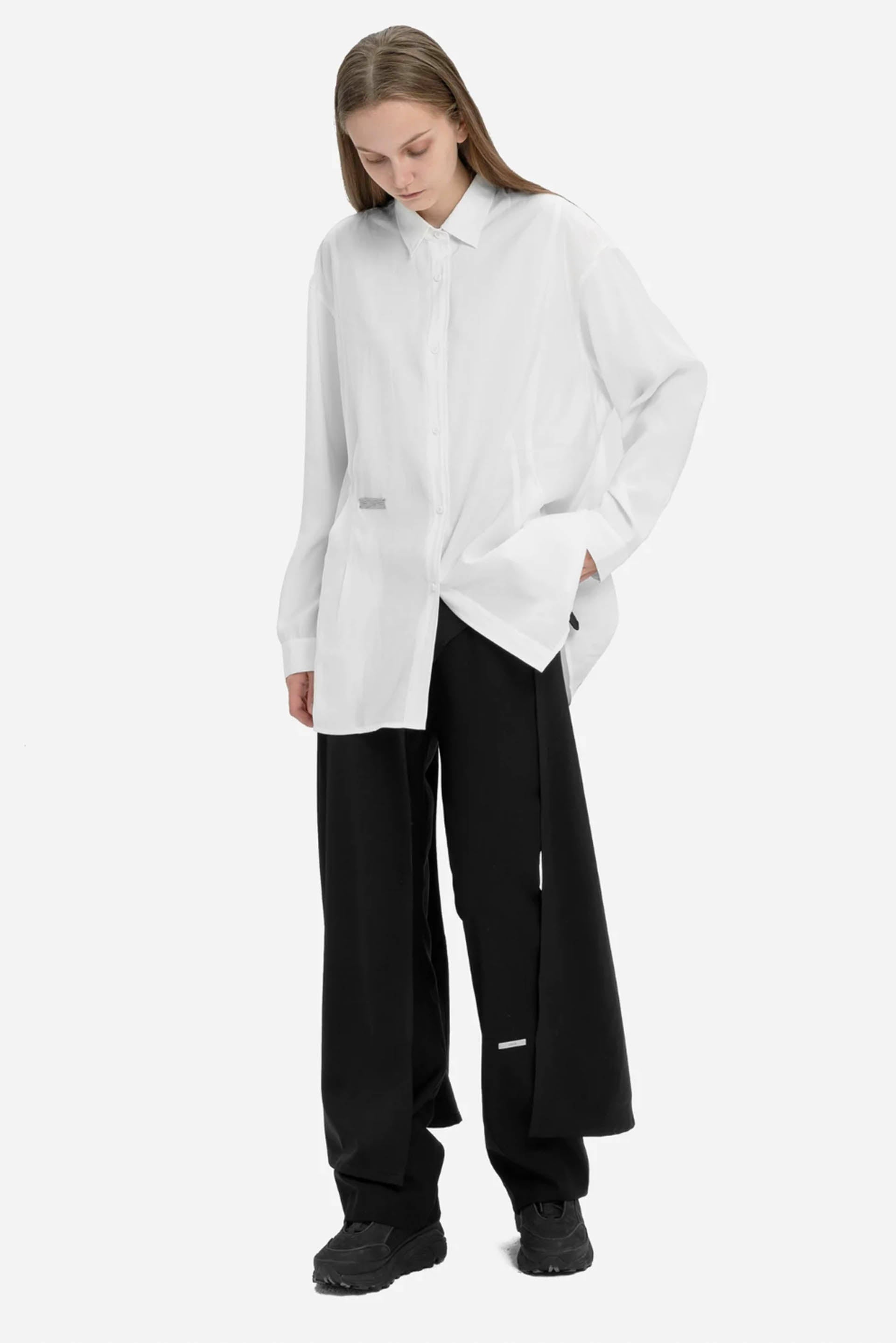 C2H4 concept ranges from hypothetical space scientists producing sport and streetwear-inspired designs creating an intergalactic underground culture. Using her studio as a laboratory, Chen’s meticulously elevates wardrobe cornerstones as seen with the Arc Cutting Ripple Shirt White