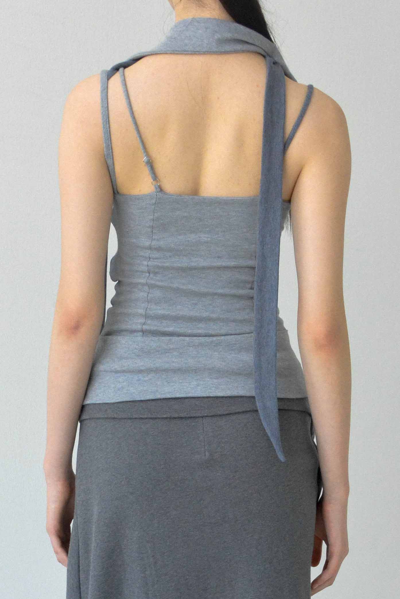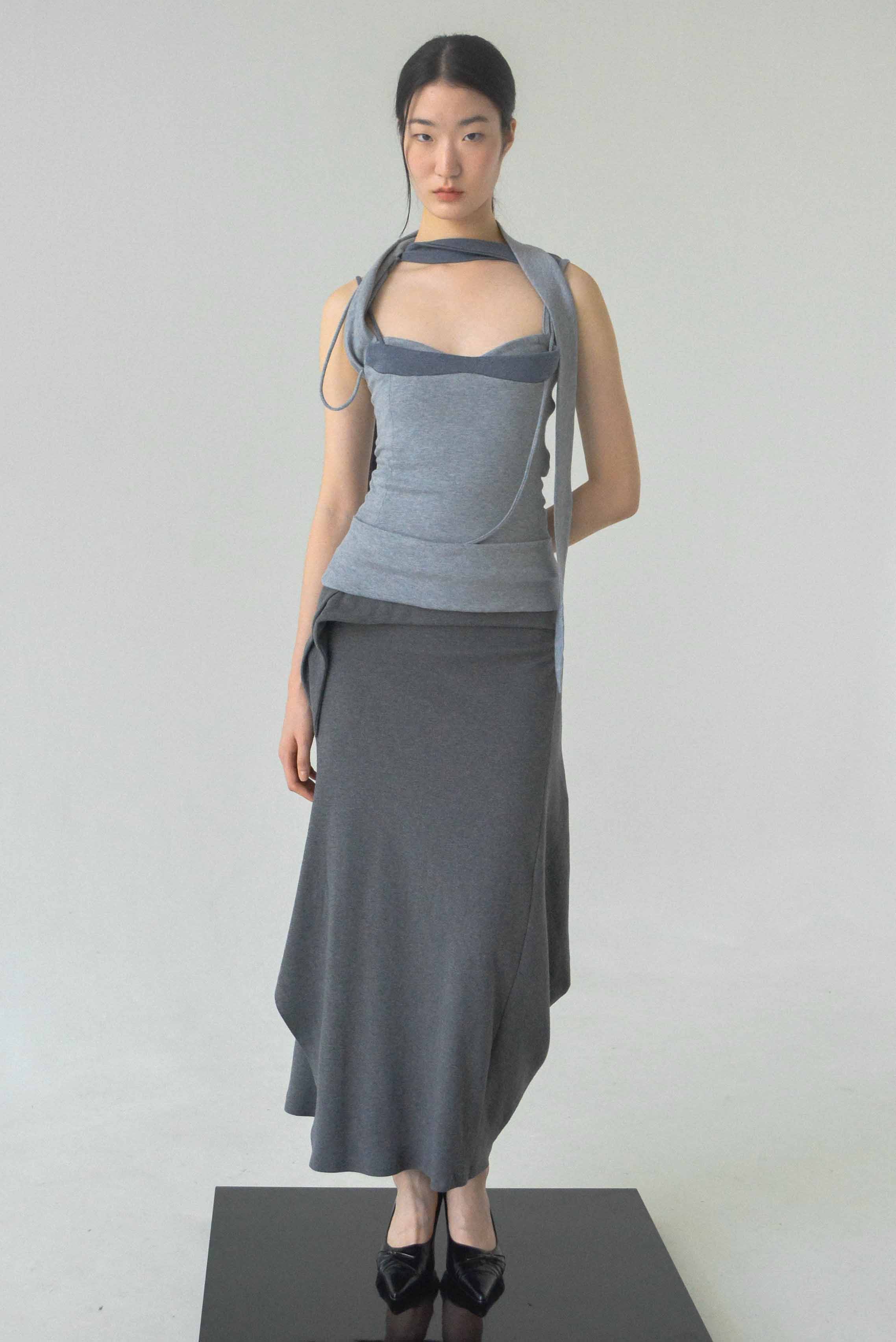 Caro Chia continuously explores intriguing forms that are then brought to life through innovative shapes and pattern cutting techniques. Caro Chia is known for her experimental construction combined with making textiles engineered to form sculptural embellishments in subtle colour ways as seen with the Aro Grey Top.