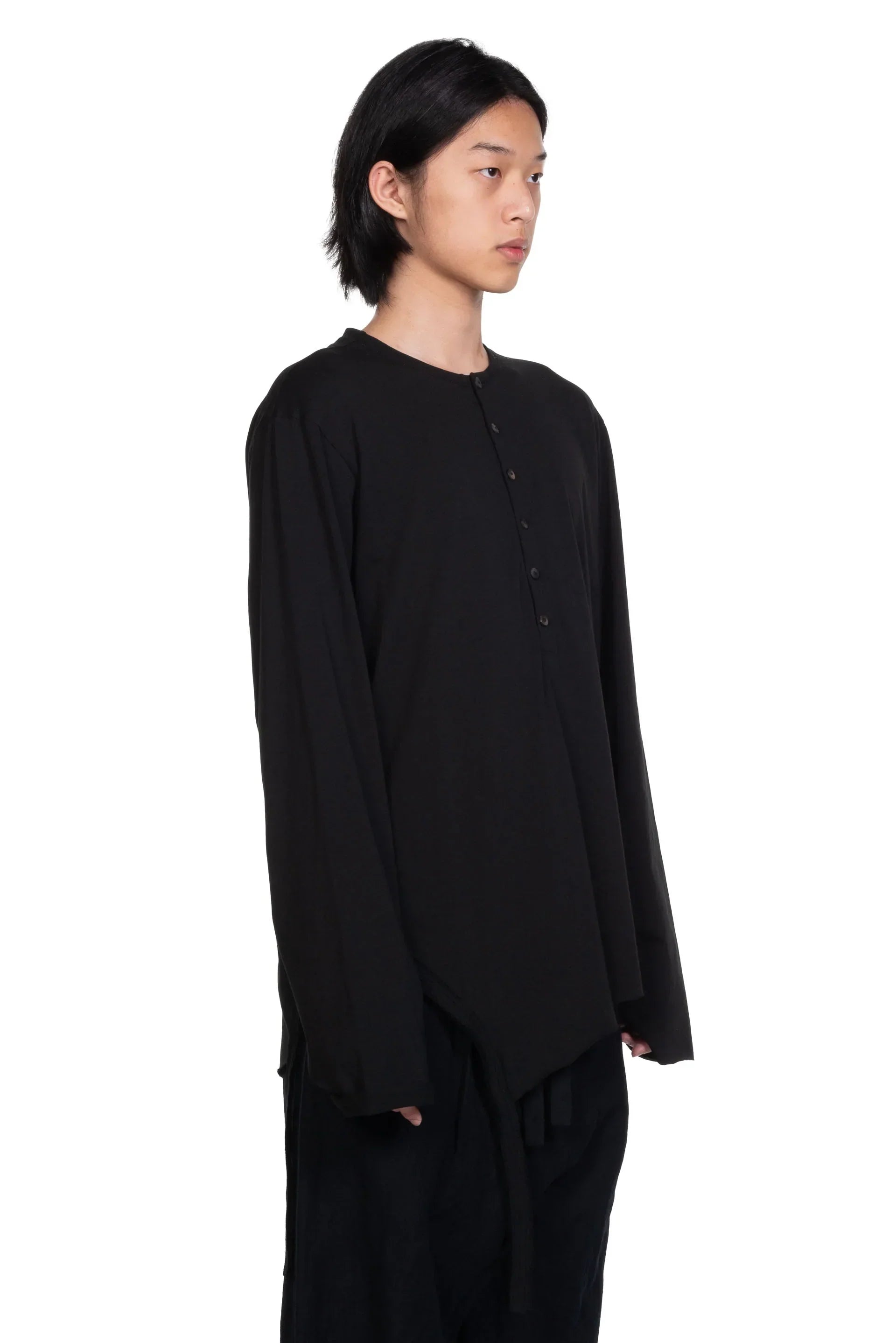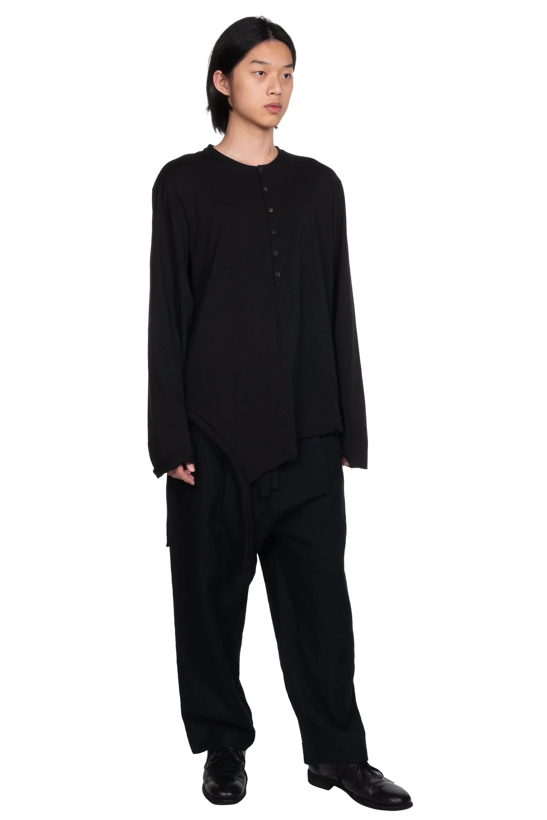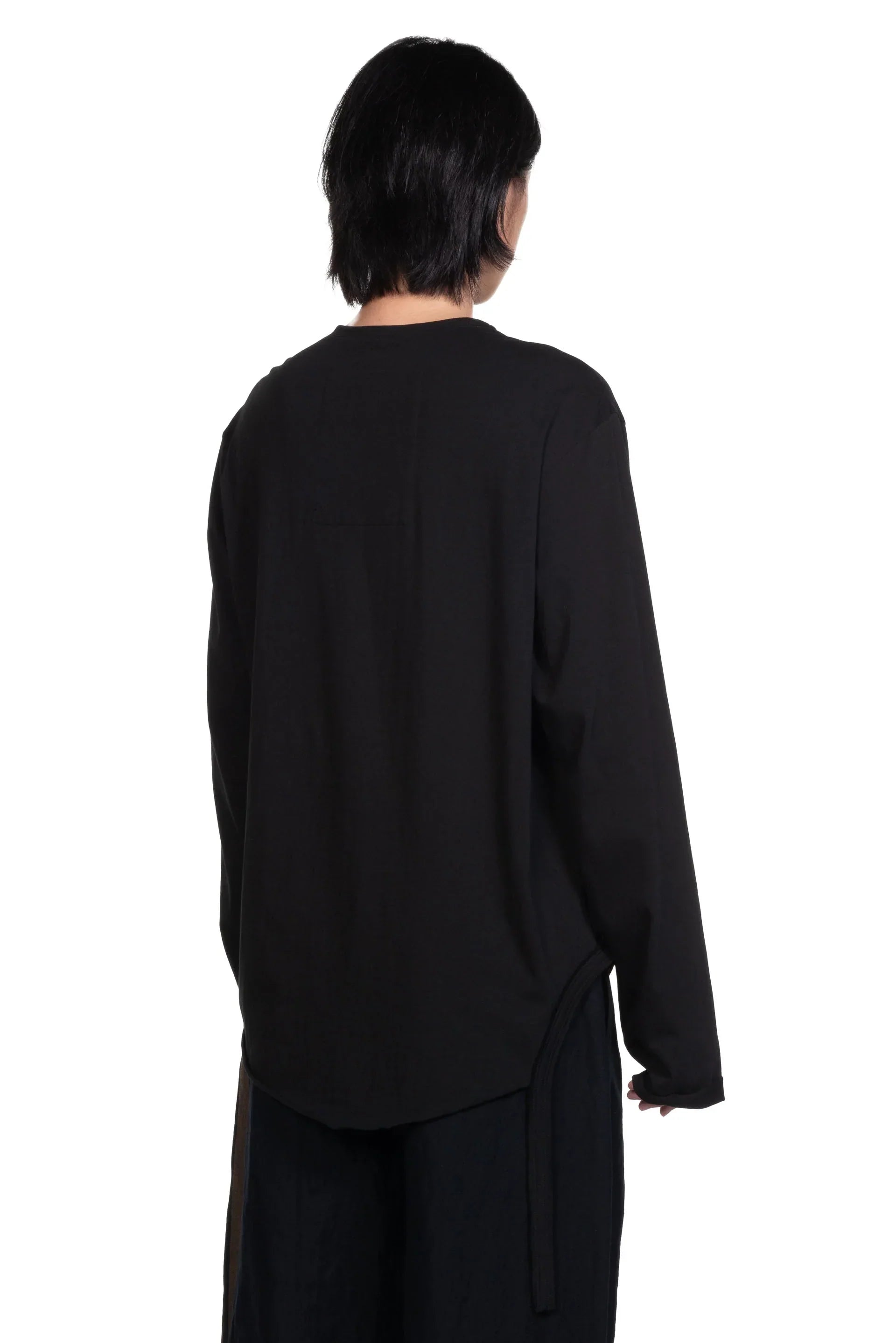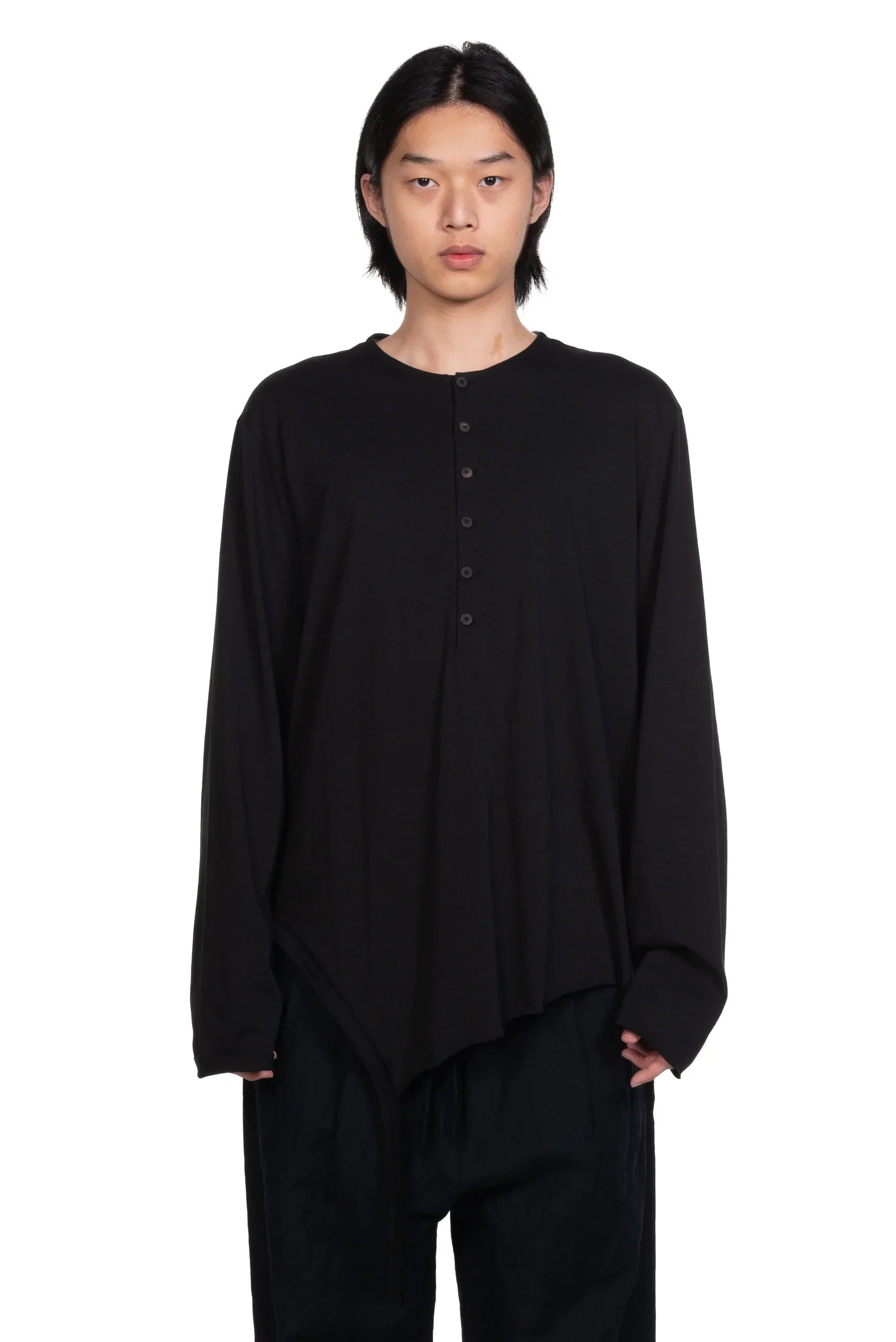Ziggy Chen Asymmetric Long sleeves Tee Black. Round Neck. Long Sleeves. Button closure at front. Asymmetric details at front.