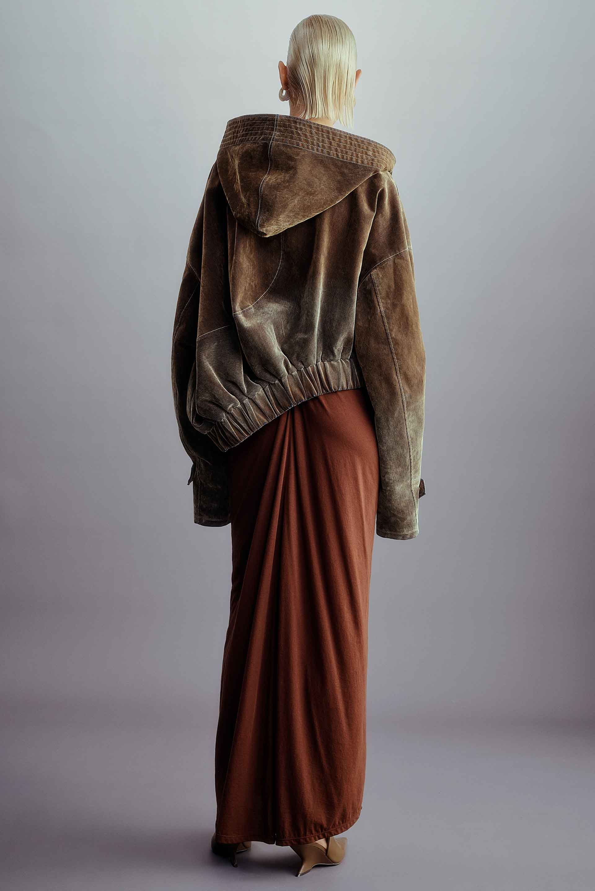 OUDE WAAG strikes a balance between Asian aesthetics and Western cutting. It is at the heart of designer’s philosophy: celebrating the power of women, yet simultaneously critiquing the ongoing objectification and idealisation of the body as you can see in the Oude Waag "Paramount Soul" collection with the Asymmetric Washed Velvet Structured Jacket.