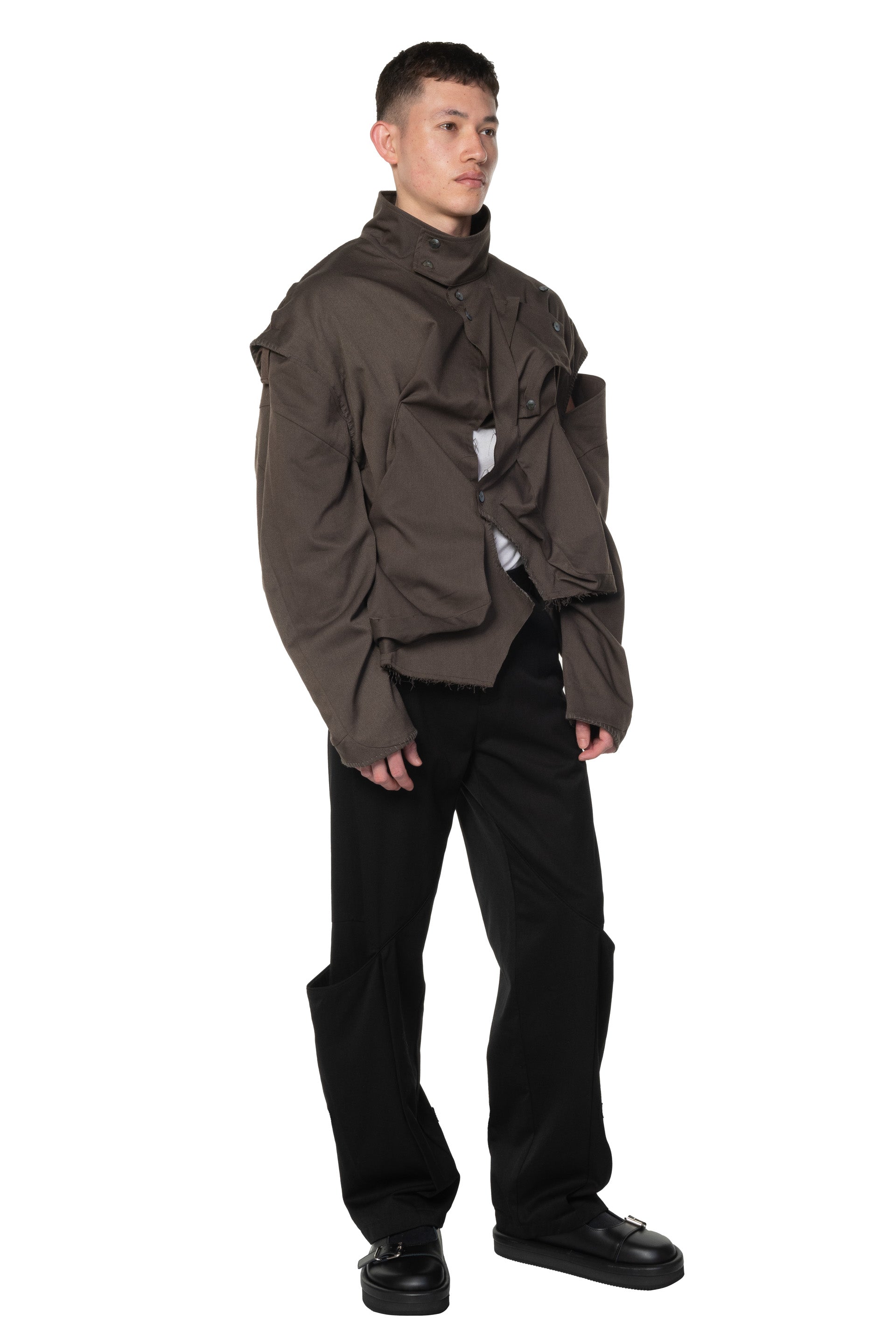 Aenrmous plays heavily with layers, asymmetry, deconstruction of pieces and detachable or adjustable elements. The brand understands trends while building something new and exciting as seen with the Atri Eyck Pants Black.