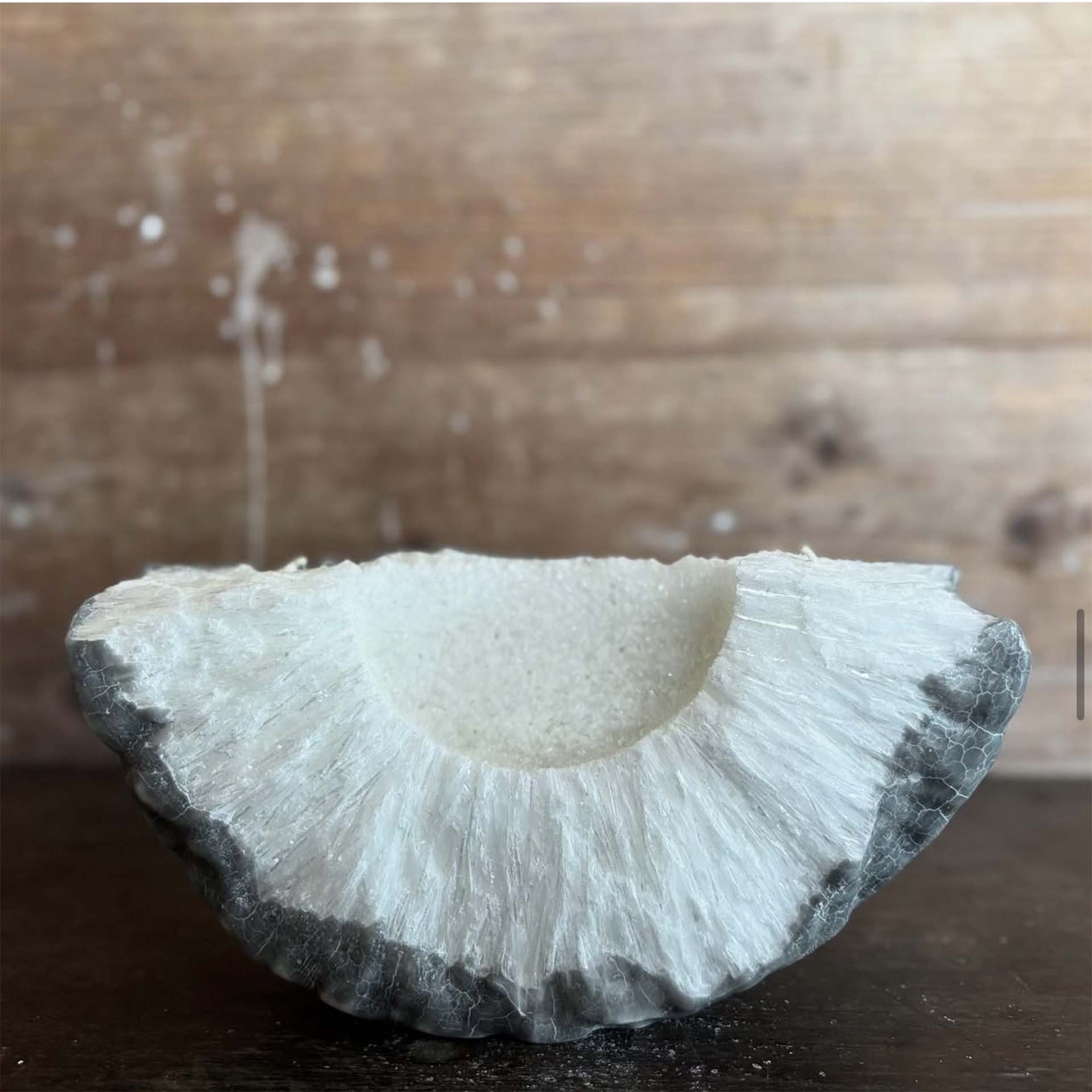 Colour: Grey. Weight: 882g. H10cm W20.5cm D8cm 882g. Burning time: approximately 50 hours. Please set a plate or slate under the candle as the wax might leak out. This might occur as the shape of the candle is irregular.