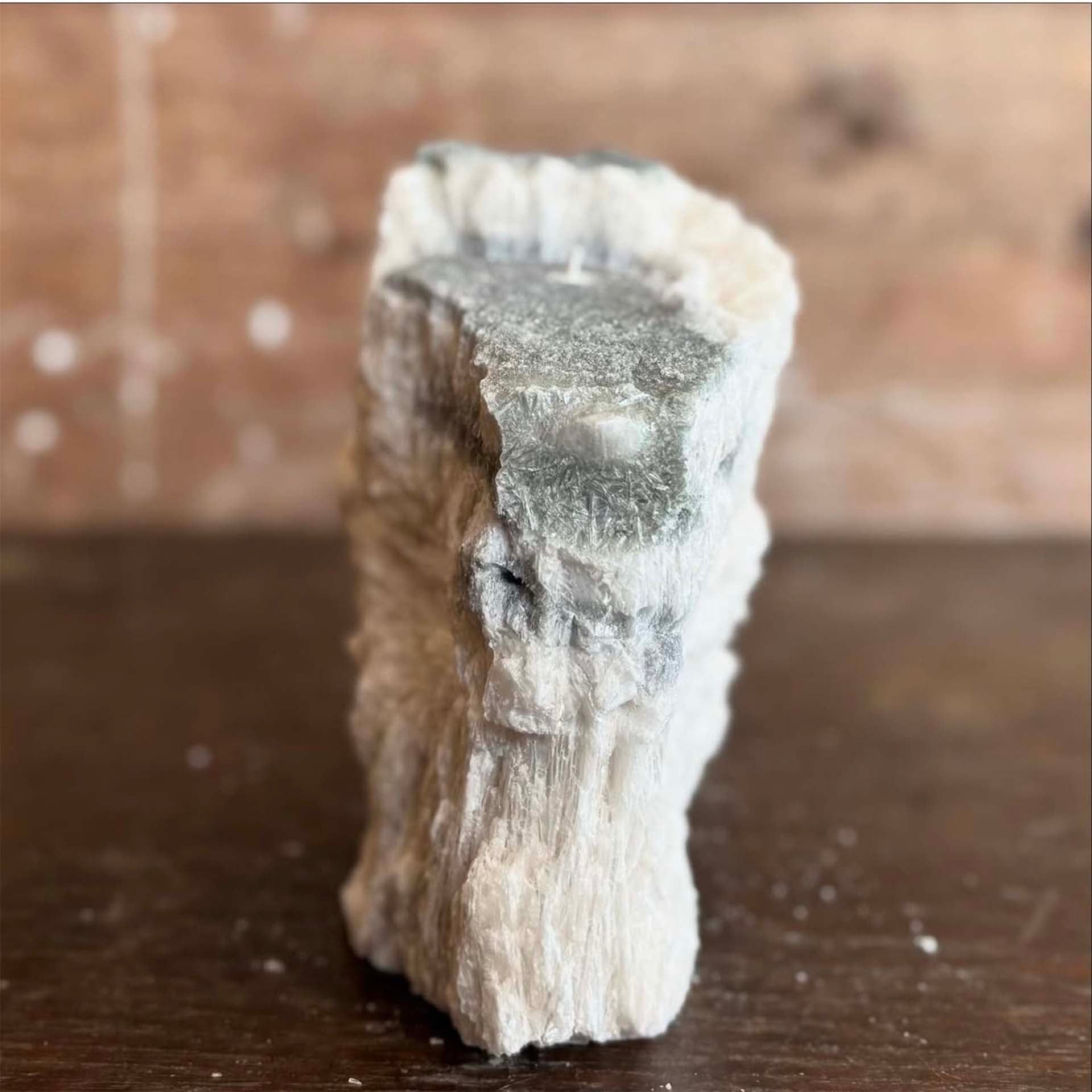 Colour: Grey. Weight: 429g. Size H12.5cm W7.5cm D10cm. Burning time: approximately 80 hours. Please set a plate or slate under the candle as the wax might leak out. This might occur as the shape of the candle is irregular.
