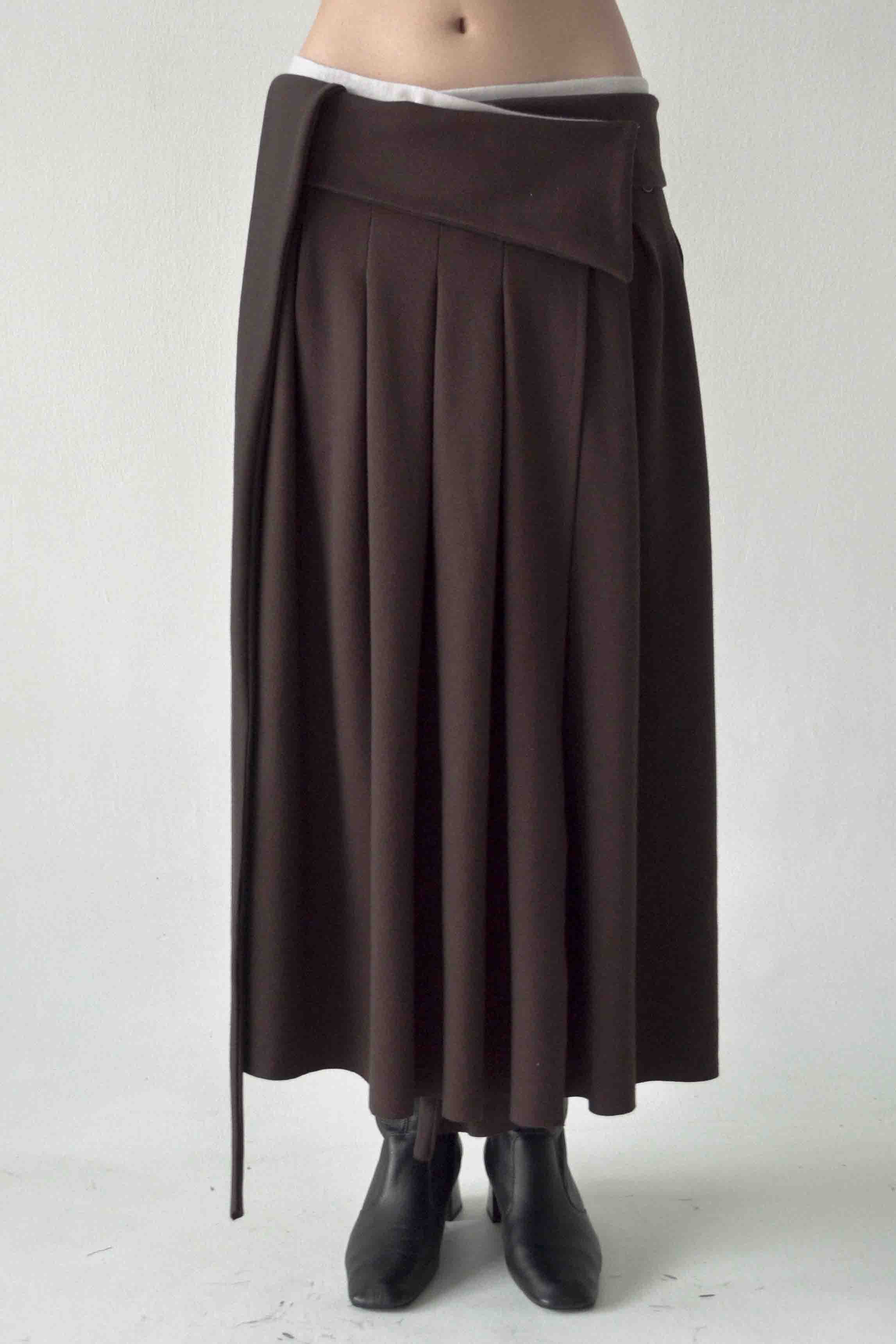 Barra Pleated Skirt in Brown Grey. Maxi-length skirt with pleated details on the skirt. Inner button as opening. Stretchable cotton fabric with soft feel. Pleated details. Length: 91cm for XS,S - 92cm for M,L.