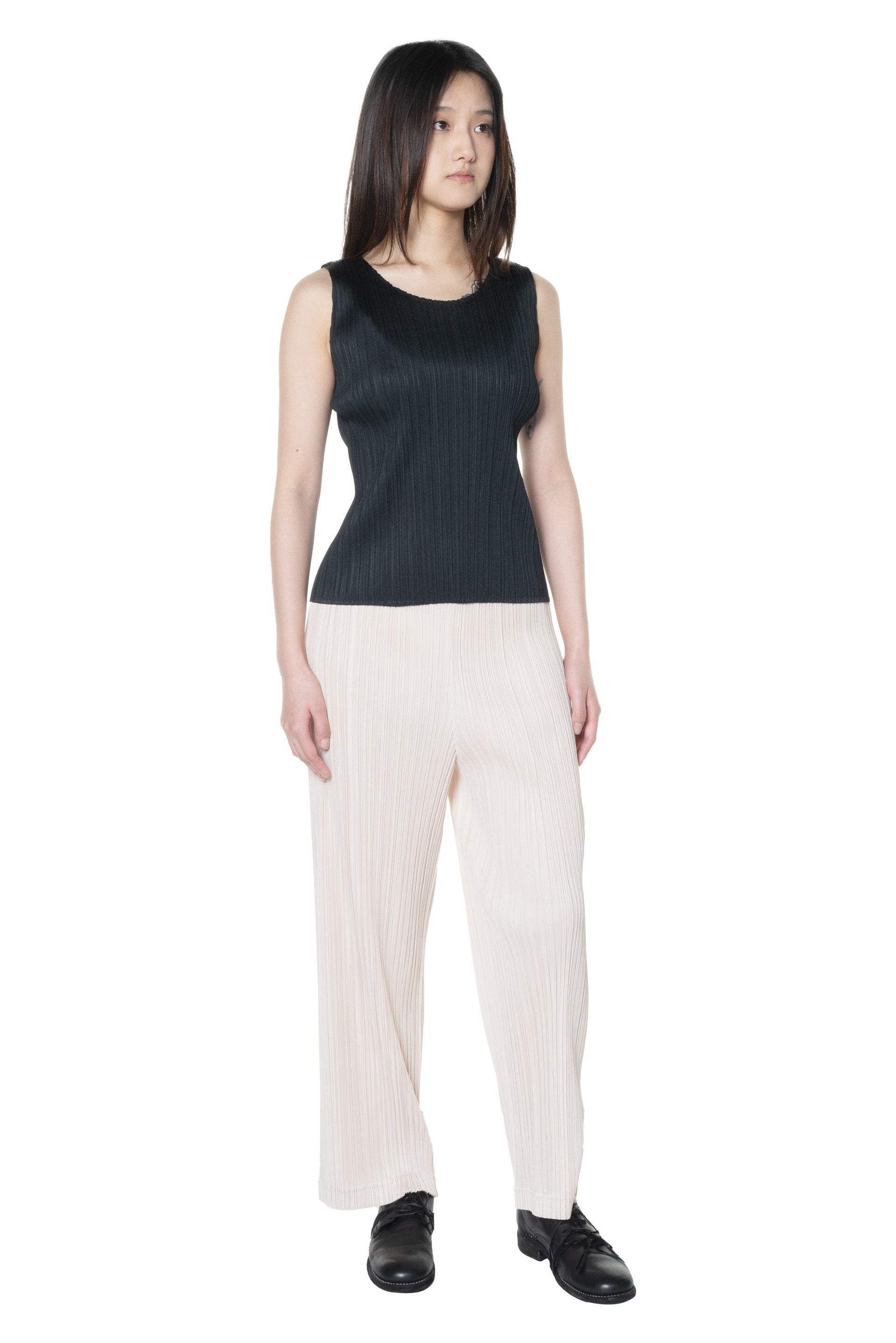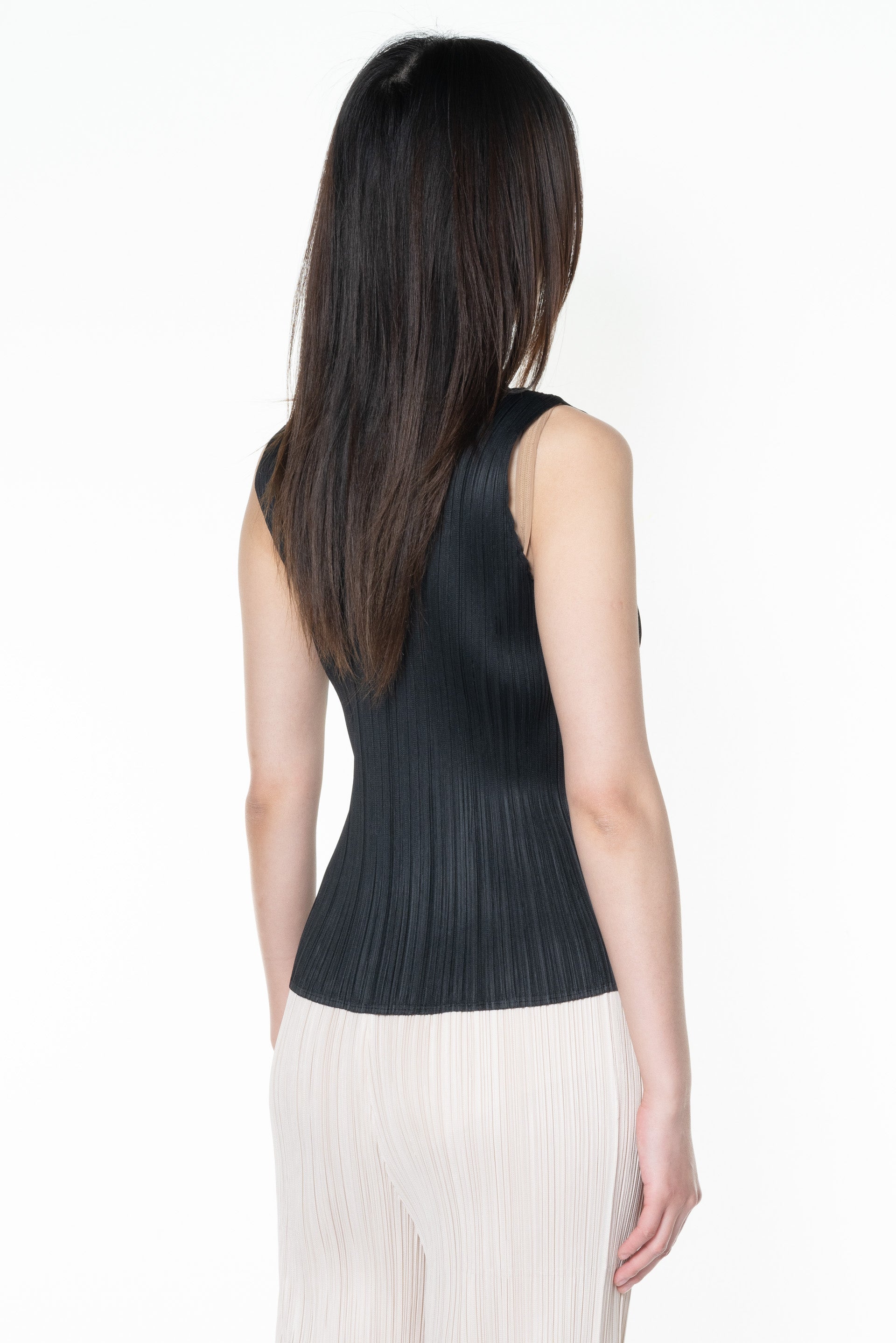 Pleats Please is crafted from a single thread, then creases are added after the clothes have been sewn into shape offering a combination of convenience, comfort and coolness. Pleats Please designs are simple with a strong silhouette as seen with the Basic Crew Neck Tank-Top Black.