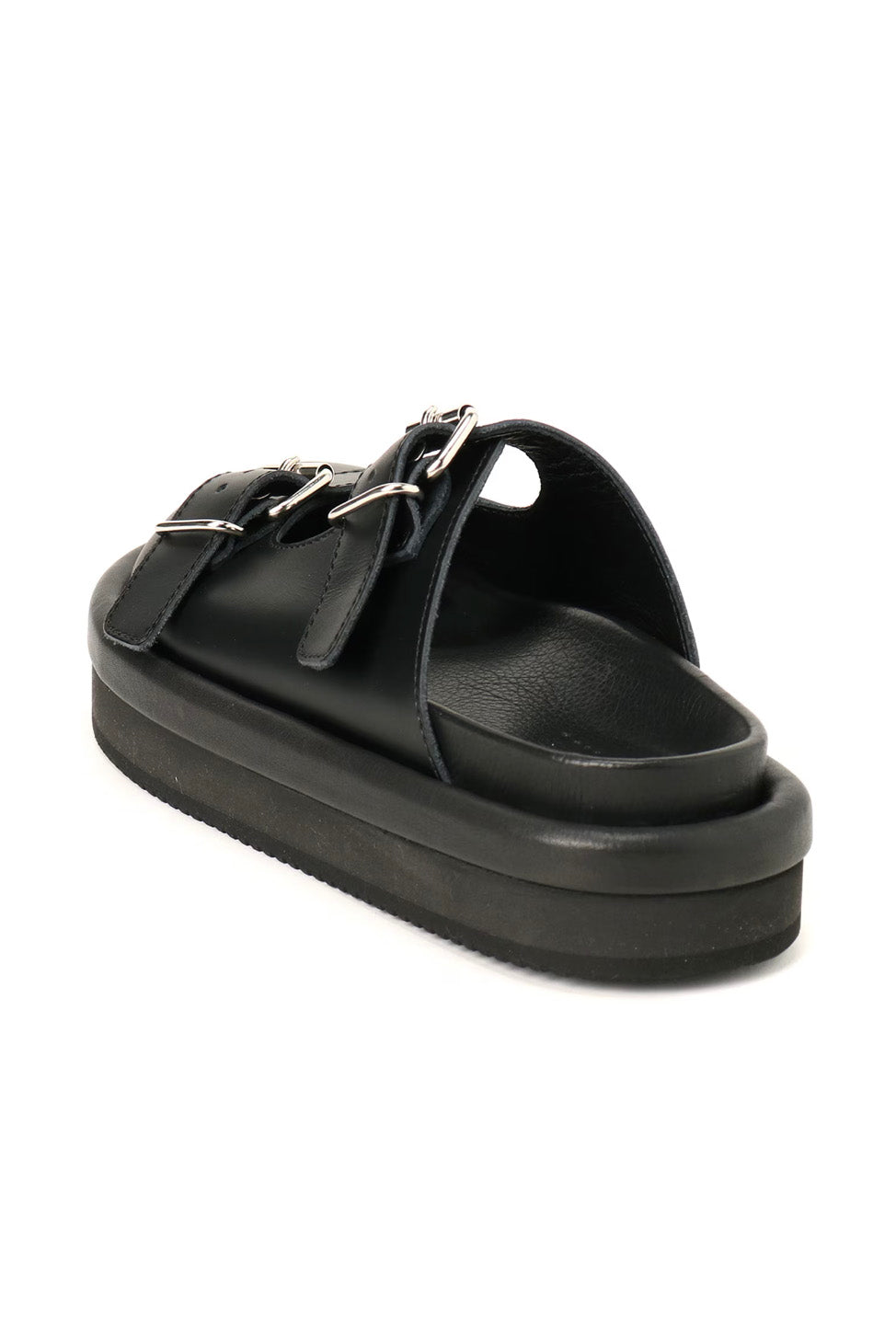 Unisex belted sandals made of cowhide leather. The dual belts offer a big statement. The design with holes on the instep allows you to enjoy a different impression depending on the socks you wear with them.