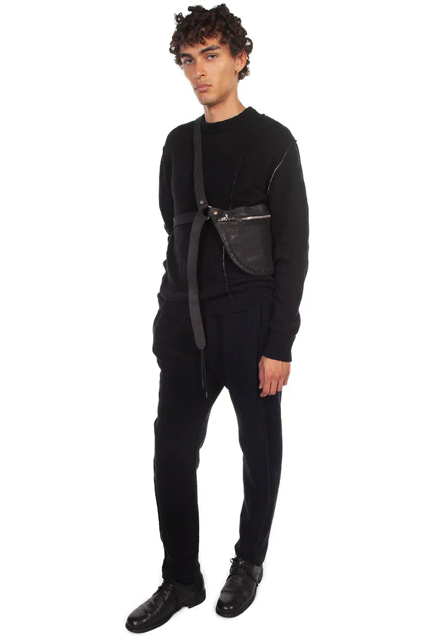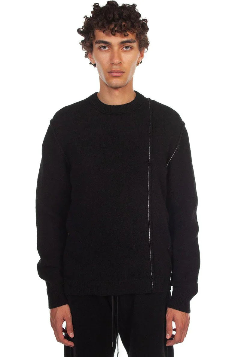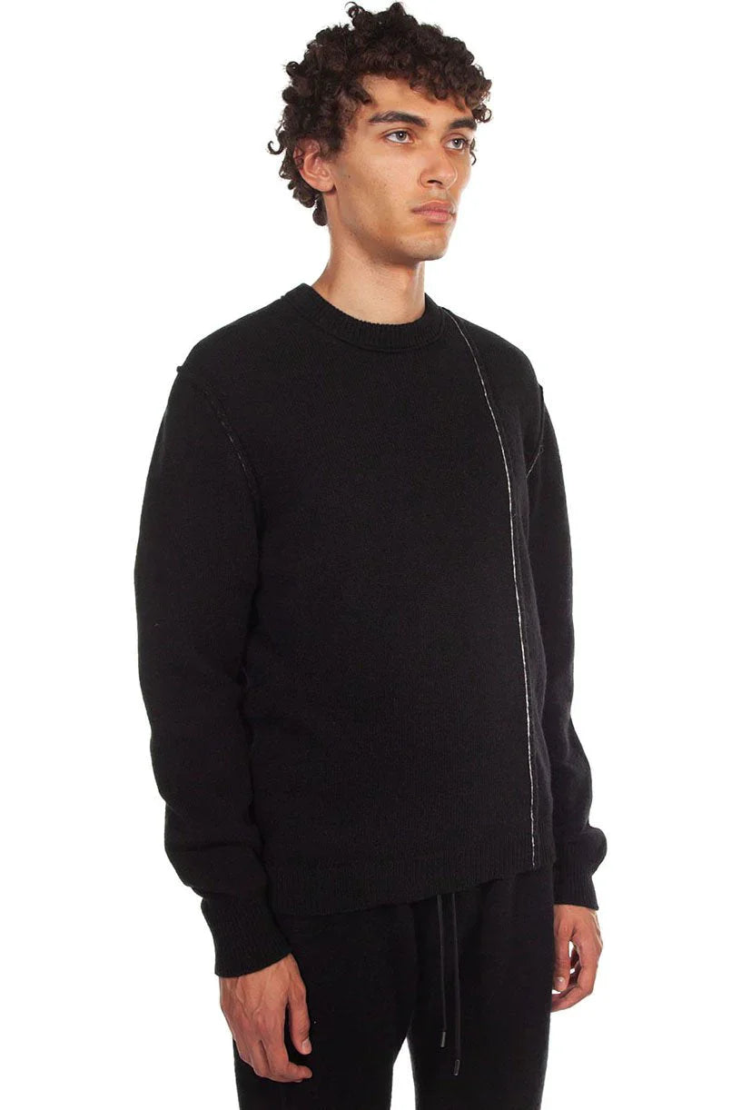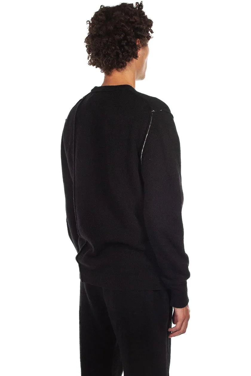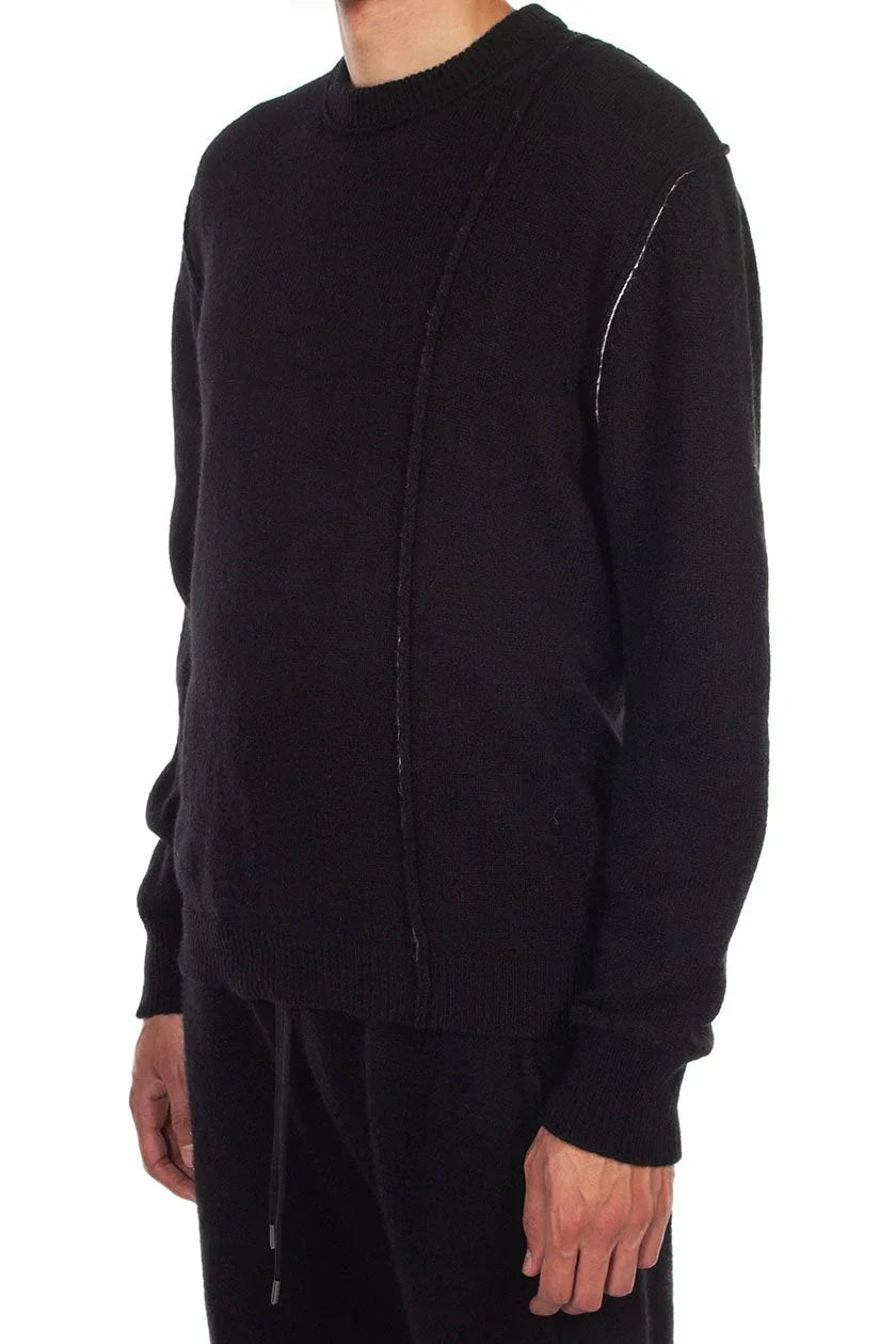 Long sleeve panelled alpaca-blend sweater in black. Contrast stitching in white and exposed seams throughout. Rib knit crewneck collar, cuffs, and hem.Colour: Black. Composition: 75% superfine alpaca, 25% polyamide. Made in Italy.