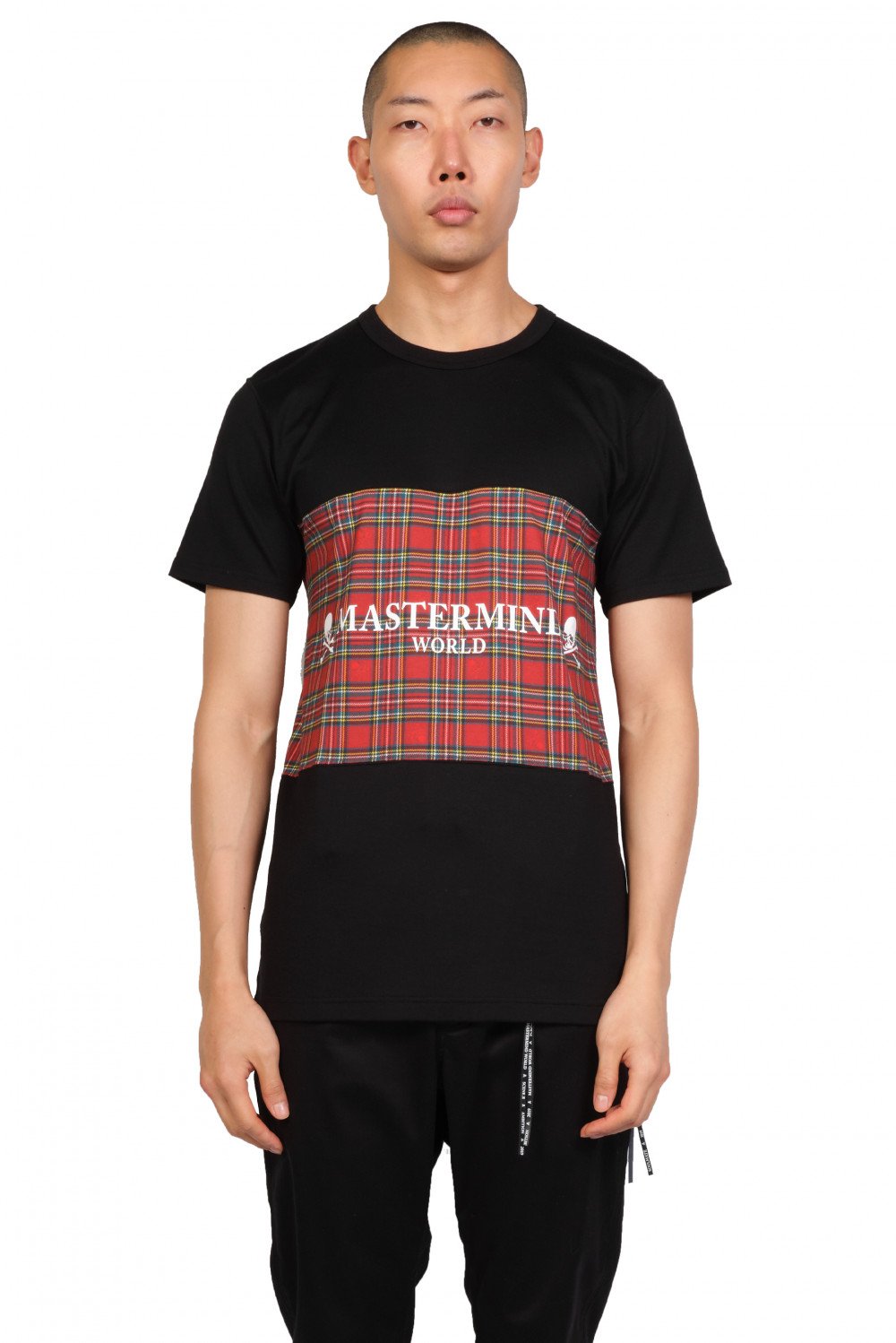 Mastermind World blends elements of punk, street, and utility wear, the brand's contemporary designs feature Masaaki Honma’s signature skull iconography throughout as you can see on the Mastermind World Black & Tartan T-shirt.