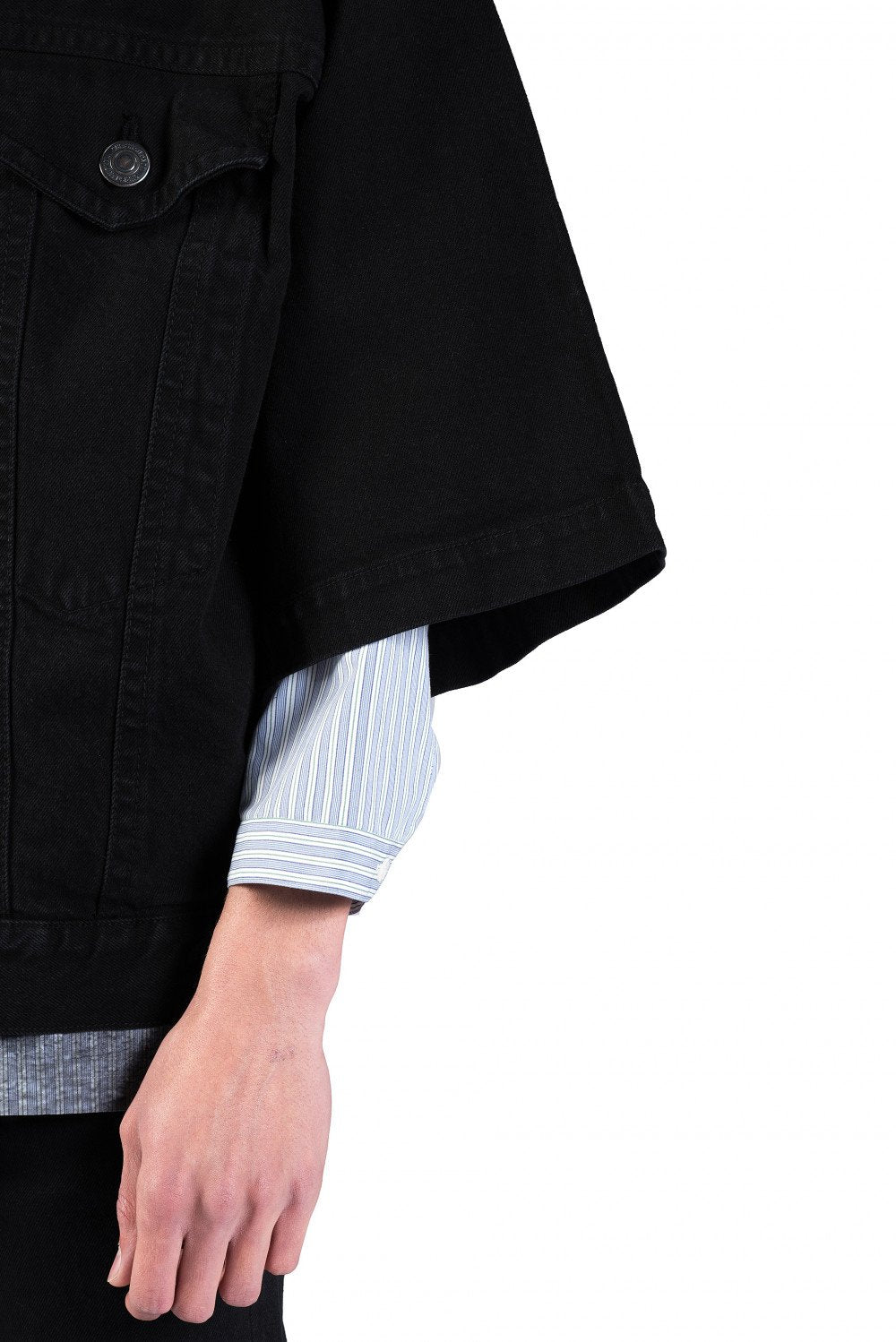 Deconstructed urban style with a rebellious attitude defines the Christian Dada collection at UJNG. The range features streetwear looks with offbeat details and contrasting textures such as the Black Denim Jacket.