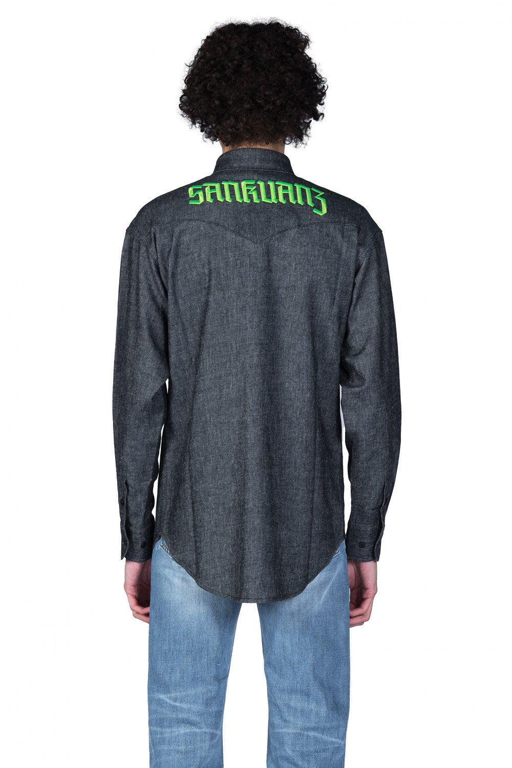 Innovative designs take centre stage in the Sankuanz collection at UJNG. Experimental shapes and offbeat graphics create a flamboyant, boundary-pushing look. Find a vibrant colour palette and bold use of textures. Architectural pieces with unexpected embellishments enhance the eye-catching nature of this edit, as seen in the Black Denim Logo Shirt.