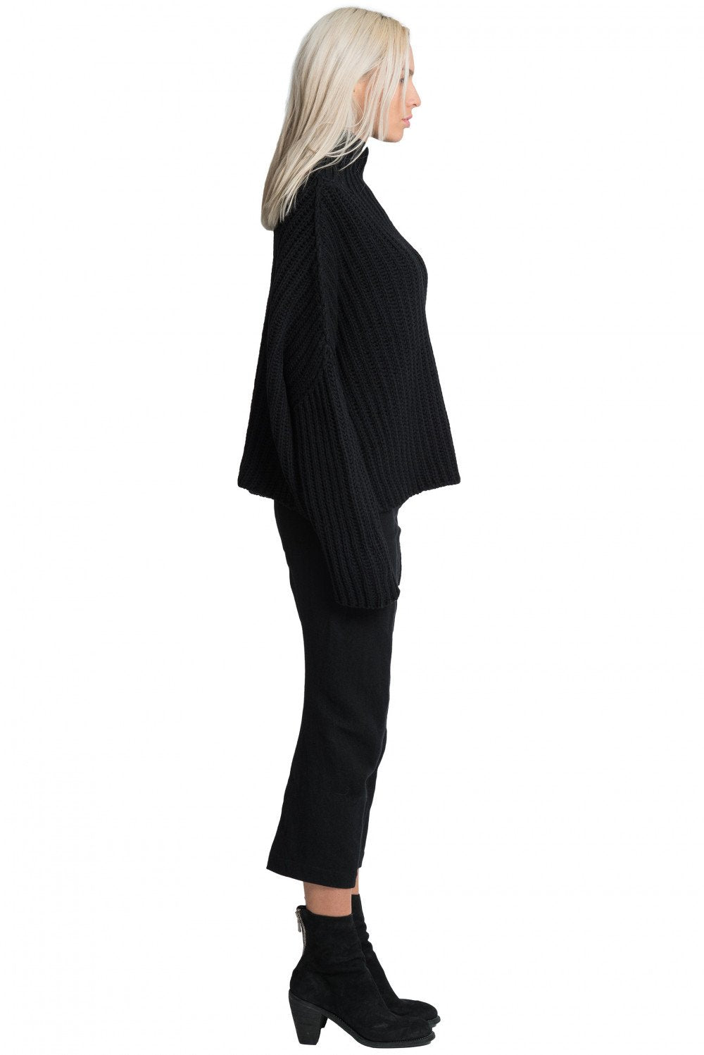 Forme D'Expression believe in craftsmanship, garments that should be able to stand at their own. To create something which speaks to an individual and creating that ‘one piece’ which is able to find relevance within its wearer, encapsulated by the Black Fisherman Rib High Neck Jumper.