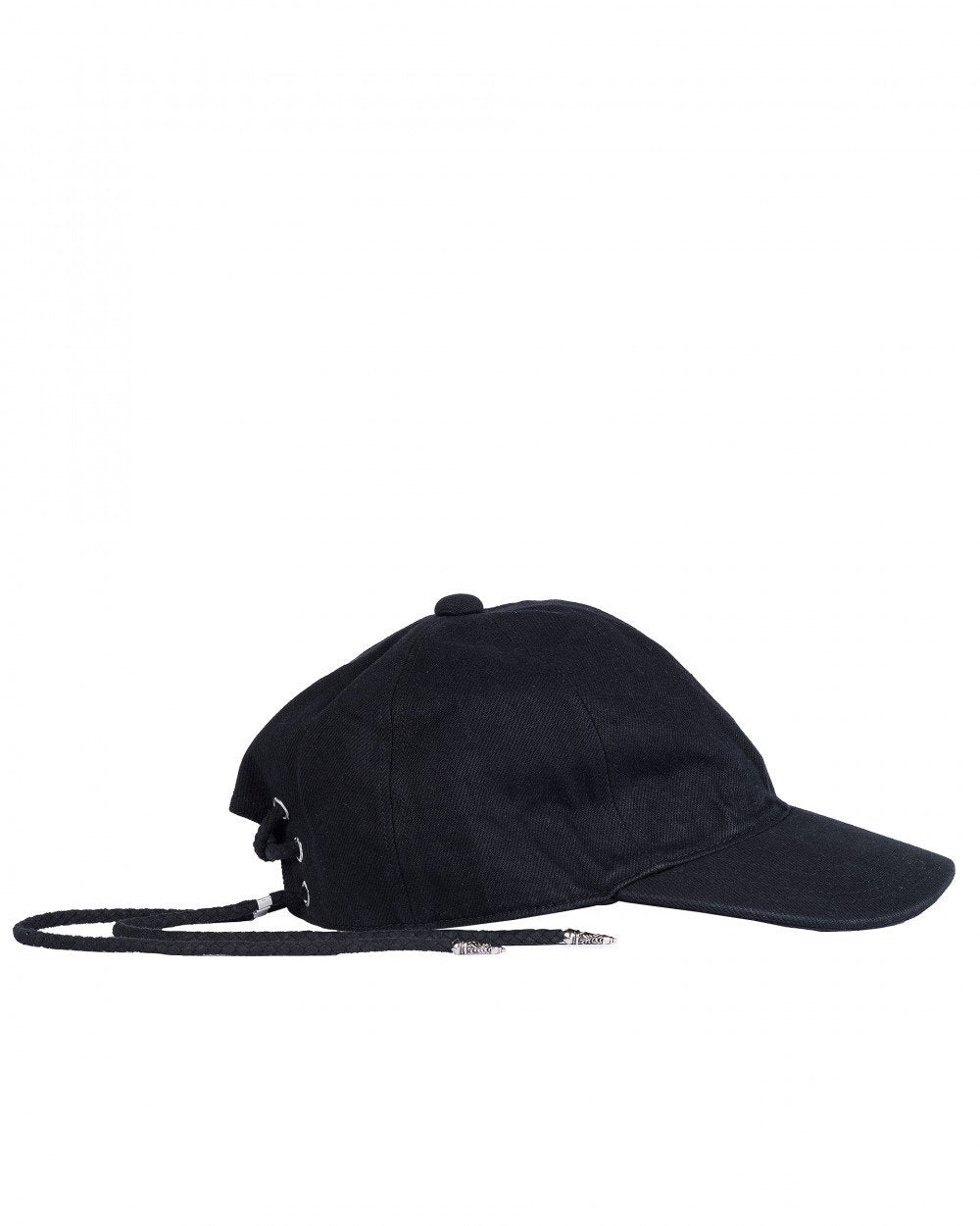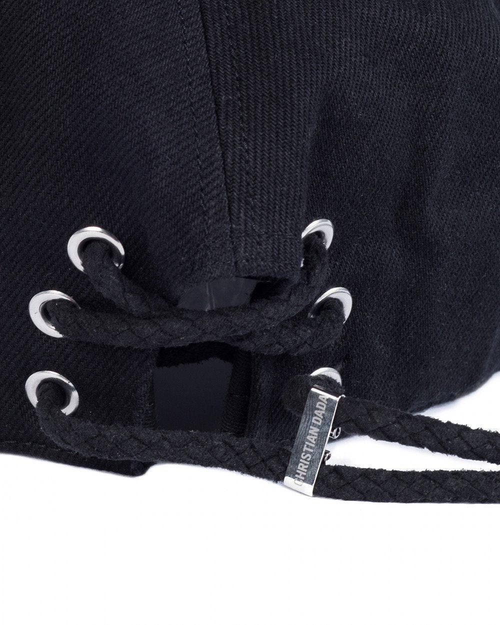 Black Lace Up Denim Cap