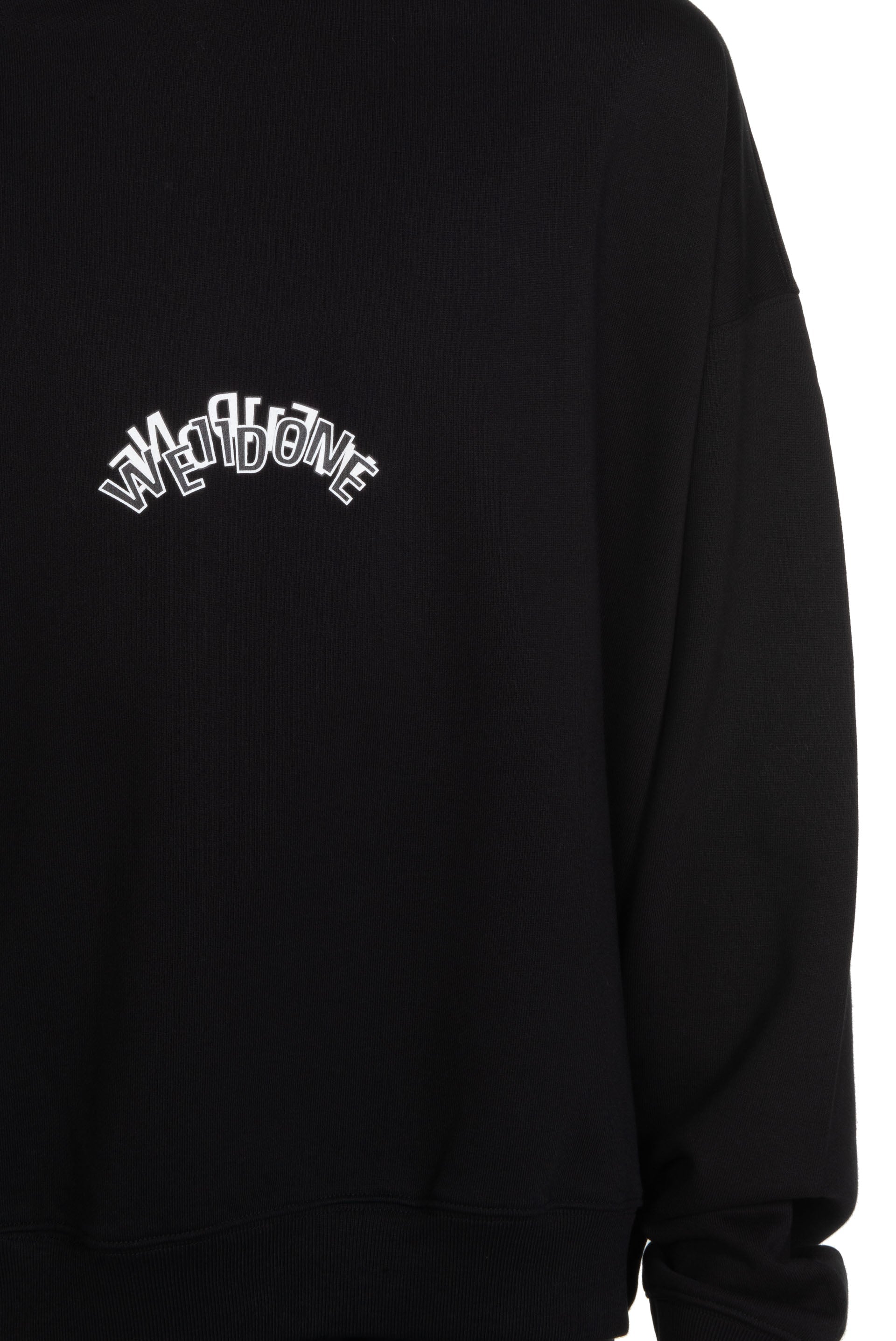 French terry hoodie. Stand collar at hood. Logo graphic printed at front and back. Rib knit hem and cuffs. Dropped shoulders.