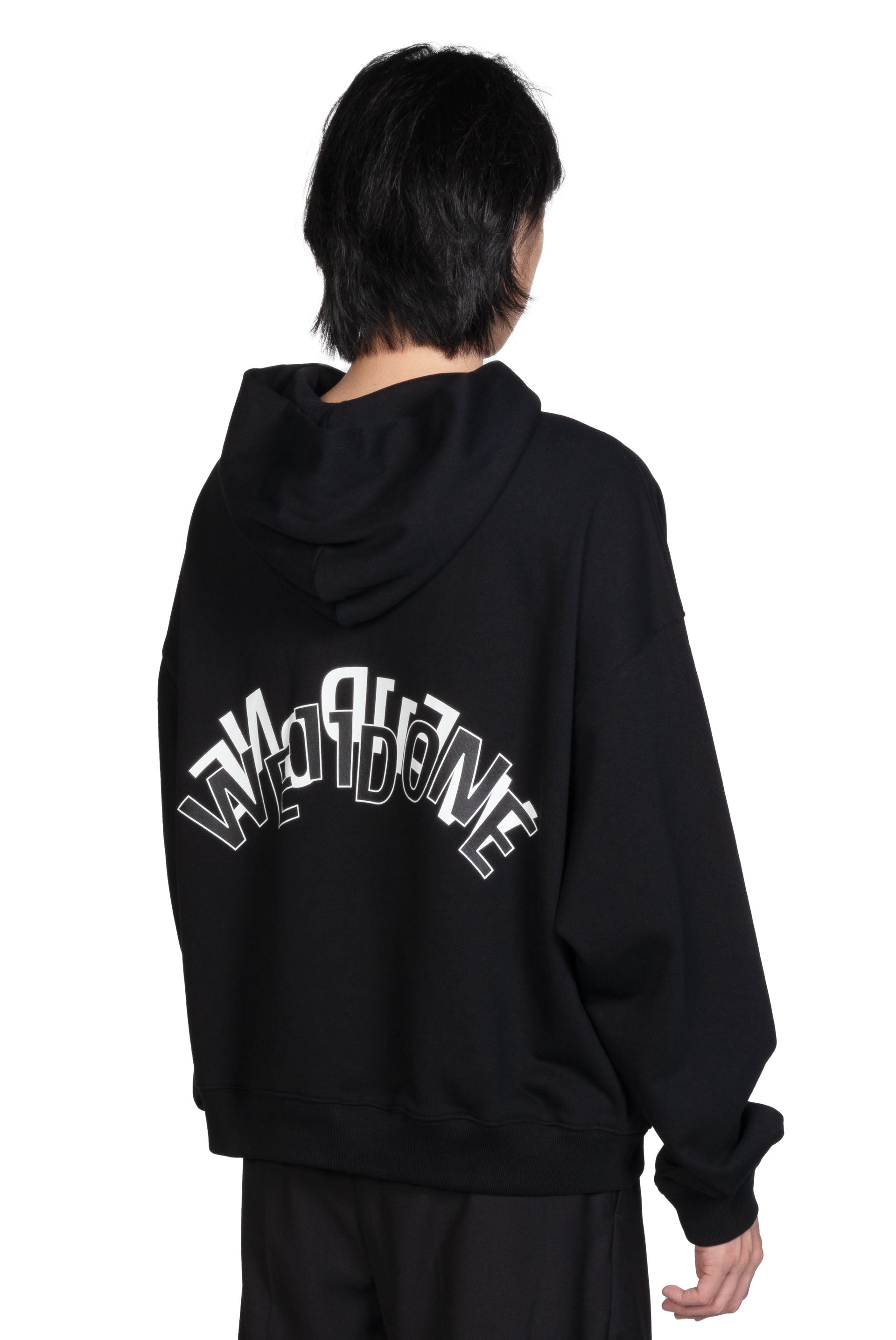 We11done merges late 1990s and early 2000s aesthetics creating a feeling of futurity. Functional, sportive, and sleek, We11done’s versatile designs refine classic elements into contemporary lifestyle pieces. as seen with the Black Layered Logo Hoodie.