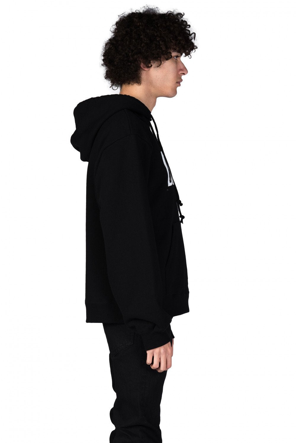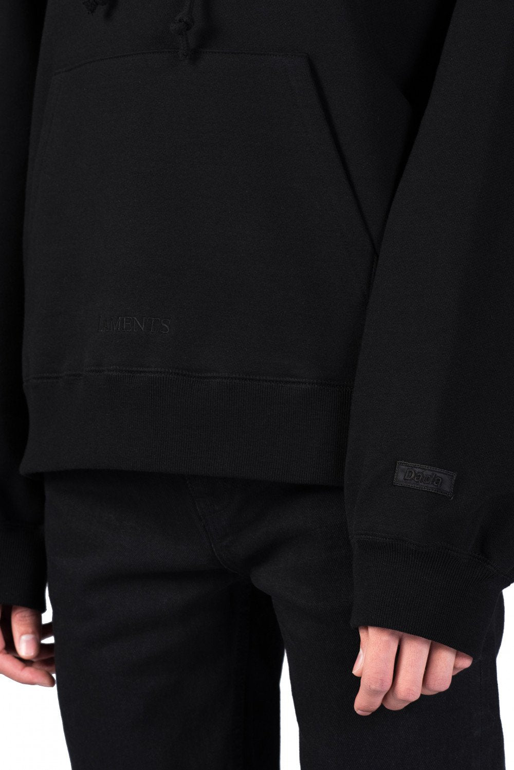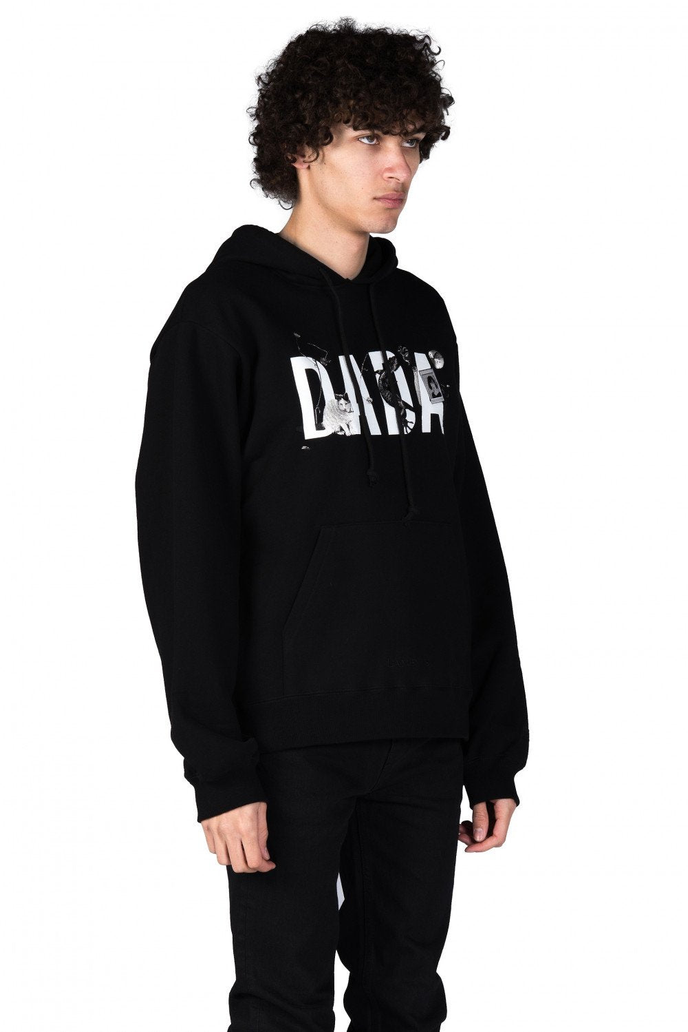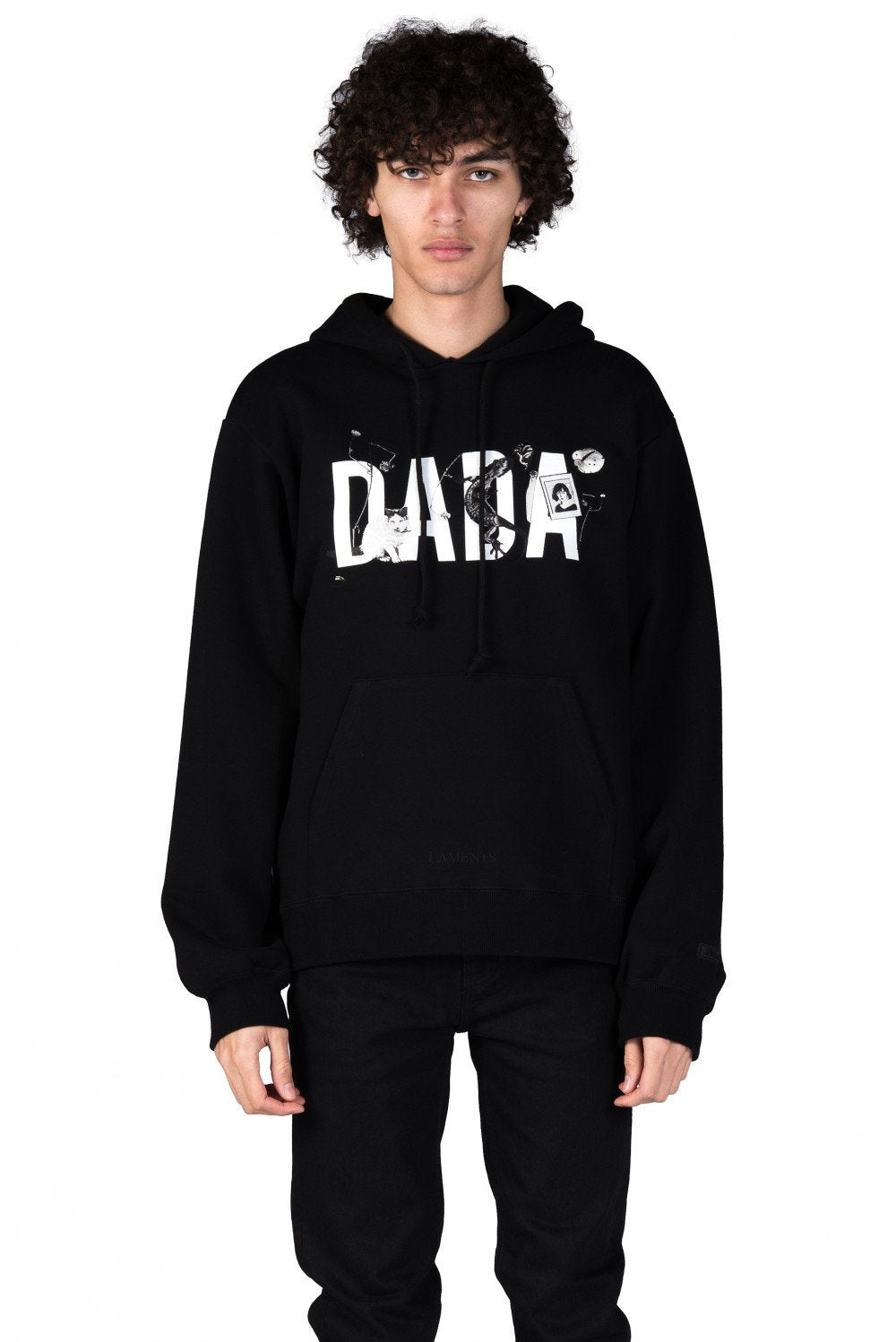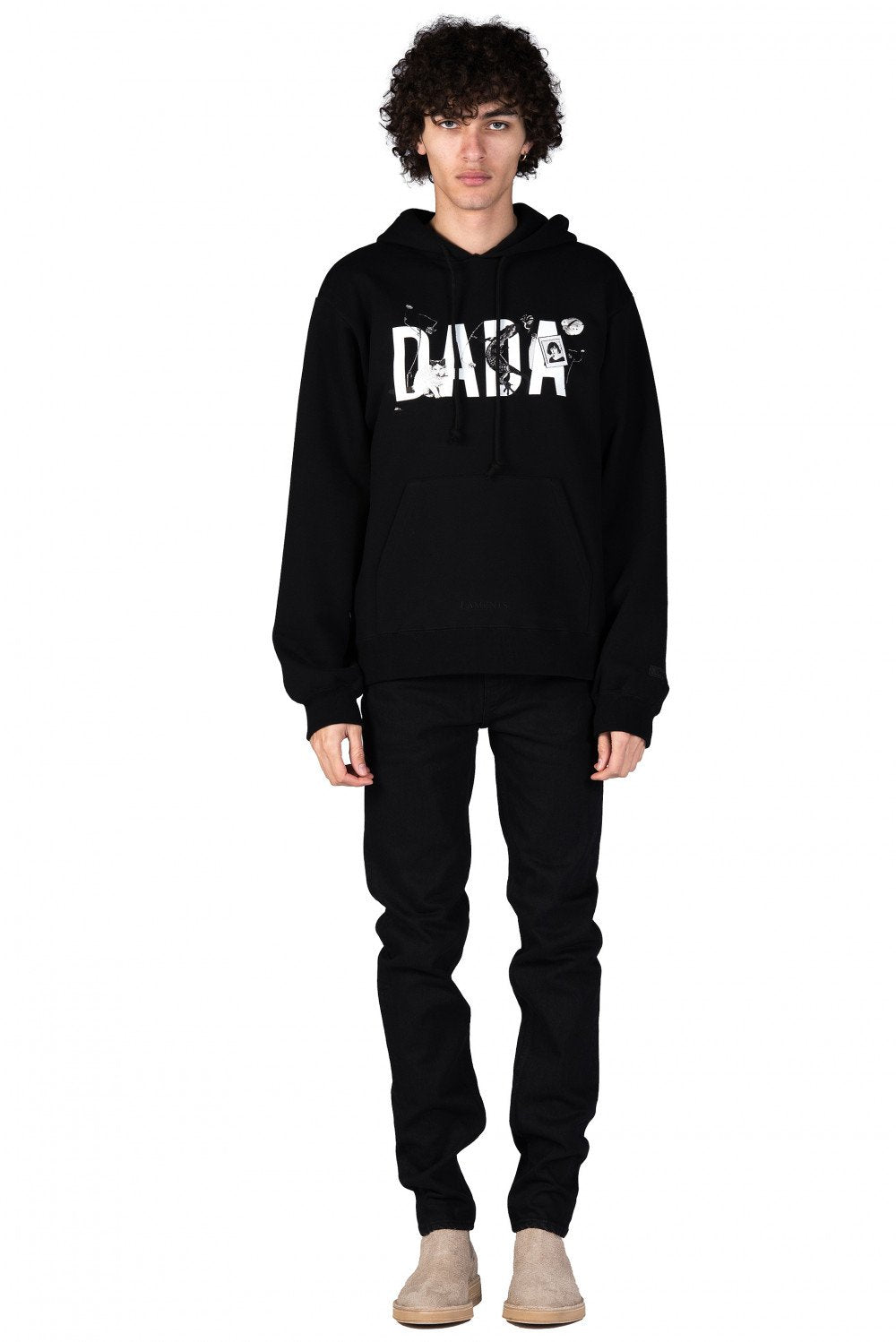 Deconstructed urban style with a rebellious attitude defines the Christian Dada collection at UJNG. The range features streetwear looks with offbeat details and contrasting textures such as the Black Logo Embroidered Hoodie.