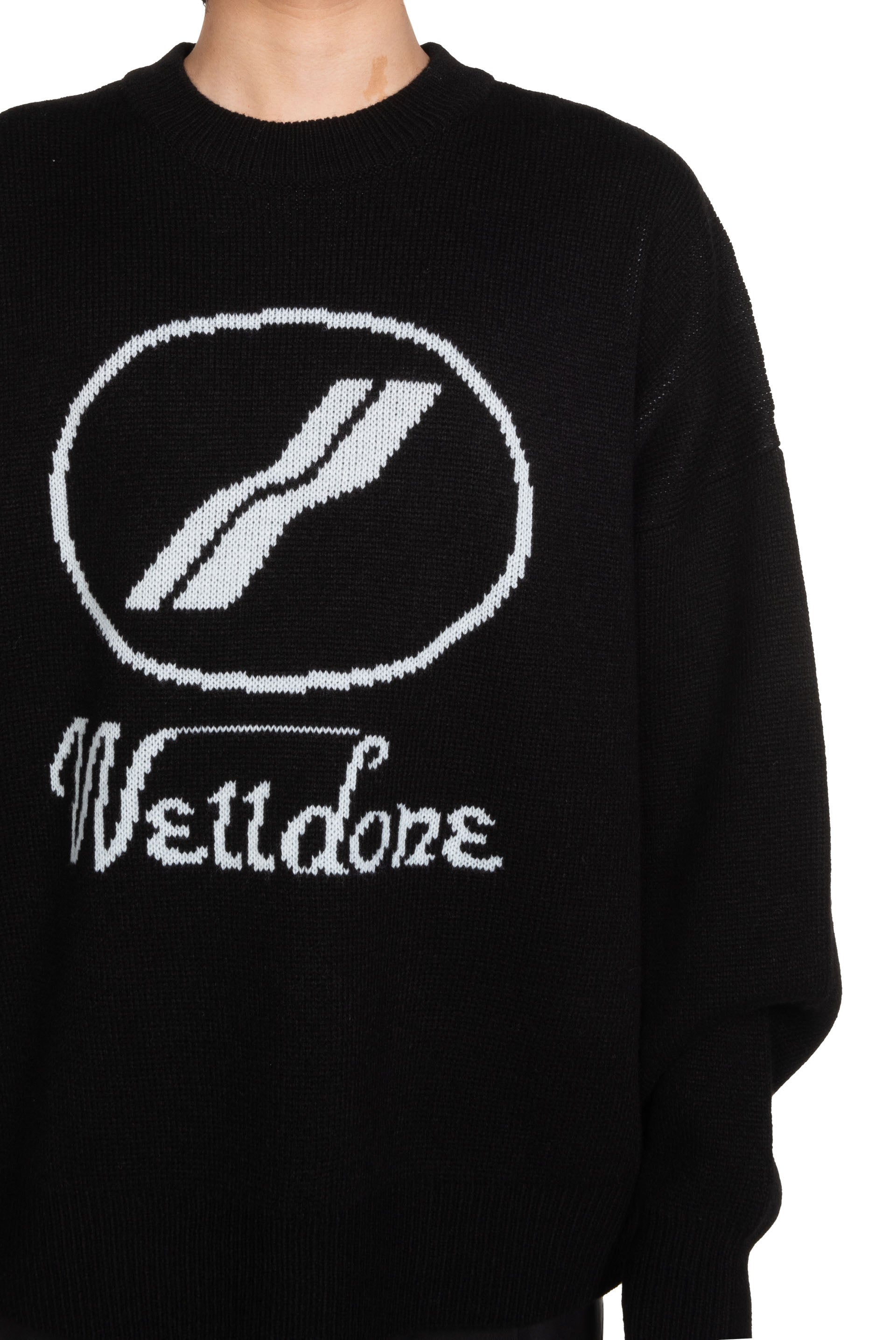 We11done merges late 1990s and early 2000s aesthetics creating a feeling of futurity. Functional, sportive, and sleek, We11done’s versatile designs refine classic elements into contemporary lifestyle pieces. as seen with the Black Logo Sweater.