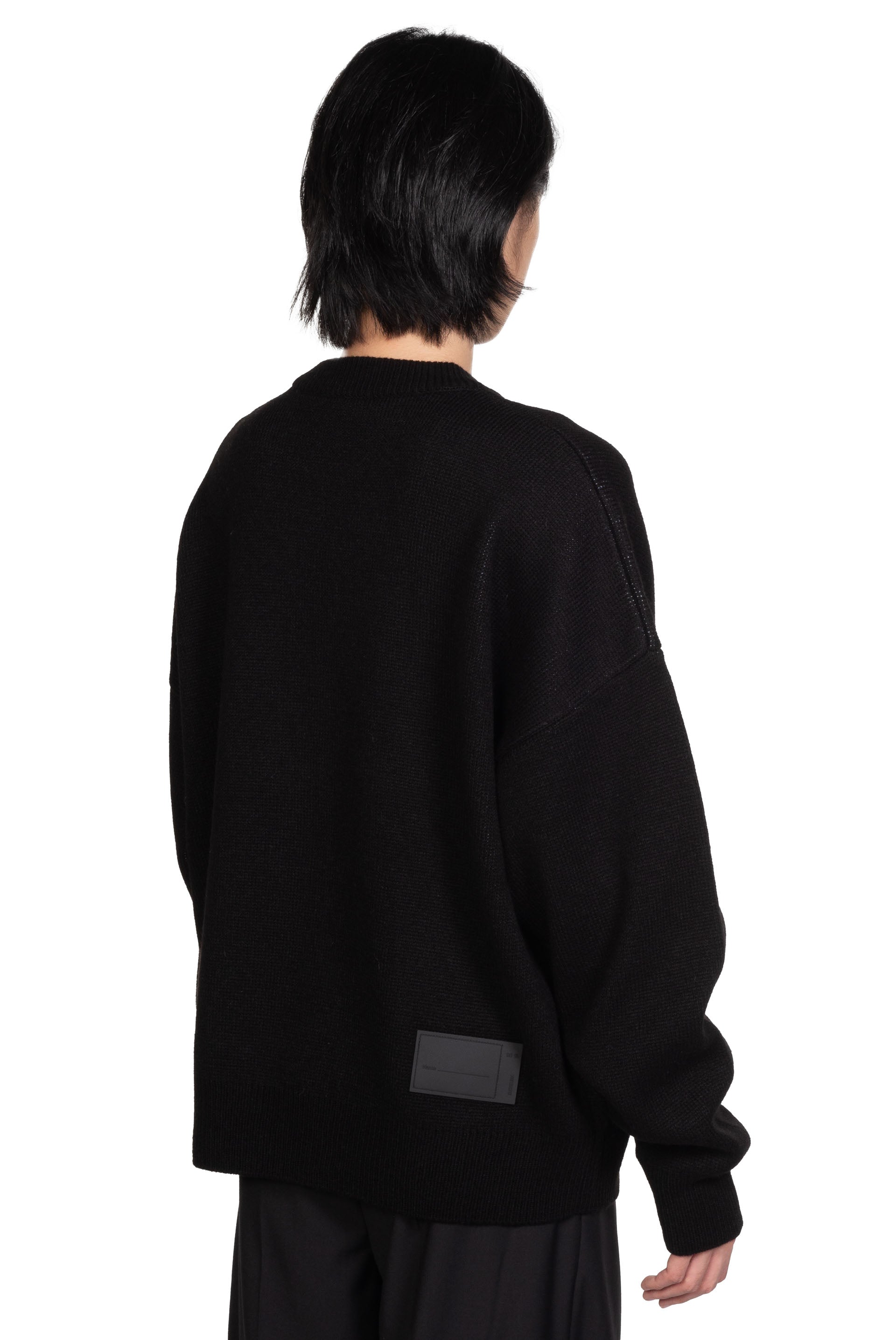 Jacquard knit acrylic-blend sweater. Rib knit crewneck, hem, and cuffs. Jacquard logo and graphic at front. Rubberised logo patch at back hem.