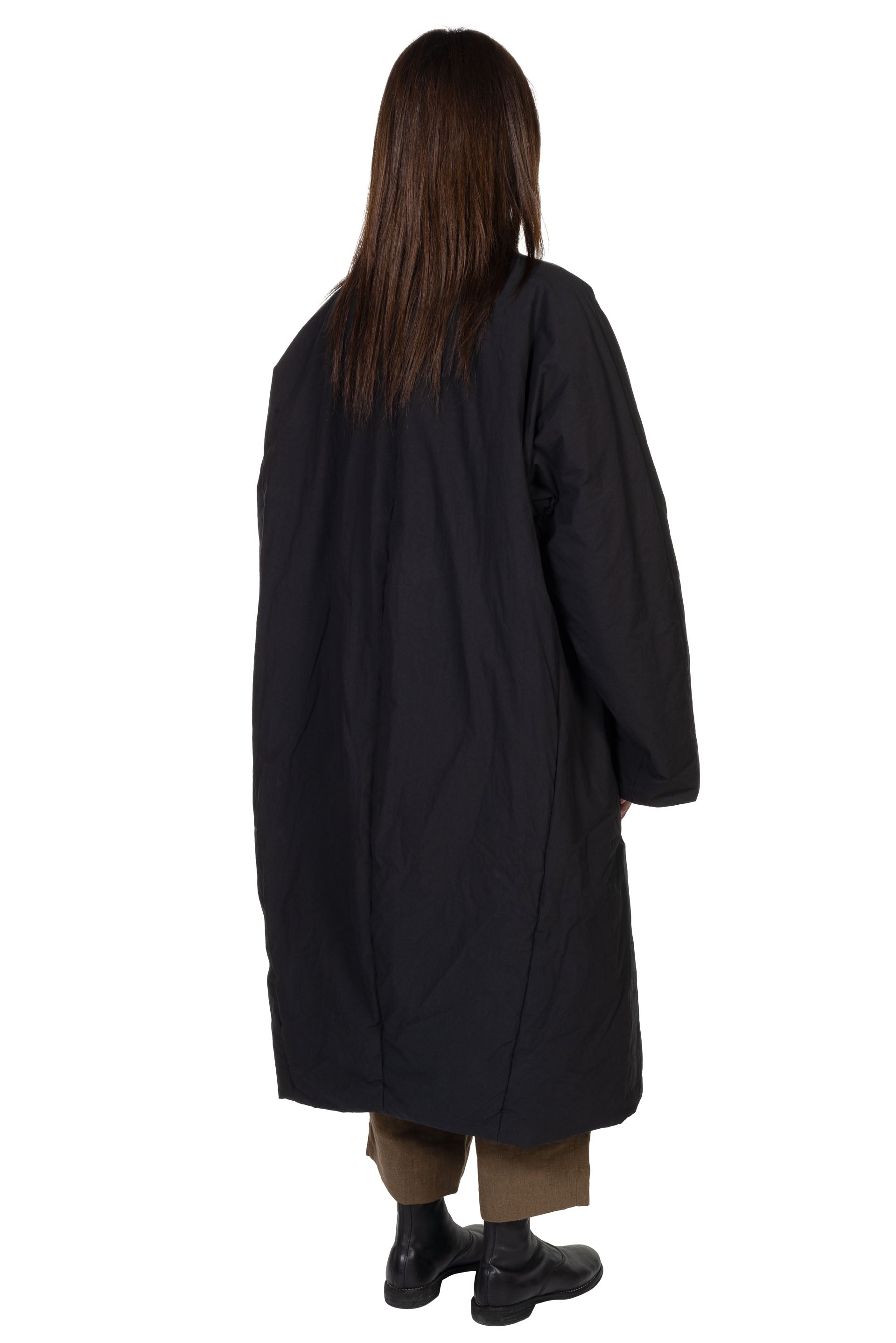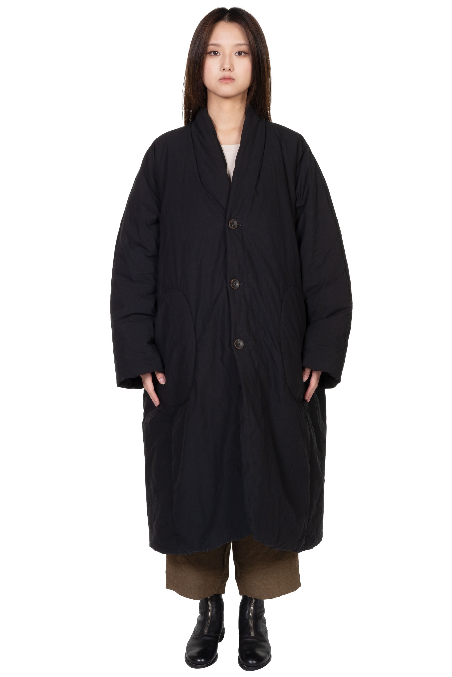 Kar Studio is an independent interior design studio, furniture and clothing brand exploring the cause and effect of aesthetics, integrating tradition and modernity. Kar is presenting modern design with Oriental philosophy. Inspired by art, literature, memories and emotions Kar focuses on design sensibility aiming to convey emotion that will resonate with people as seen with the Black Padded Cotton Long Coat.