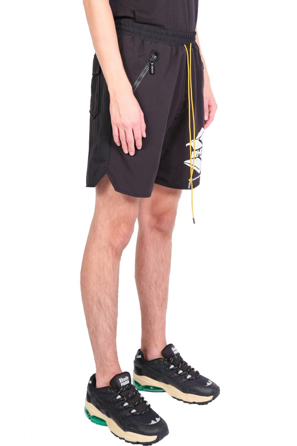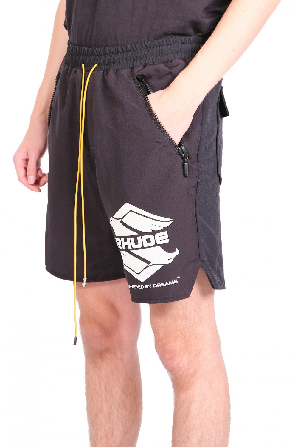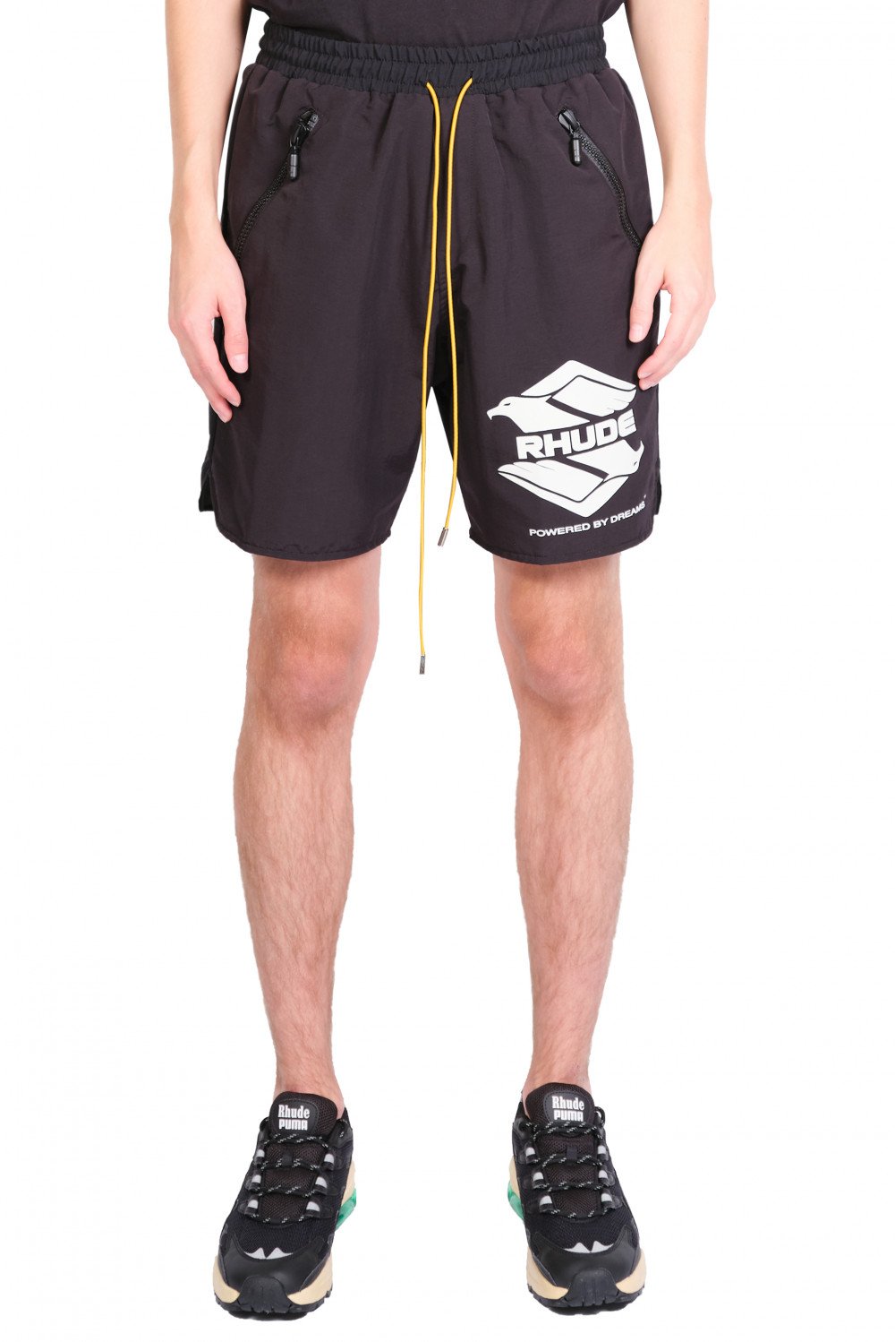Rhude design merge disparate cultural influences, which combine streetwear style with British punk and high fashion sensibilities. With youthful energy, U.S. based production, and culture-clashed appeal, Rhude acts as a keen reflection of new inroads in men's fashion as seen in the Black Ranger Swim Shorts.