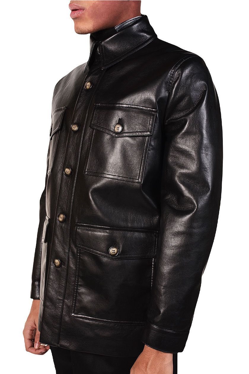 Black Regenerated Leather Jacket
