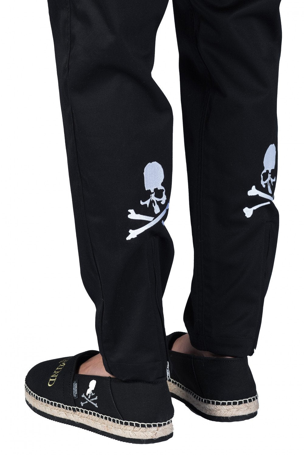 The skull and crossbones motif has now become notorious in luxury streetwear, Mastermind Japan and now Mastermind World has been the original pioneer of the streetwear movement we see today. The Black Skull Logo Trousers brought in the black colour way is a staple piece in any streetwear collection.