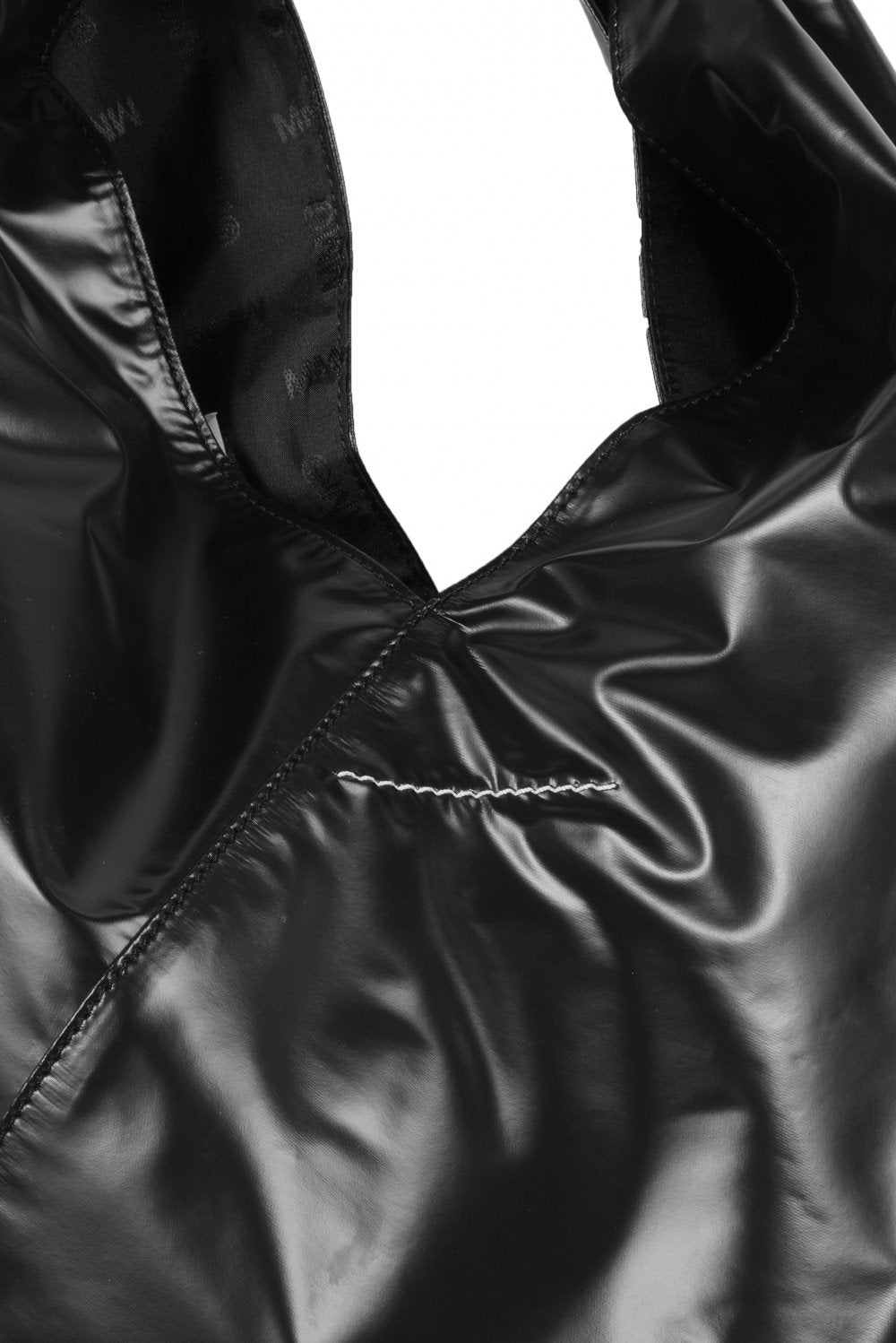 MM6 is known for its sporty ready-to-wear and off-beat accessories, more casual, street-inspired take on the Maison's intellectual approach to luxury as seen in the MM6 Black Triangle Tote.