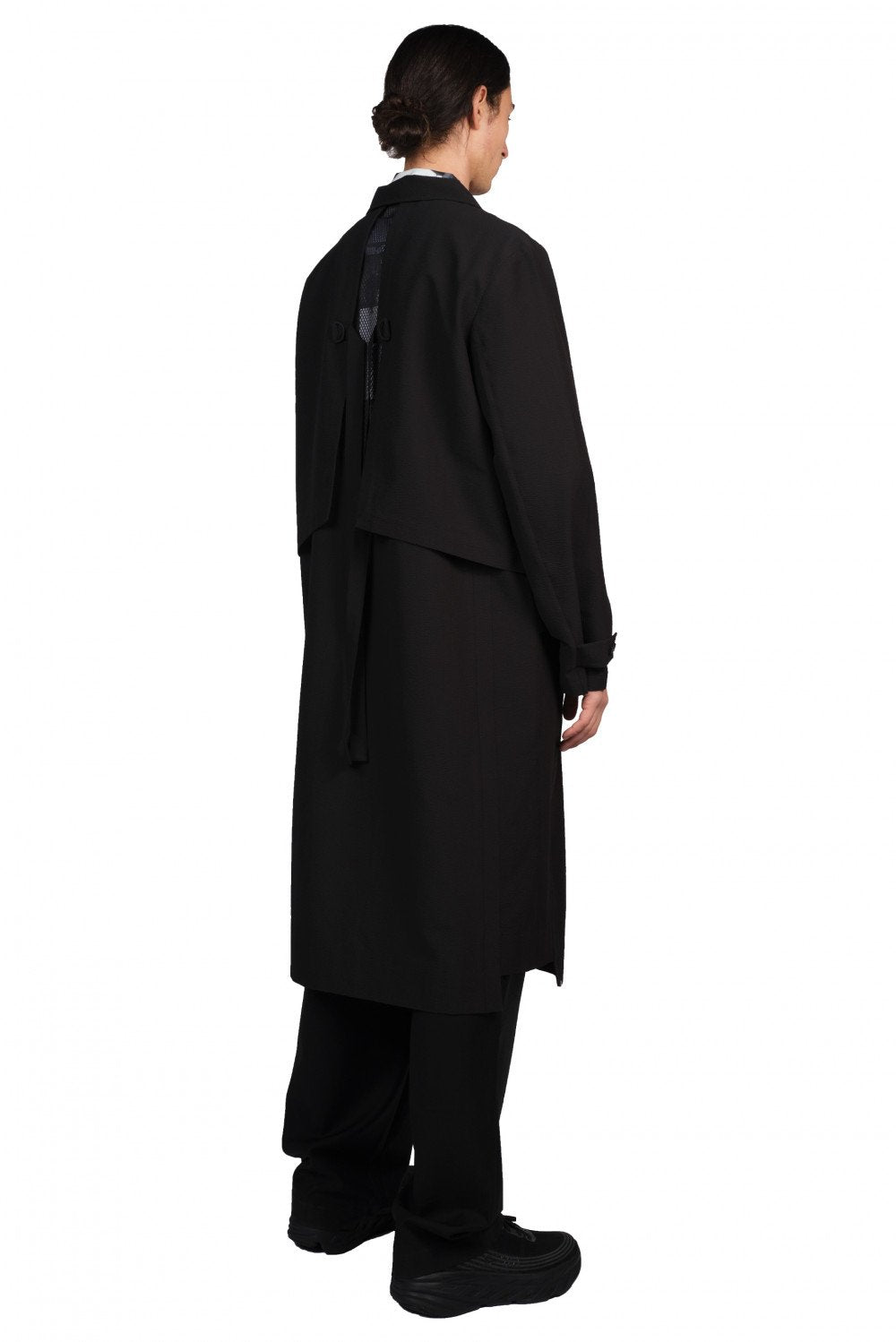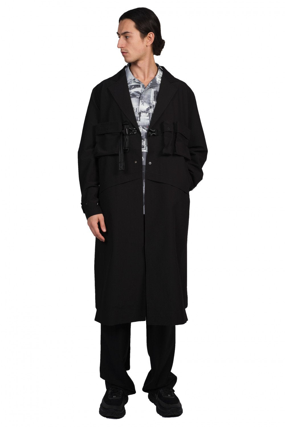 The brand’s Spring/Summer 2020 collection is based around the Korean institution of chaebols, the massive industrial conglomerate companies often controlled by their original founding families, which have traditionally exerted a powerful influence over Korea’s socioeconomic life. Each piece is made in Seoul, utilising a combination of Korean fabrics, techniques, and a mix of modern and traditional design aesthetics as can be seen in the IISE Black Utility Trench Coat.