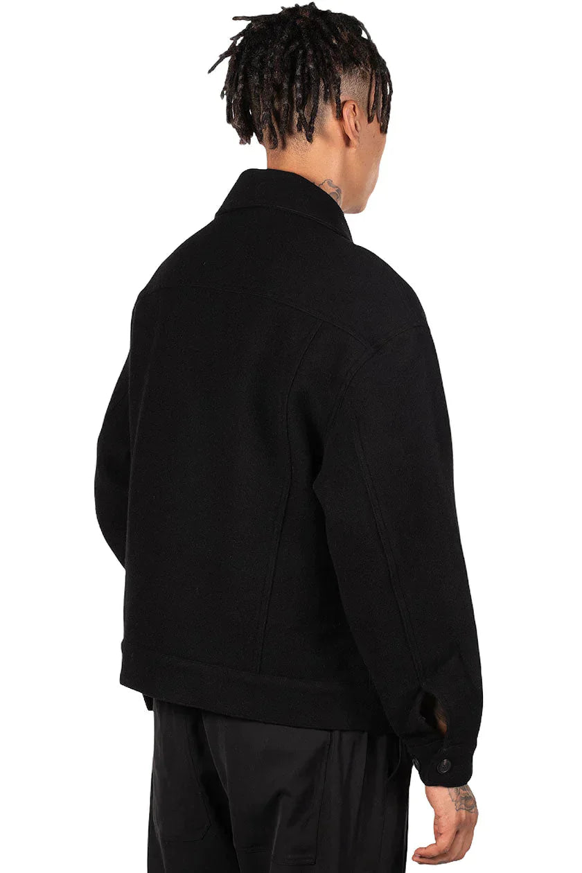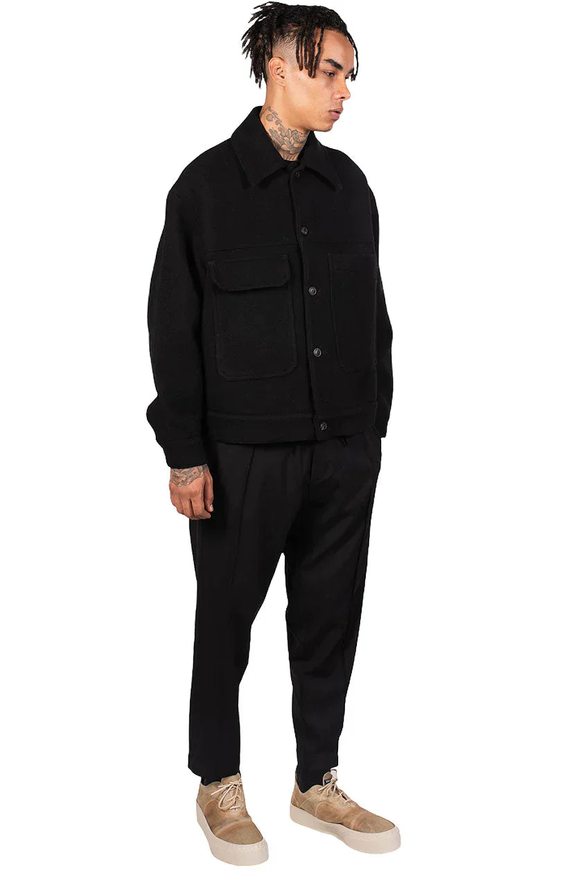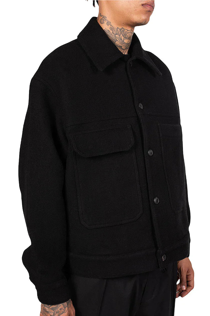 Lownn wool jacket with Front pockets. Relaxed fit. Dropped shoulders. Fits true to size. Button closure at front and cuffs