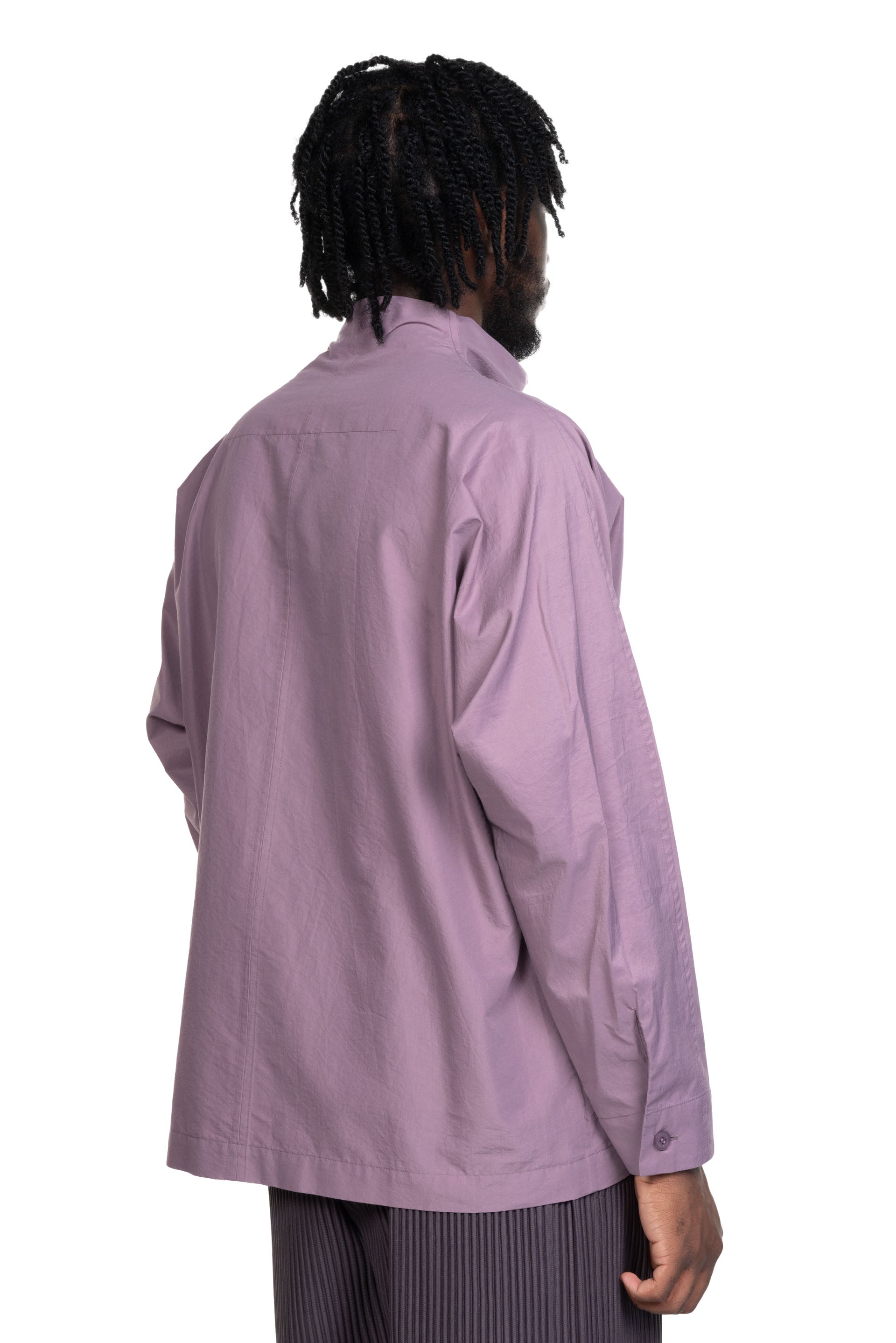 This lavender shirt features a two-way zip closure, a mock neckline and chest pocket on the left side. Made from a uniquely textured fabric BLANK SHIRT is inspired by the work of Ronan Bouroullec.