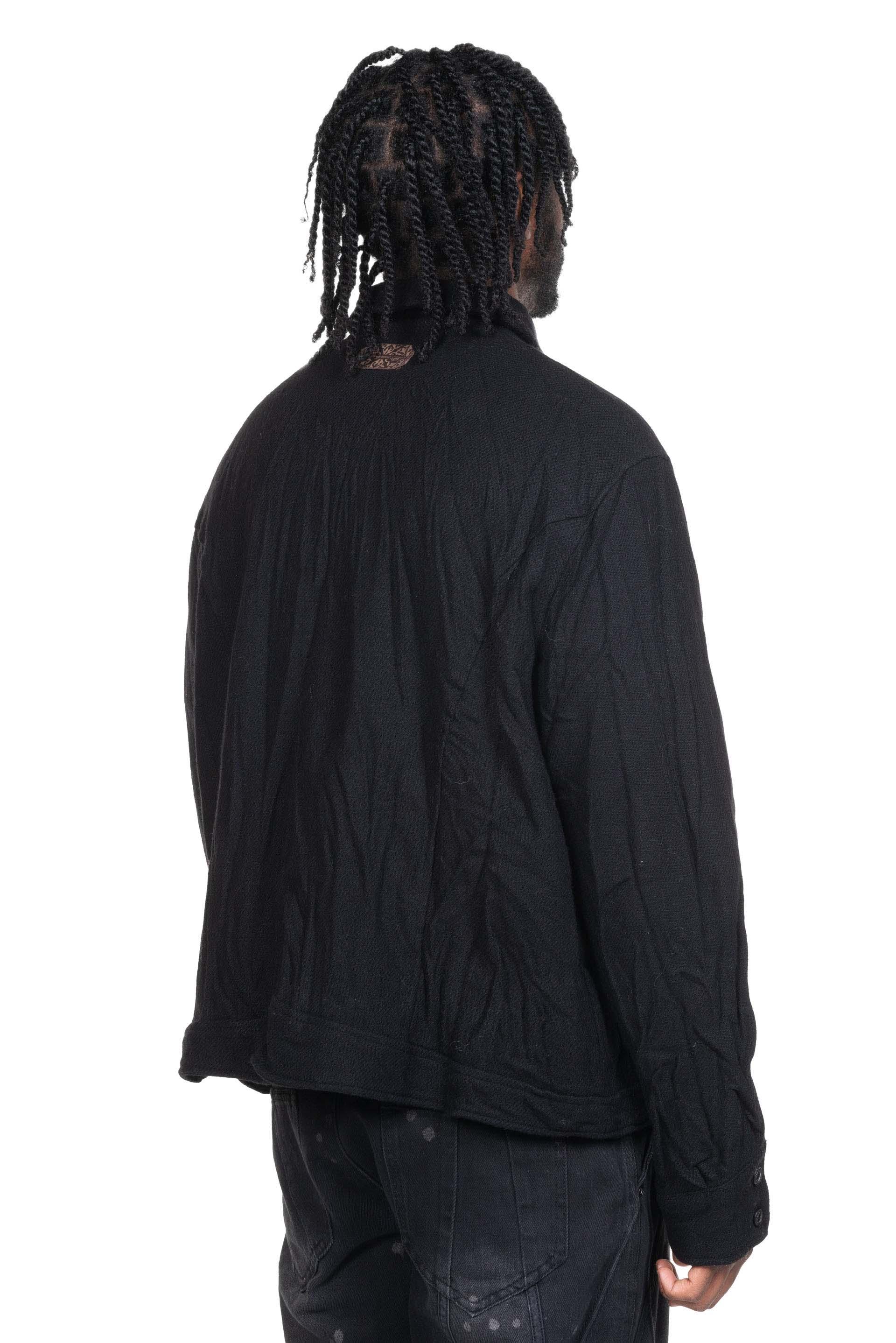 Professor. E understands the time of aesthetics from the use of cotton, hemp and wool. Fabric stitching, patching, designs without edge trimming, deconstruction, and reproduction are all Professor. E's signature elements creating classic immortal designs that can be viewed with the Boiled Wool Jacket Black.