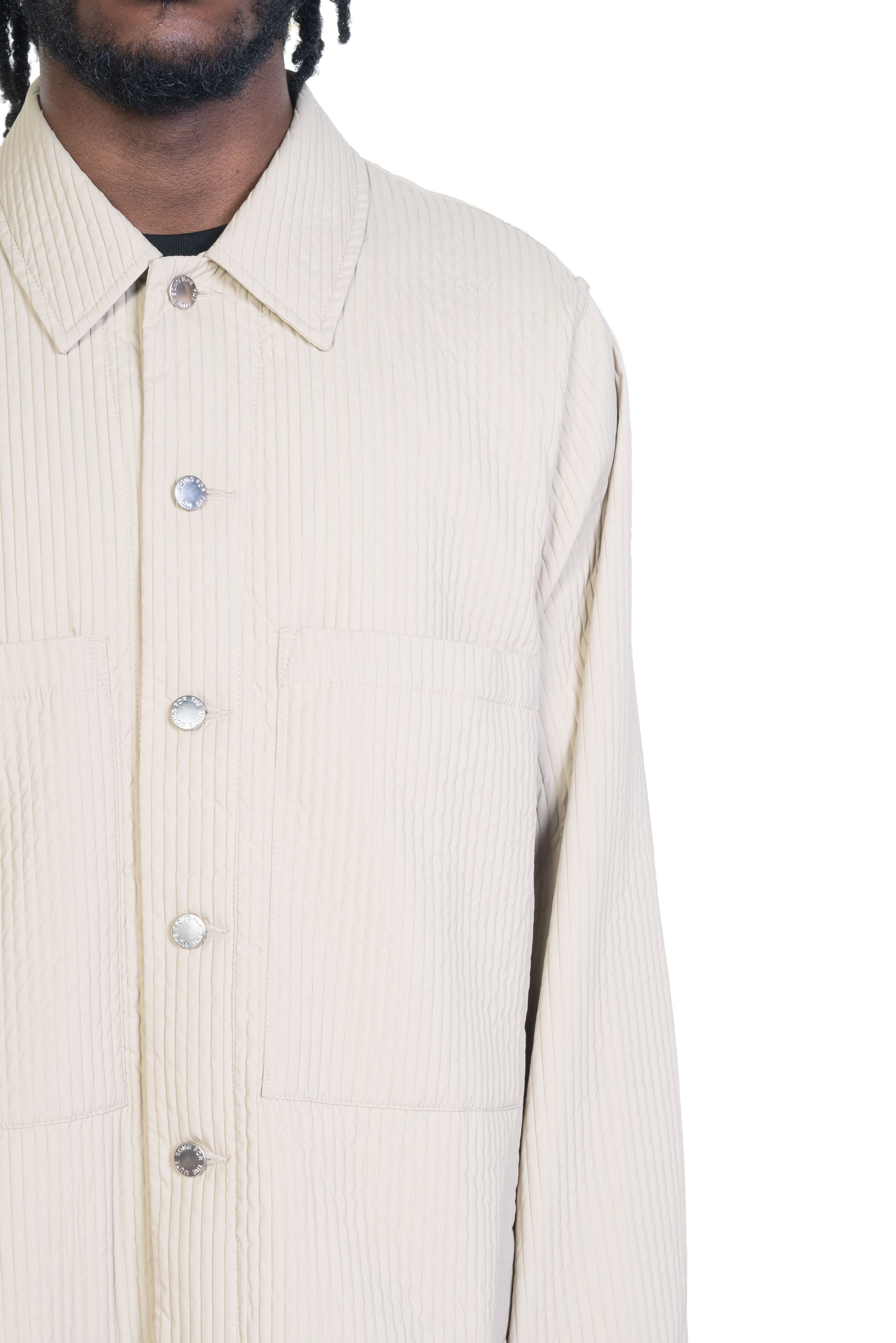 Song for the Mute quilted nylon taffeta jacket. Spread collar. Button closure. Patch and welt pockets. Leather logo patch at back hem. Fully lined. Logo-engraved silver-tone hardware.