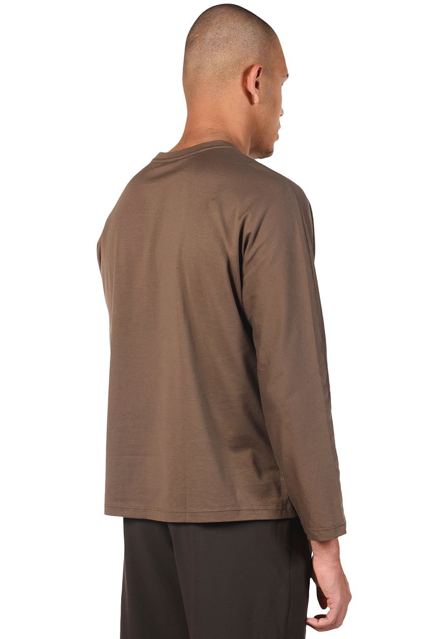 Brown T-shirt. Dropped shoulders. Long sleeves.