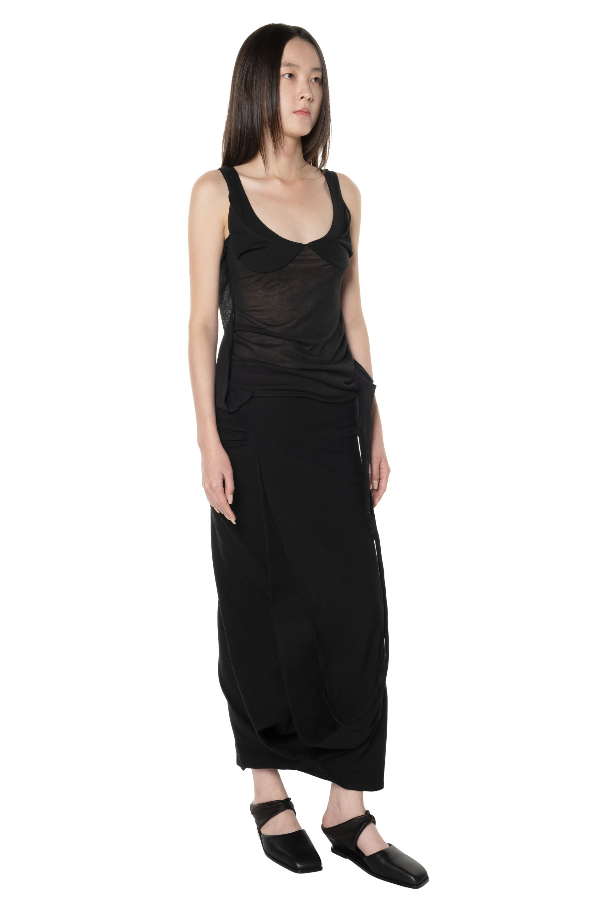 Caro Chia continuously explores intriguing forms that are then brought to life through innovative shapes and pattern cutting techniques. Caro Chia is known for her experimental construction combined with making textiles engineered to form sculptural embellishments in subtle colour ways as seen with the Callo Long Skirt.